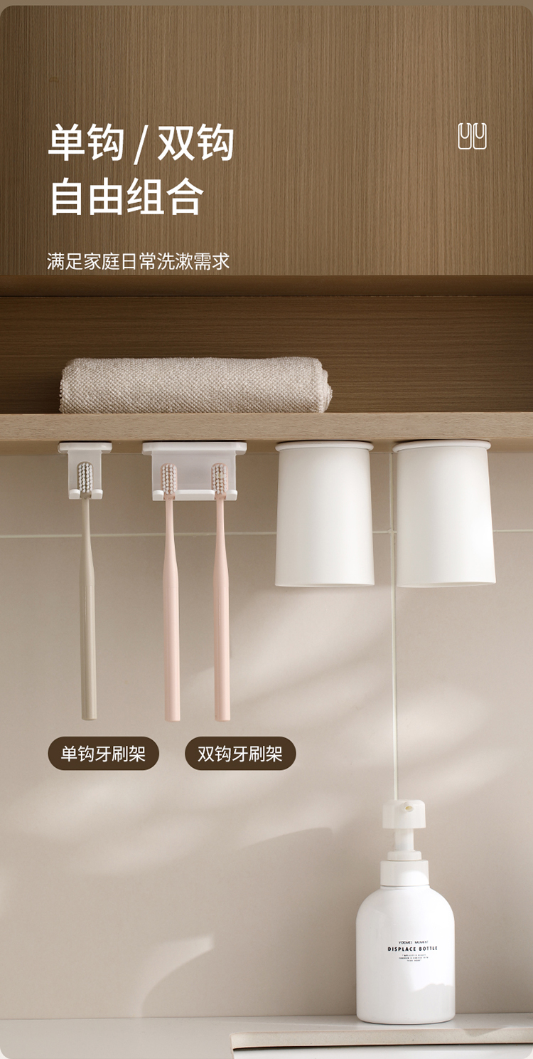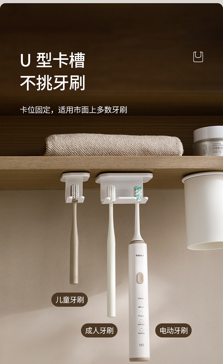 FaSoLa牙刷置物架磁吸漱口杯卫生间刷牙杯洗漱杯镜柜底电动牙刷架免打孔