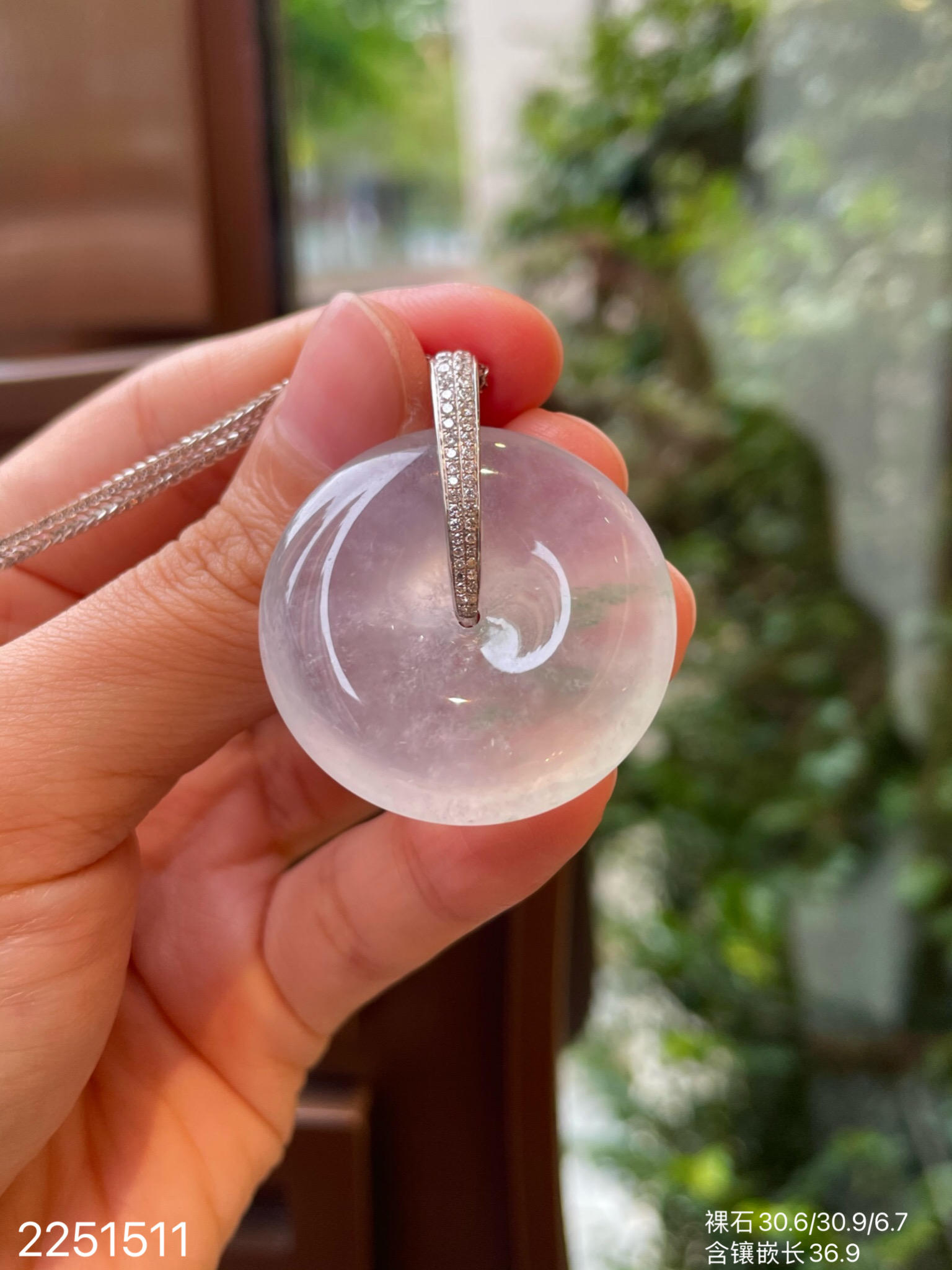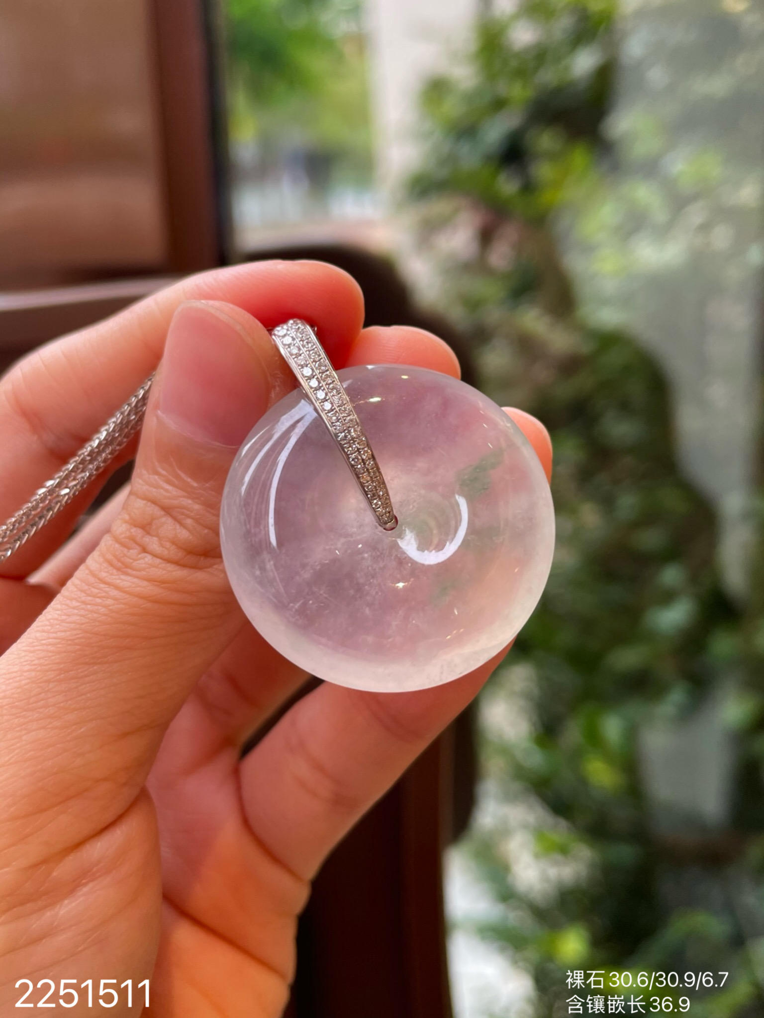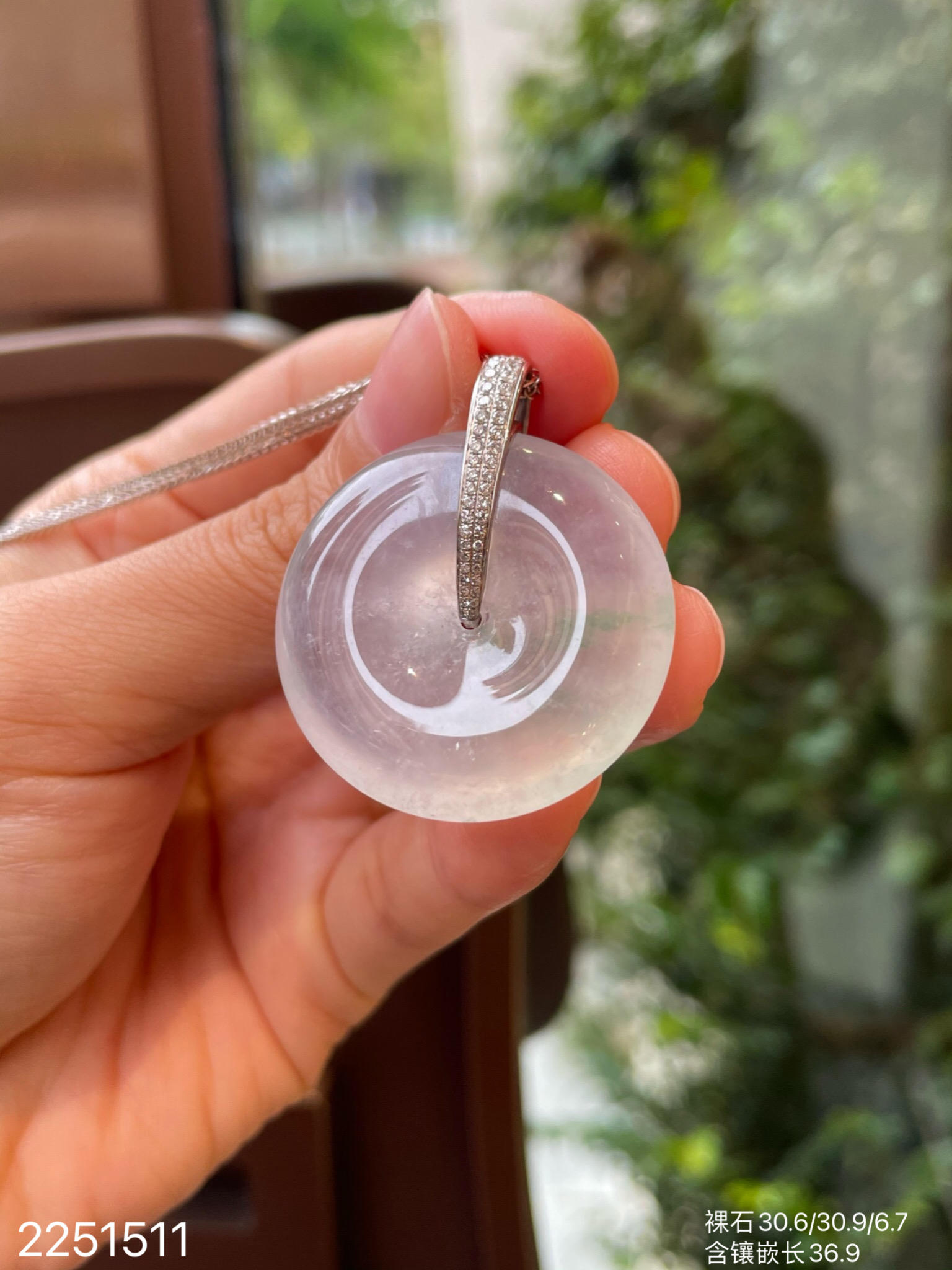 2251511,高冰飘翠平安扣吊坠。具体价格微信咨询