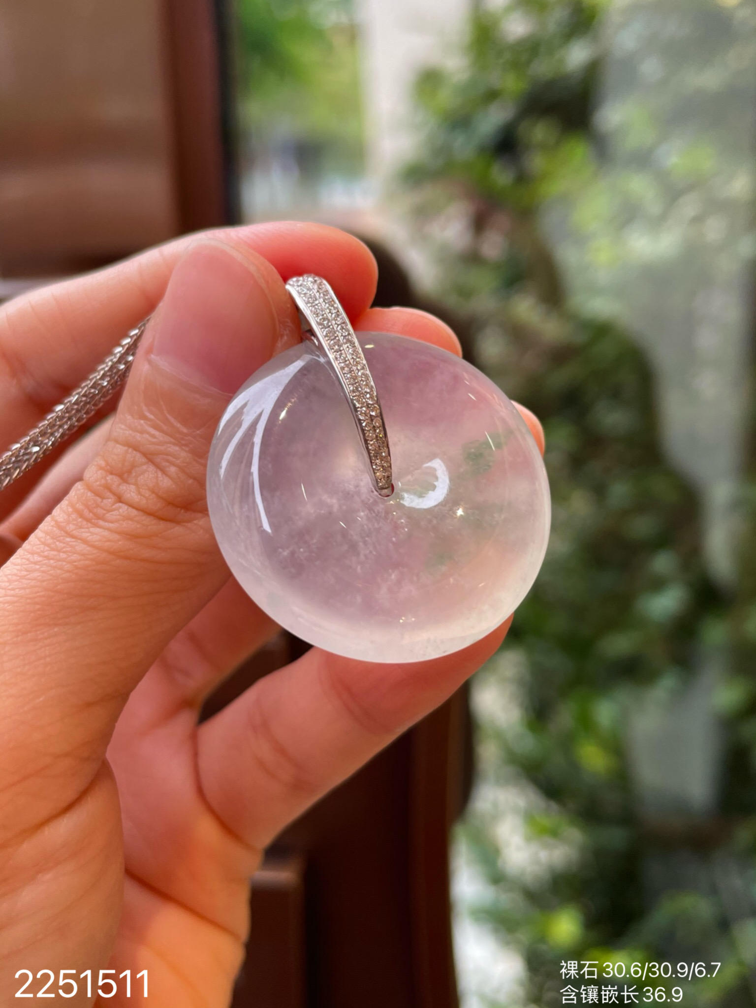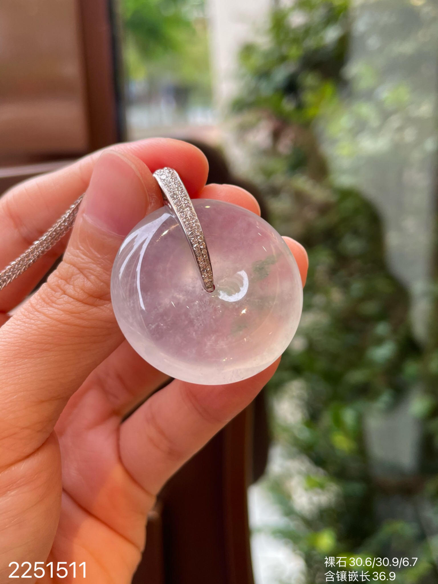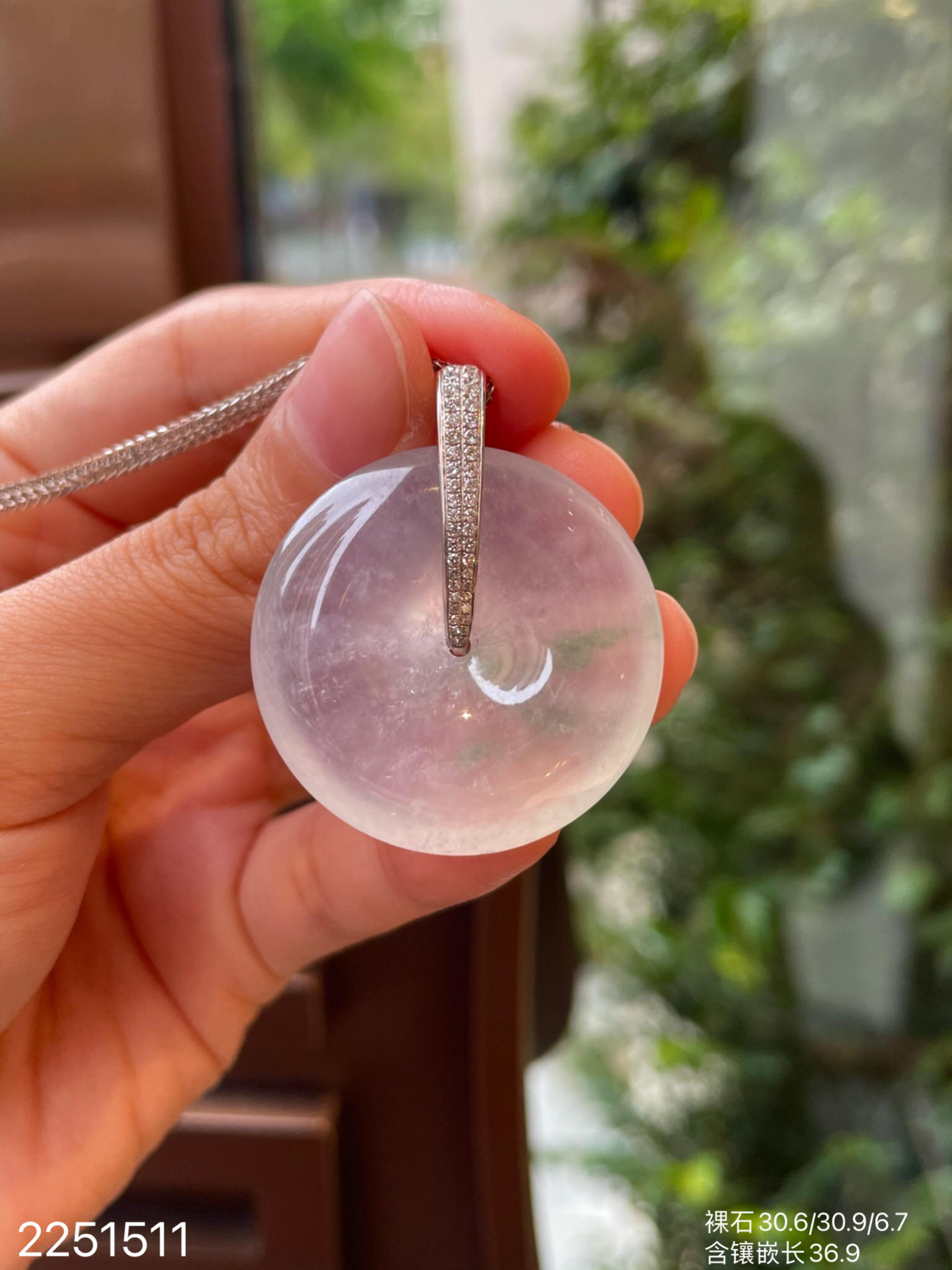 2251511,高冰飘翠平安扣吊坠。具体价格微信咨询