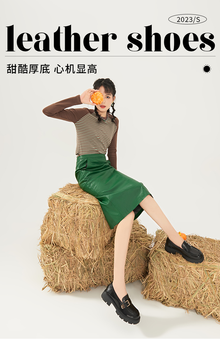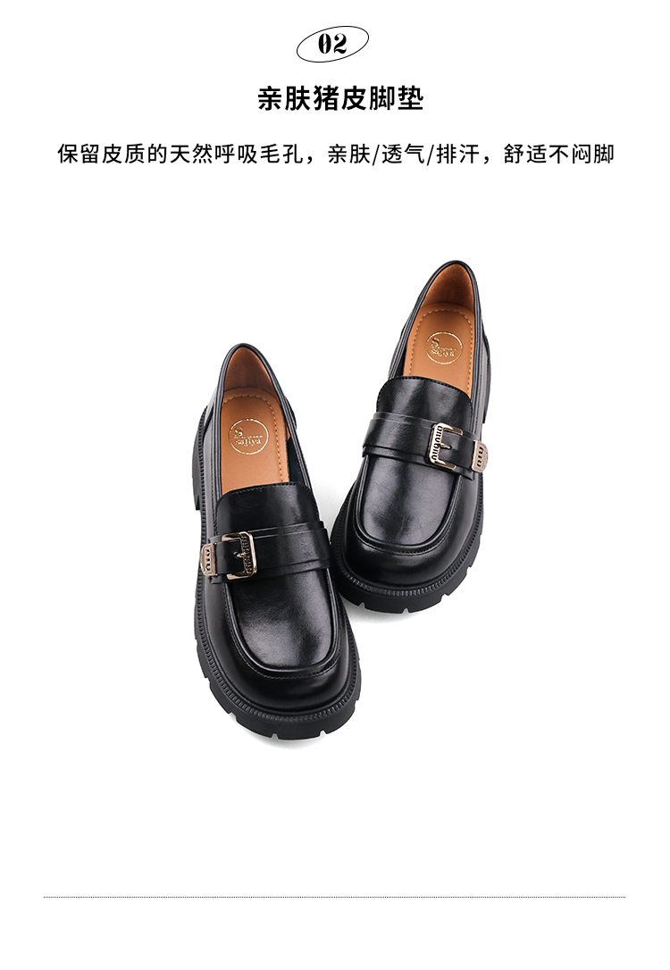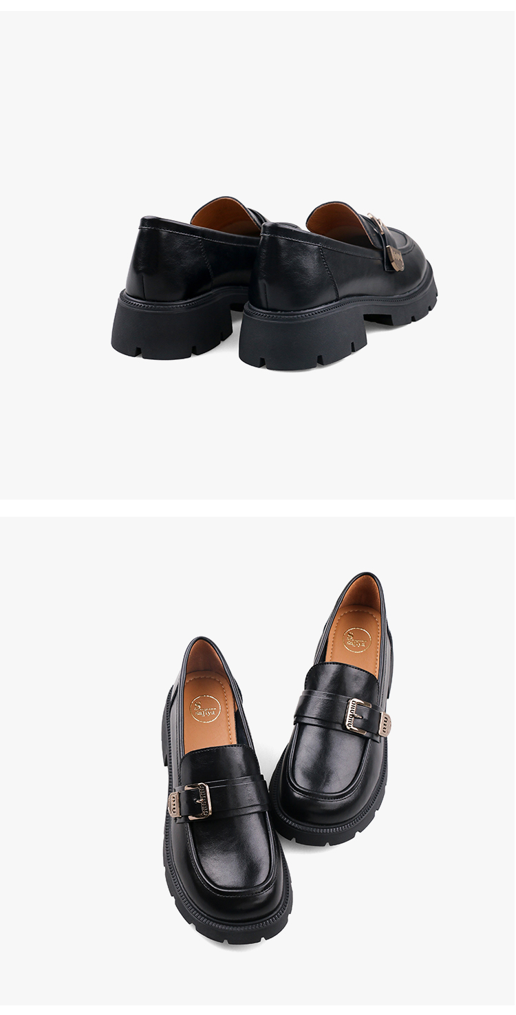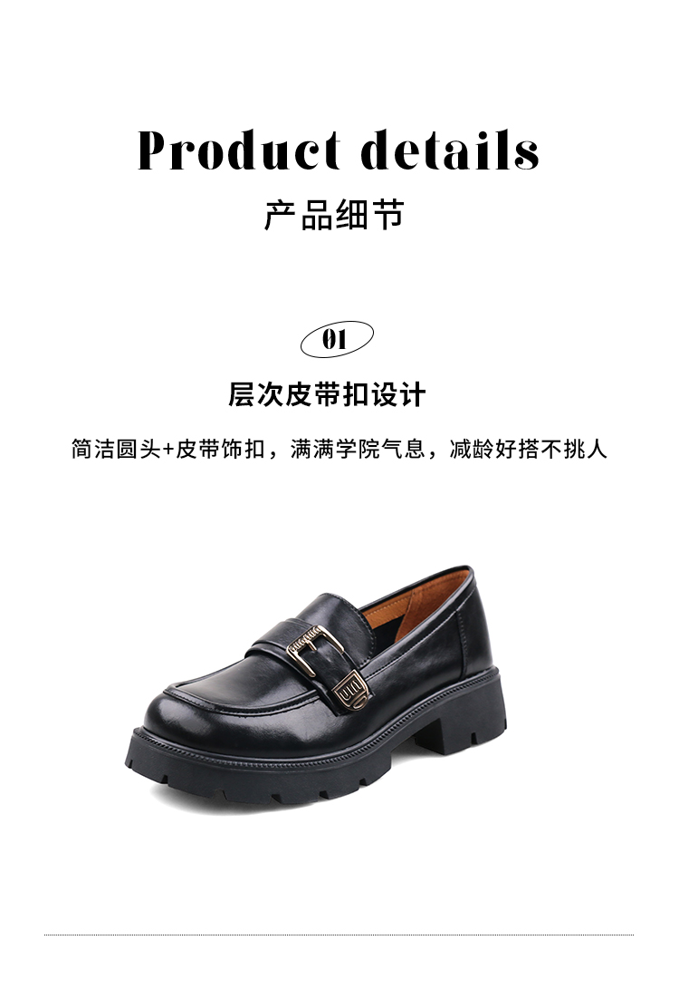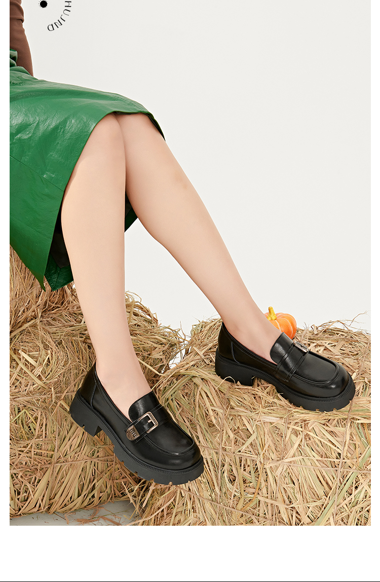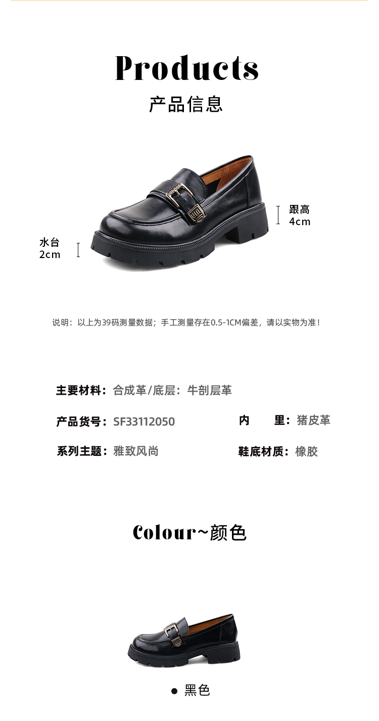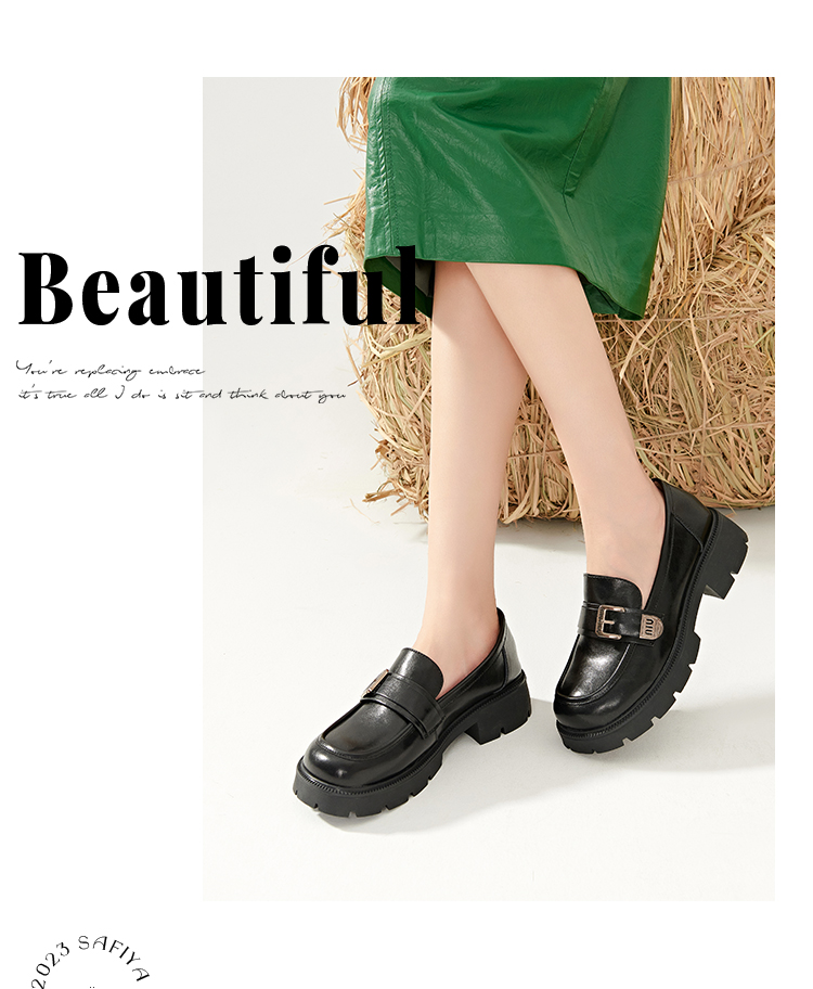 Safiya/索菲娅2023秋冬新品复古英伦风皮带扣粗跟厚底JK乐福鞋小皮鞋 SF33112050