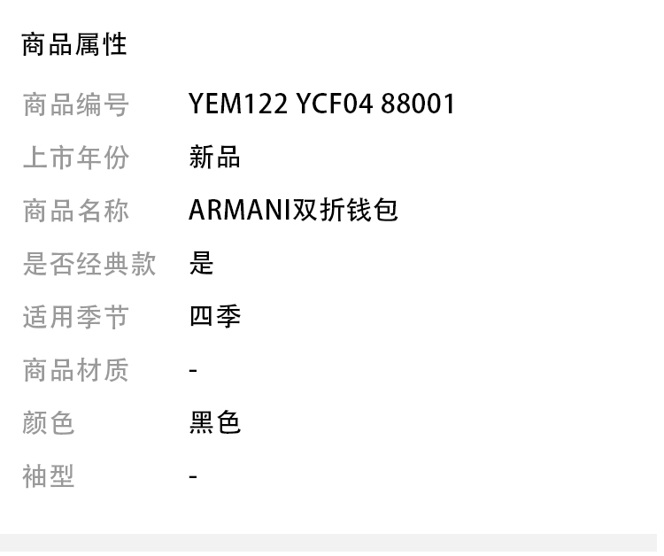 ARMANI 阿玛尼 票夹 黑色 YEM122 YCF04 88001