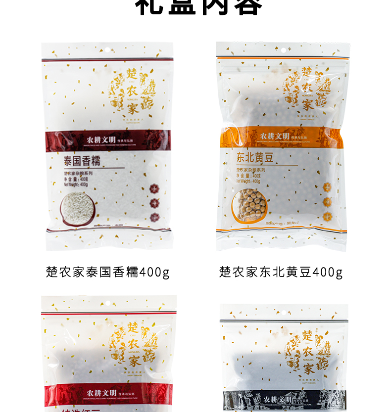 楚农家杂粮礼盒 (400g绿豆/黄豆/红豆/黑米/香糯/黄小米/香粥米/薏米)