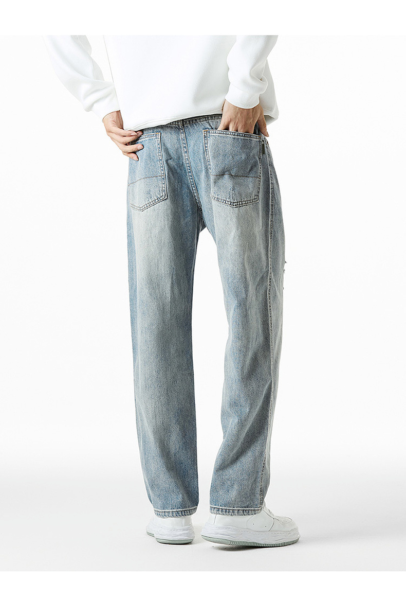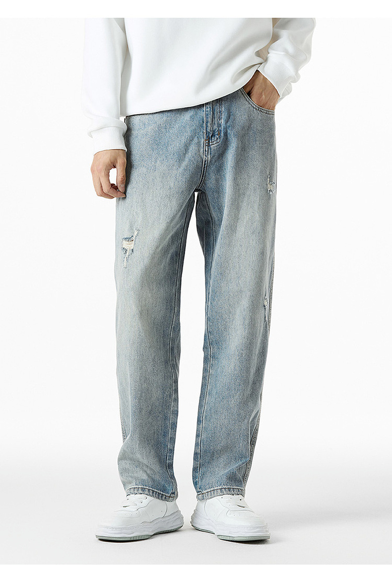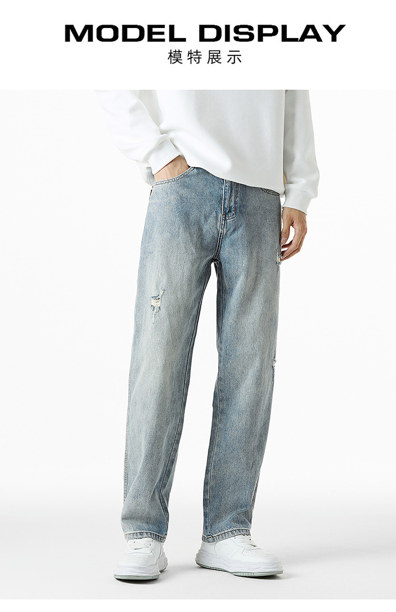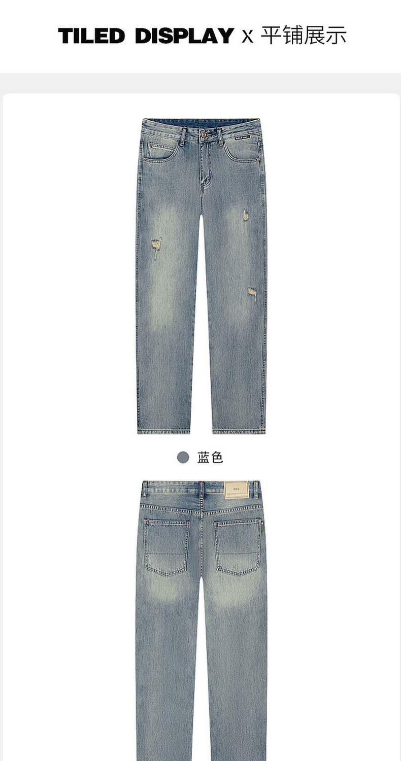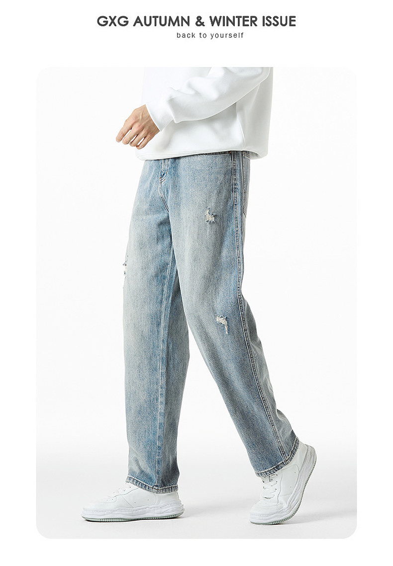 GXG男装秋季时尚潮流破洞款男式百搭牛仔休闲直筒长裤K&C