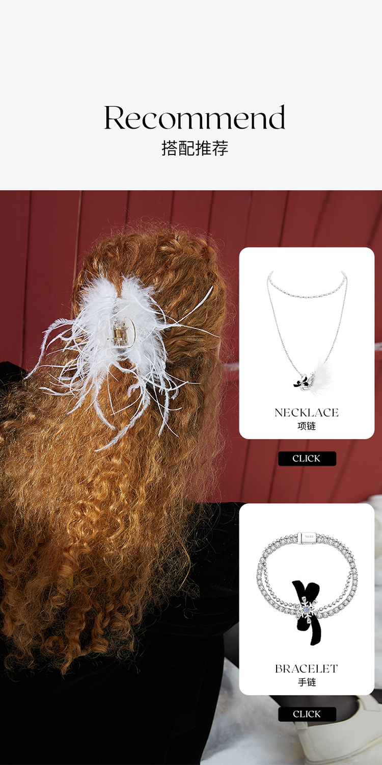 ZEGL黑色羽毛抓夹女白色发夹高级感精致大号头饰森系仙美秋冬发饰