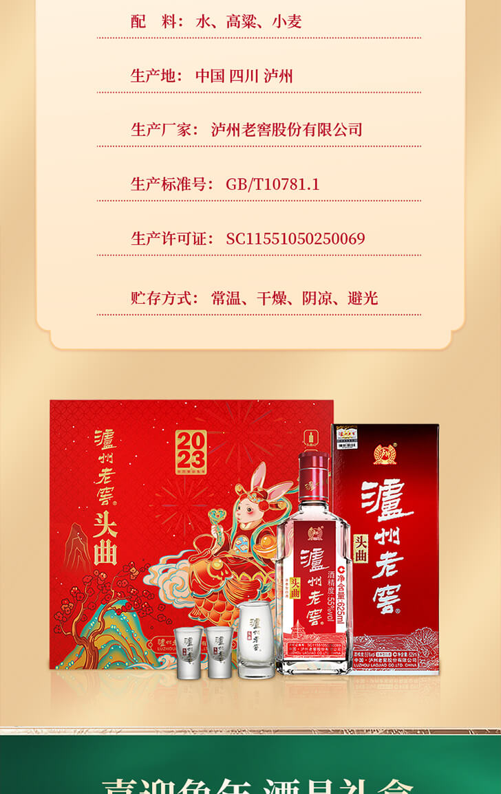 下架【泸州老窖】55头曲2023兔年生肖礼盒套装625ml*2