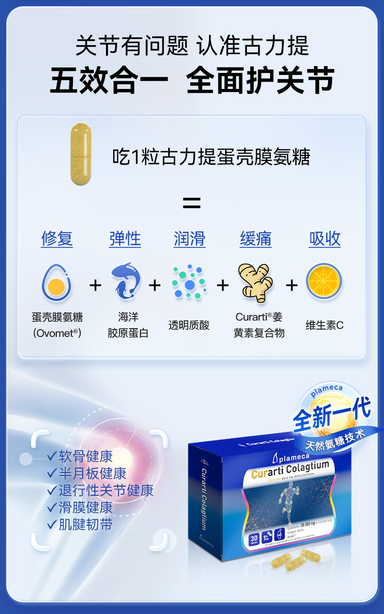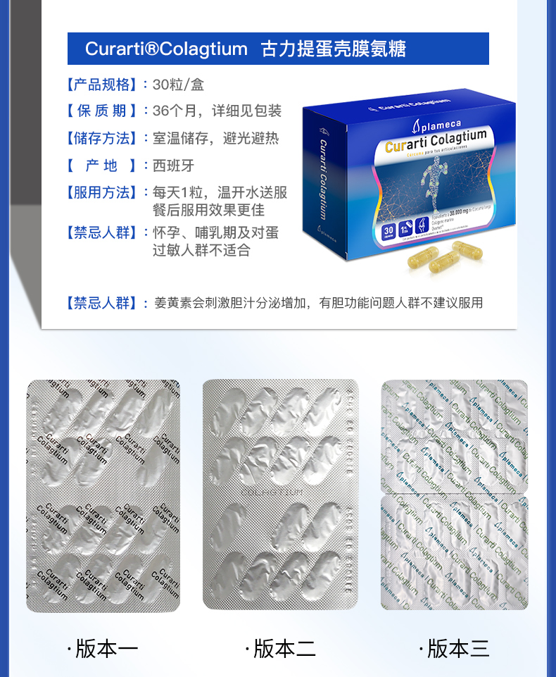 保税直发 Curarti 古力提 蛋壳膜氨糖维骨力硫酸软骨素 30粒/盒 1盒/3盒