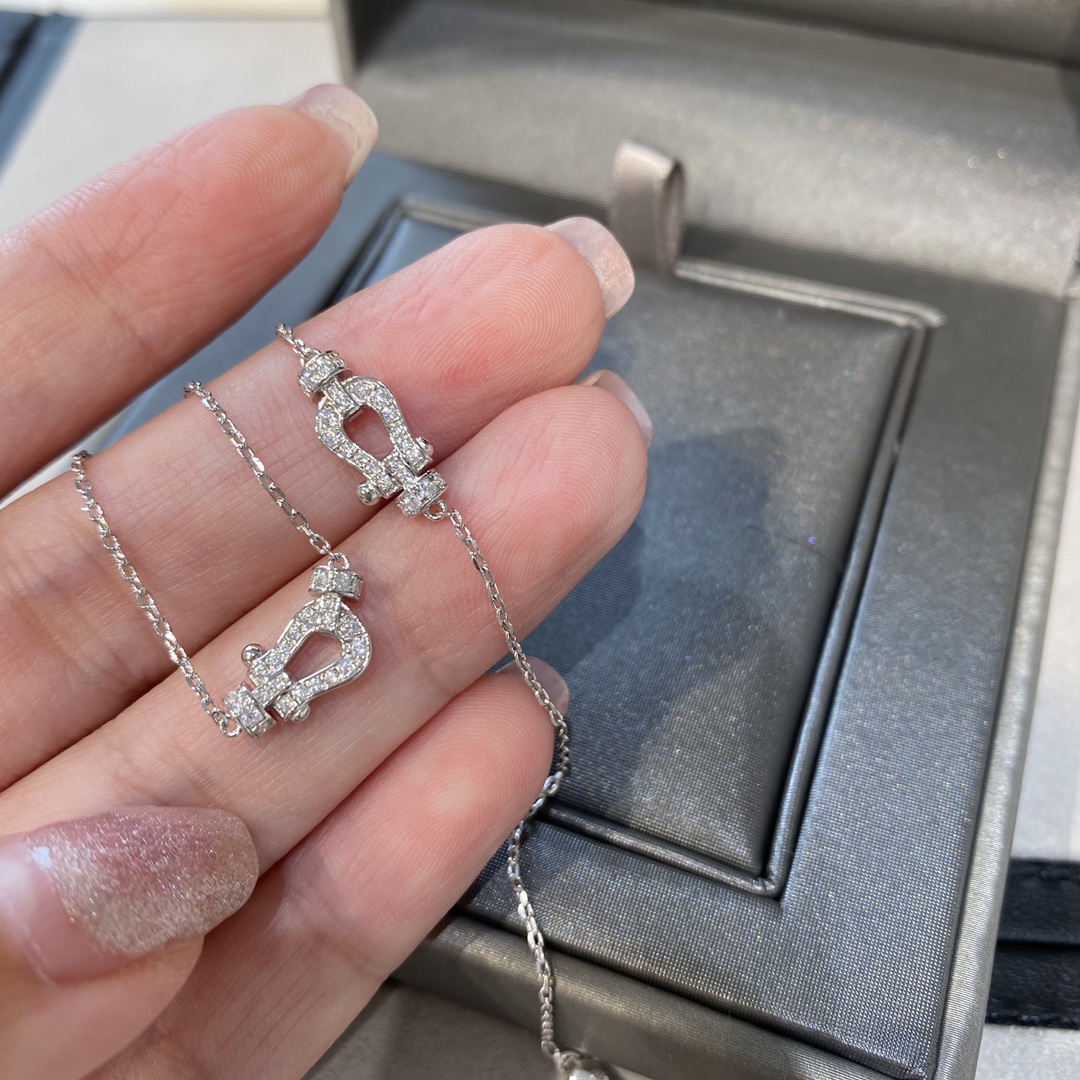 V金版【Z品定制级 1:1钢印 】FRED斐登满钻马蹄项链/手链 在光线下会特别闪 超小的马蹄用来搭配衣服太适合不过了,单戴叠戴都特别好看 时髦单品~