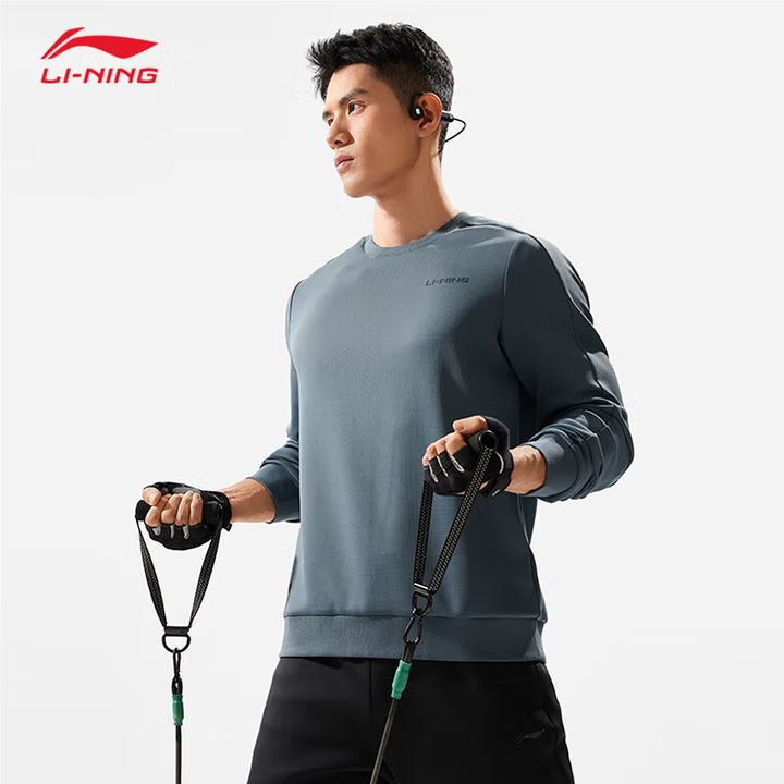 李宁男子秋季保暖健身套头卫衣AWDU869-2螺黛青