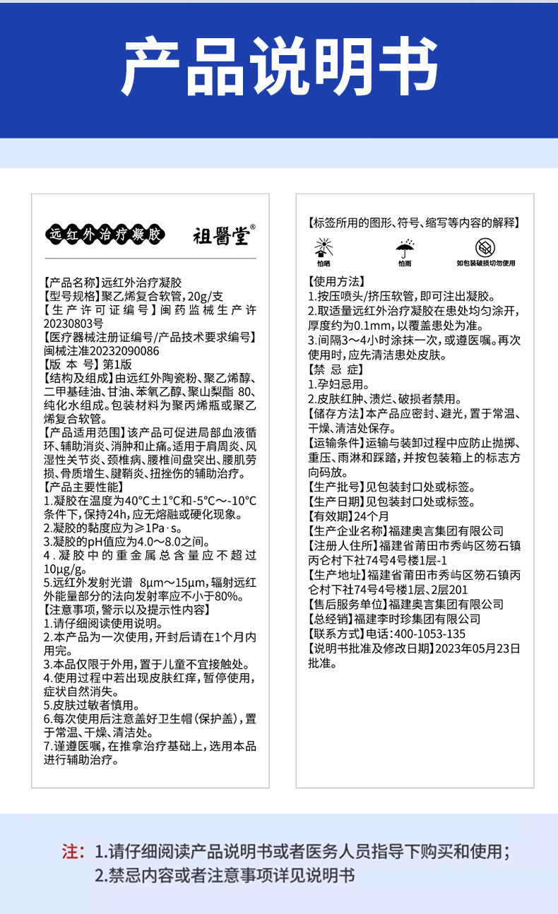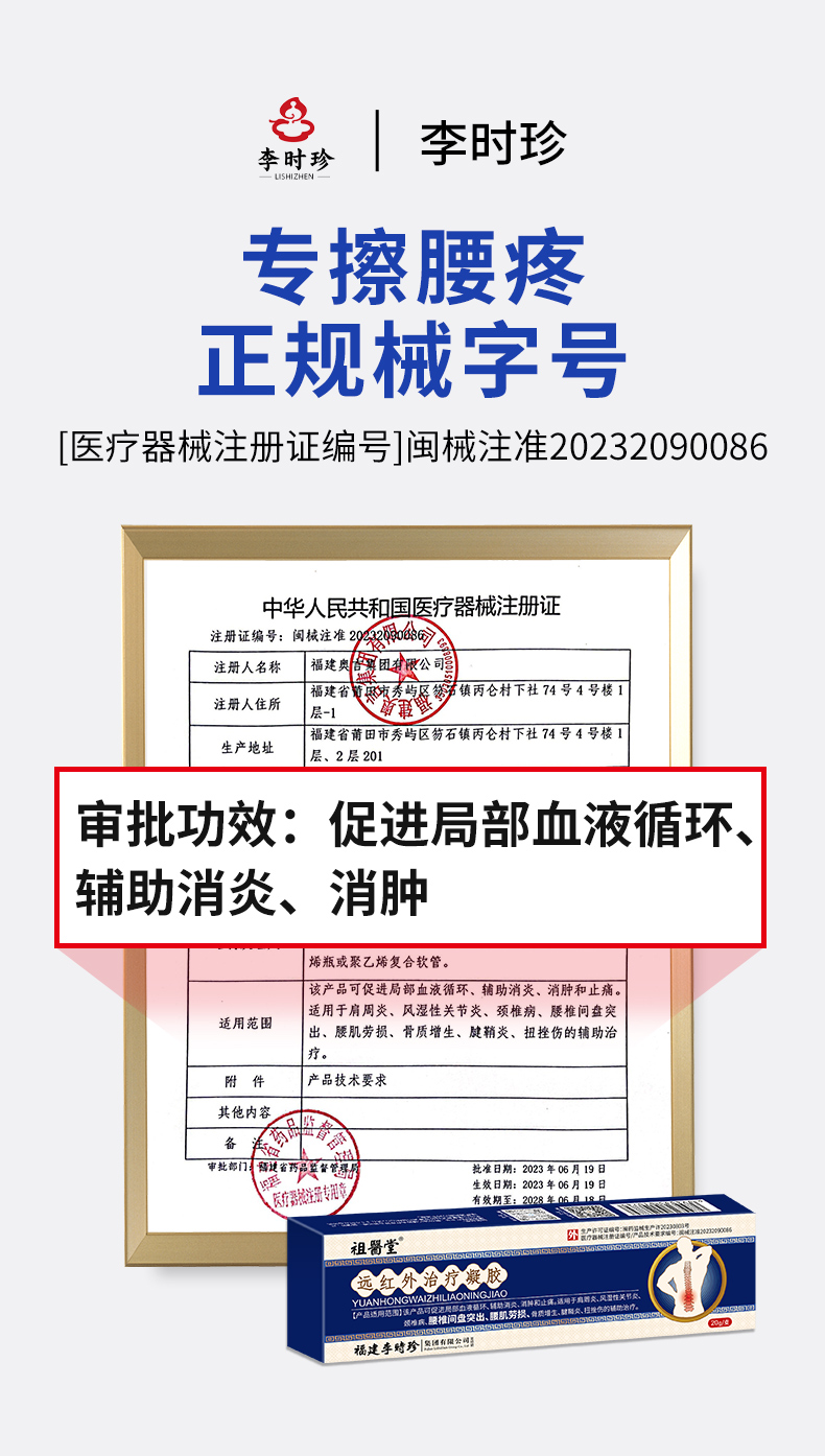 【祖医堂】腰椎型远红外治疗凝胶 腰间盘突出腰肌劳损腰部疼痛僵硬 消炎止痛 透皮擦骨浓缩成膜
