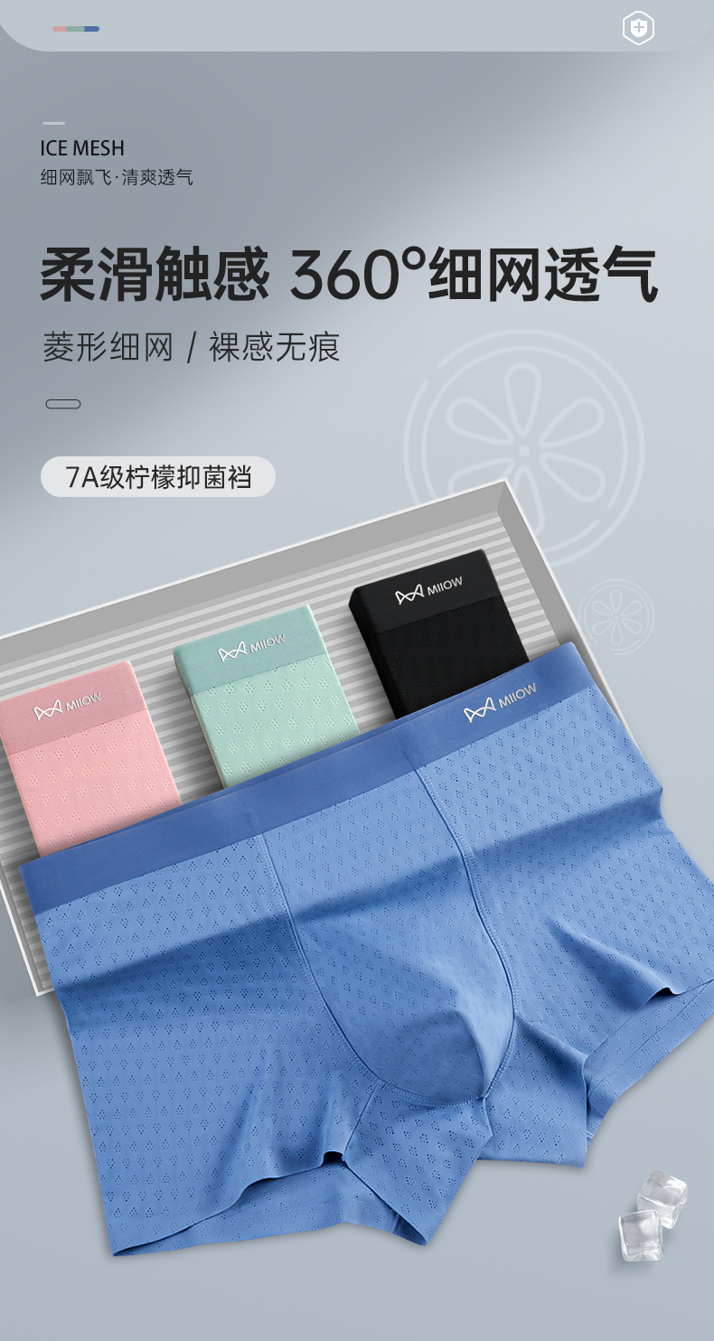 自营(泰利嘉)- 男士7A级柠檬抑菌档冰丝锦纶内裤3条盒装