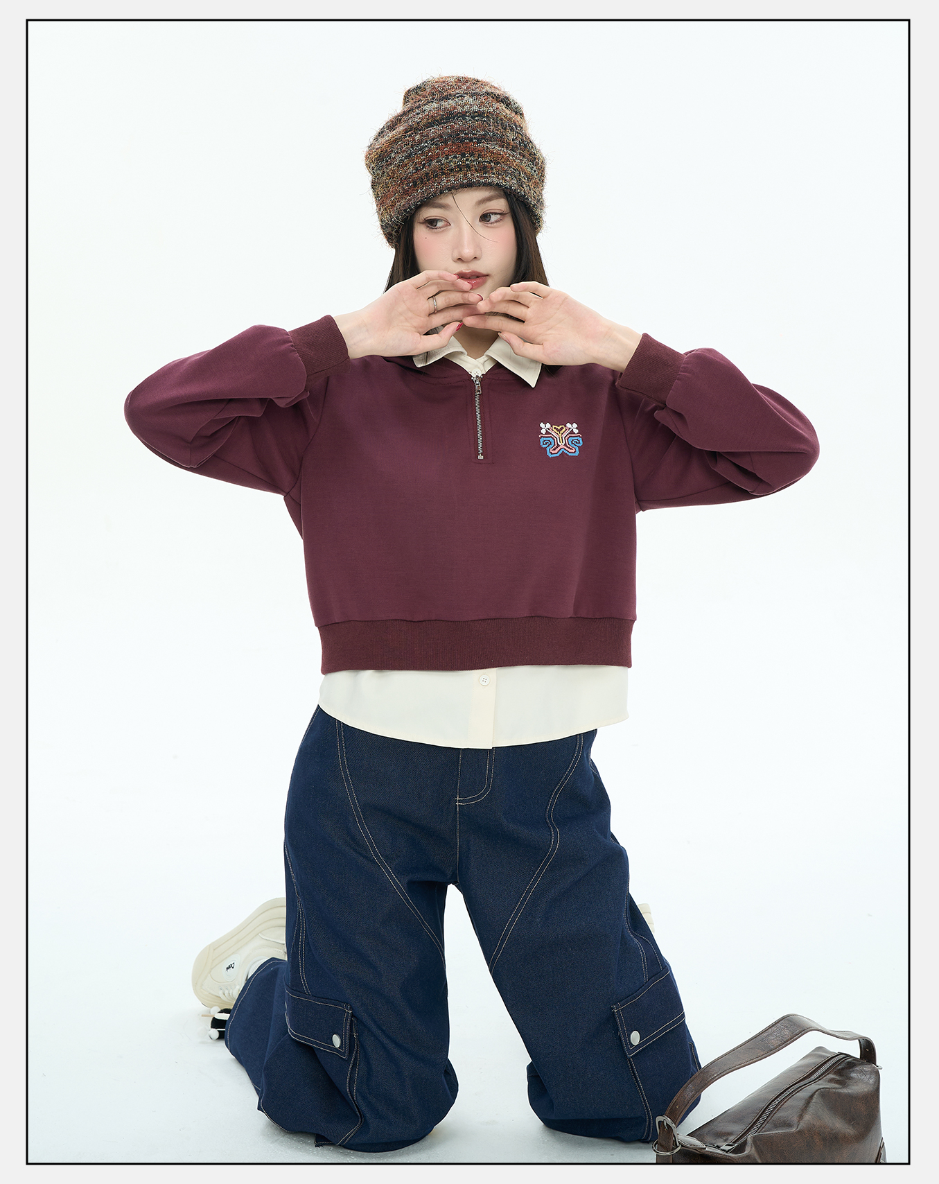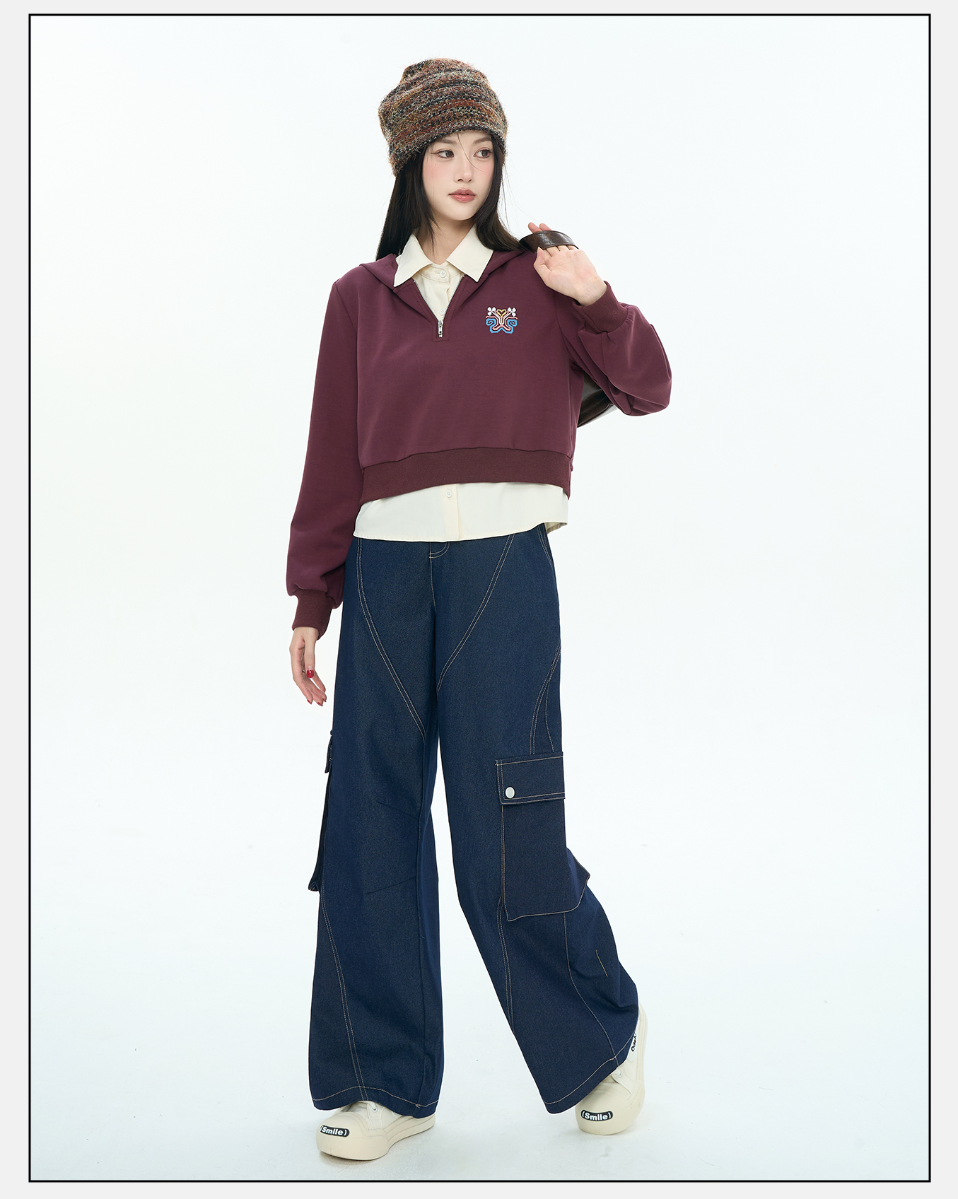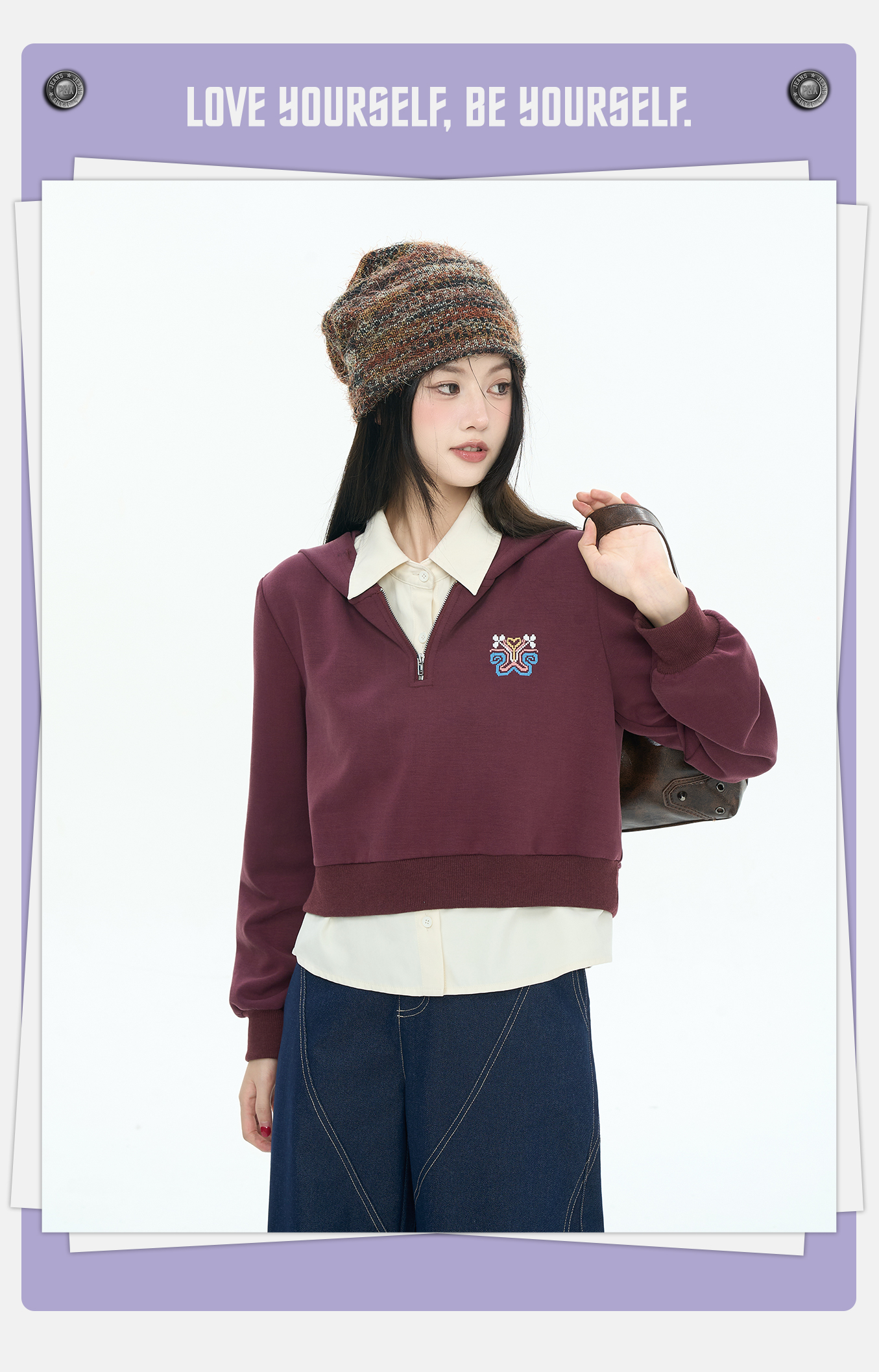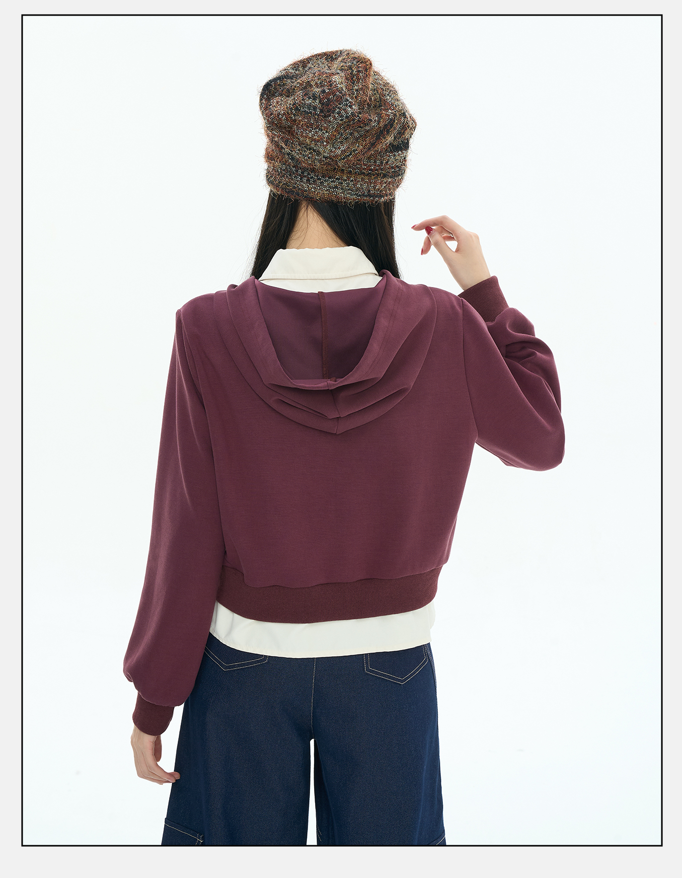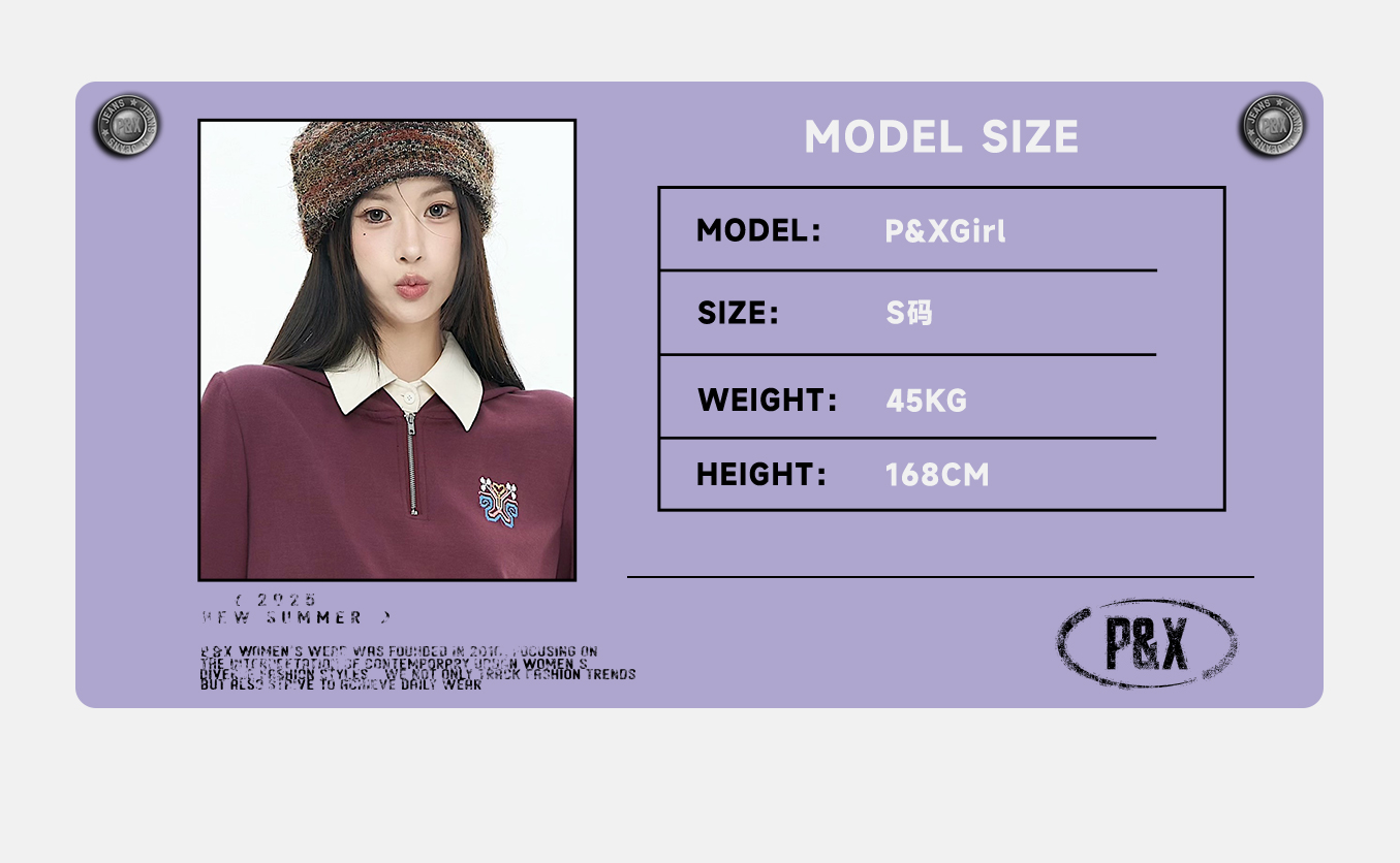 P&X设计师女装2025秋季休闲风女学院风短款卫衣825317140 紫/杏