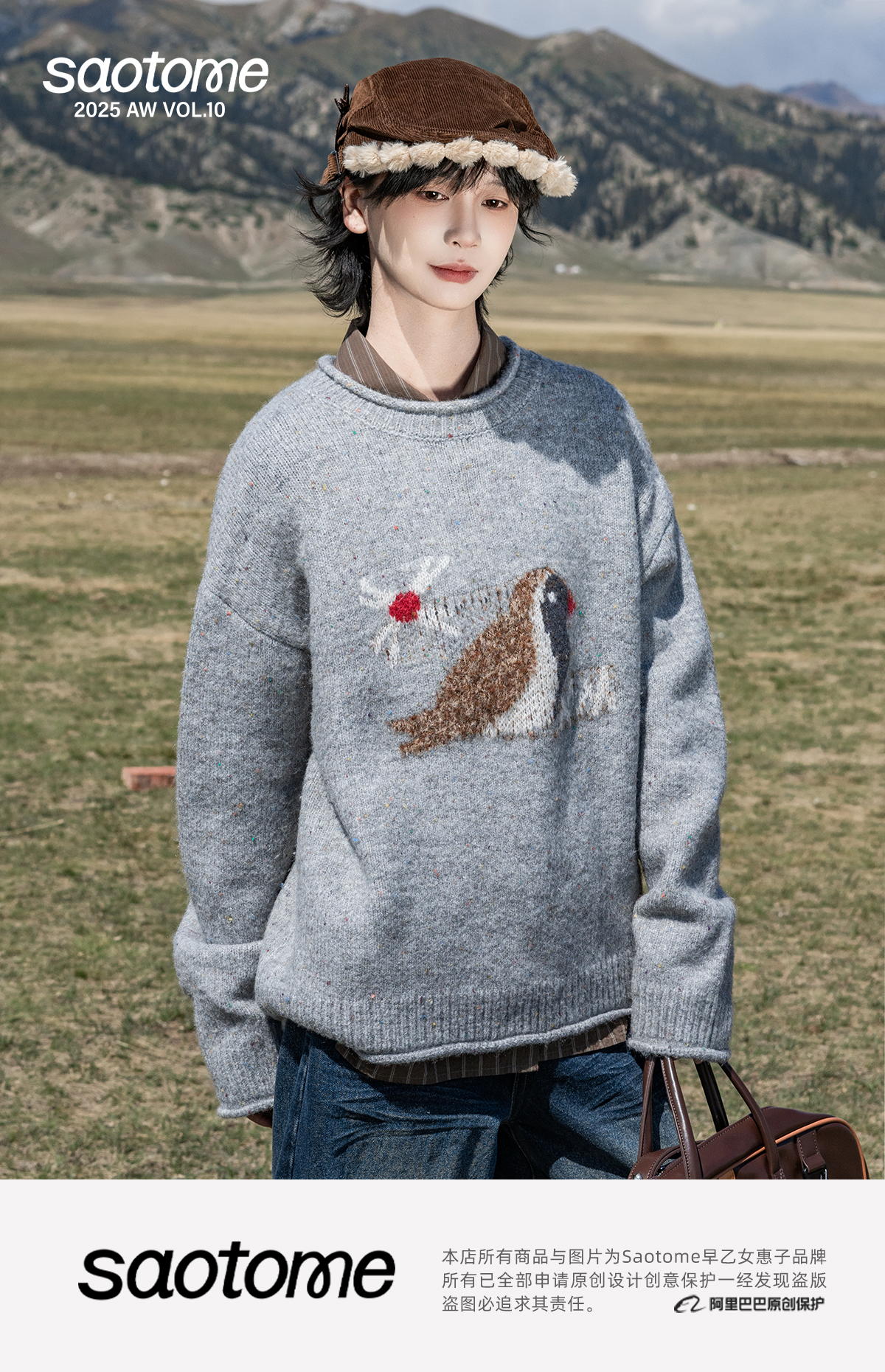 早乙女惠子saotome/STMMY141132/小鸟提花毛衣