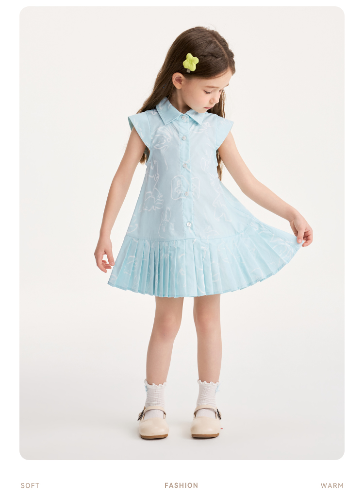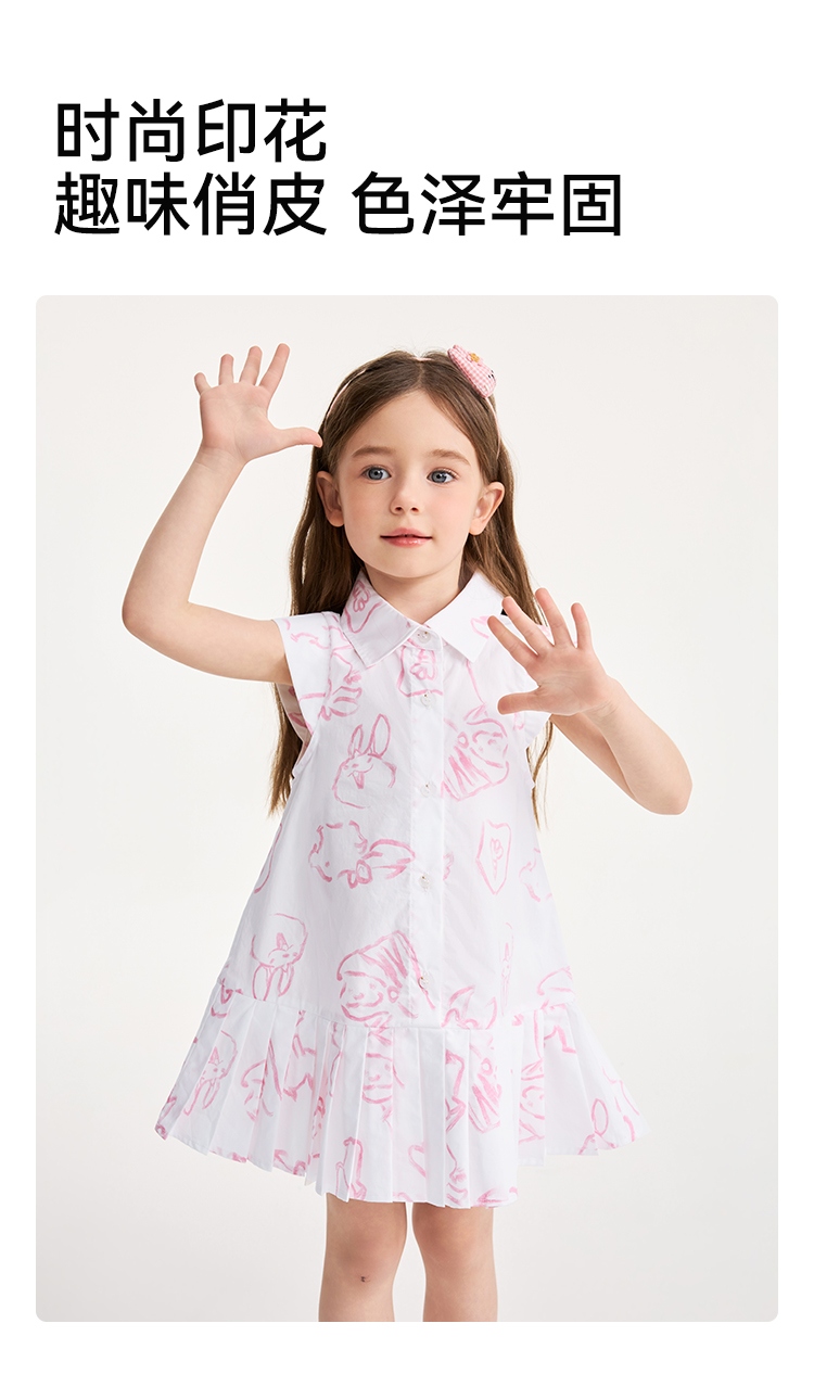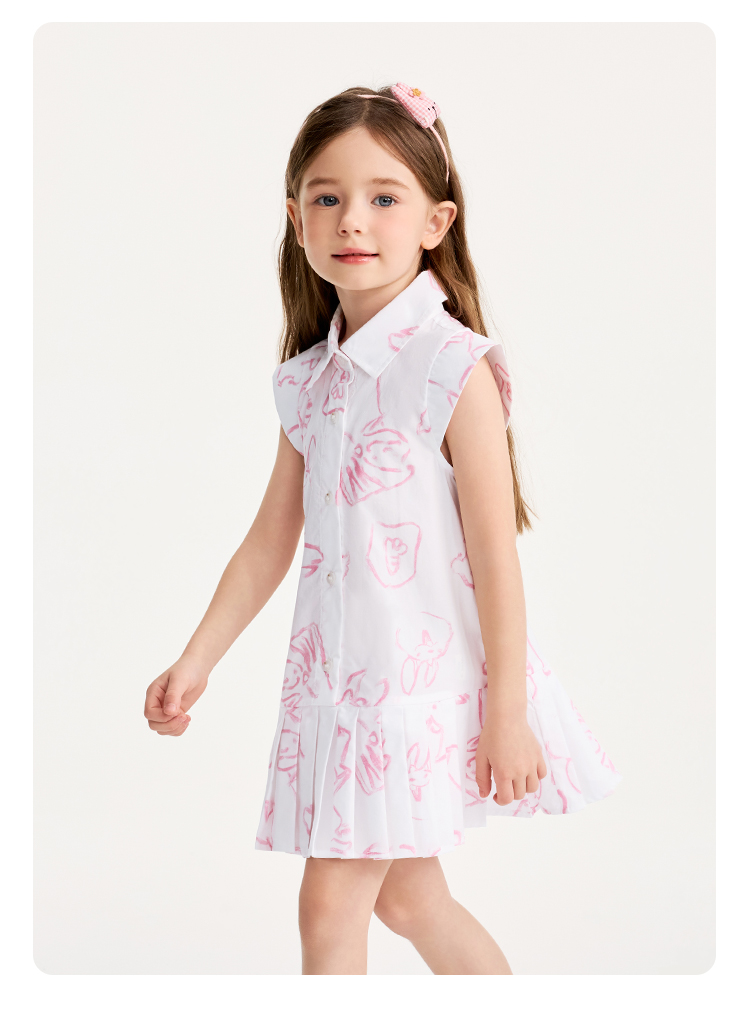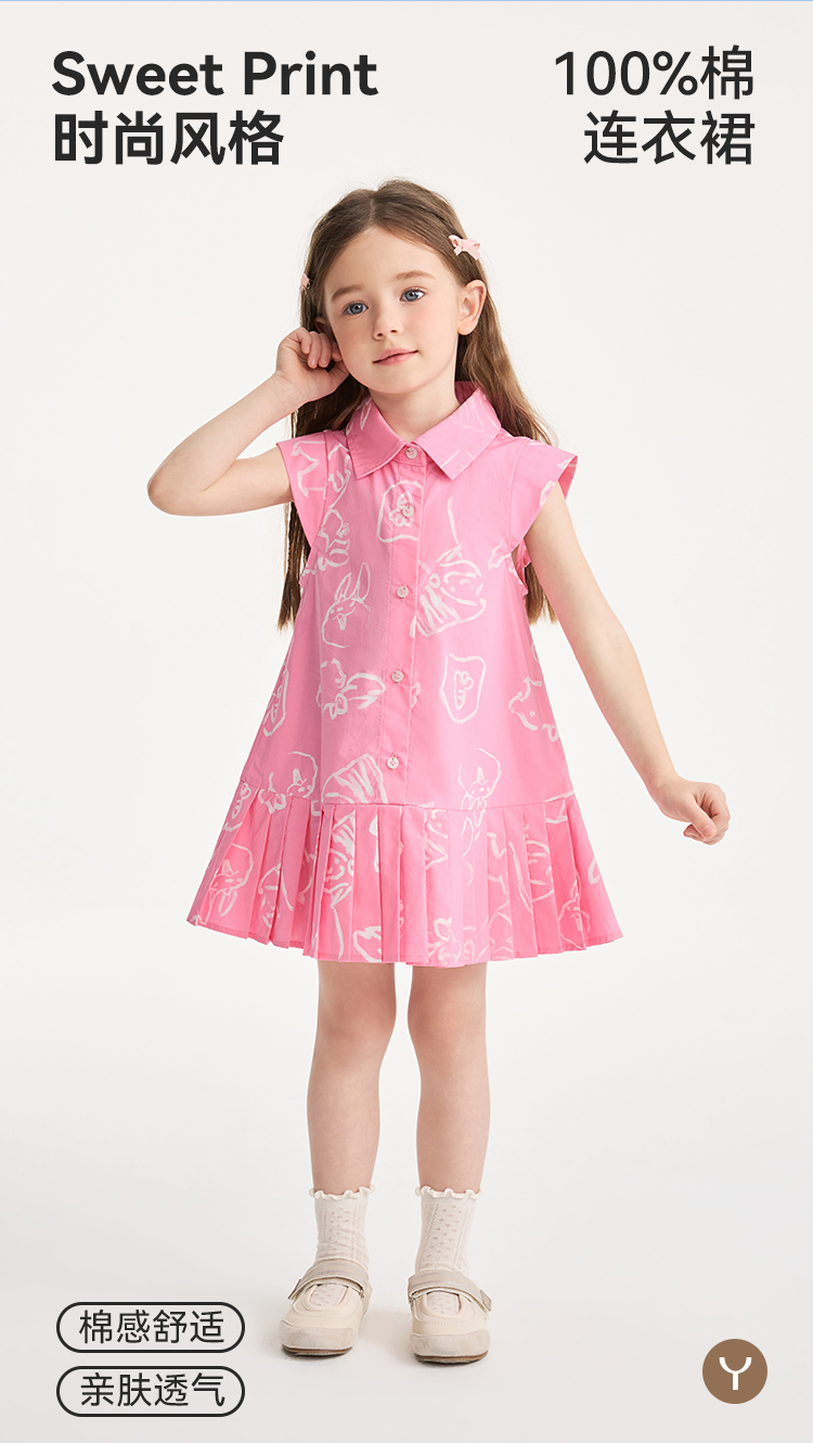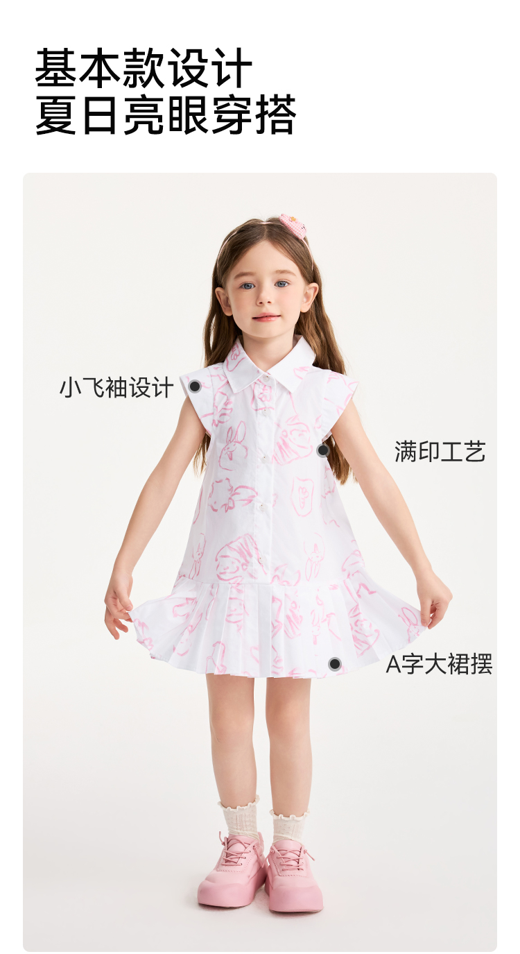【英氏】【100%棉】【90-140】女童夏季卡通印花A字连衣裙