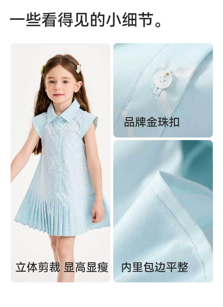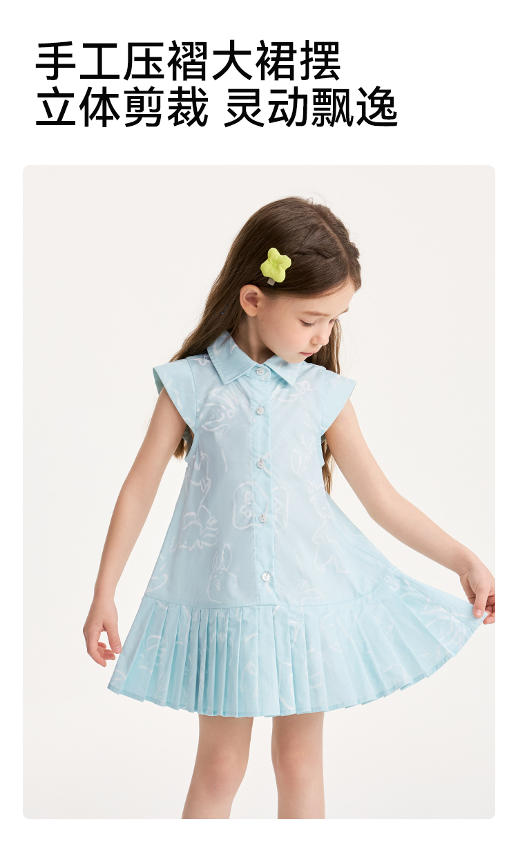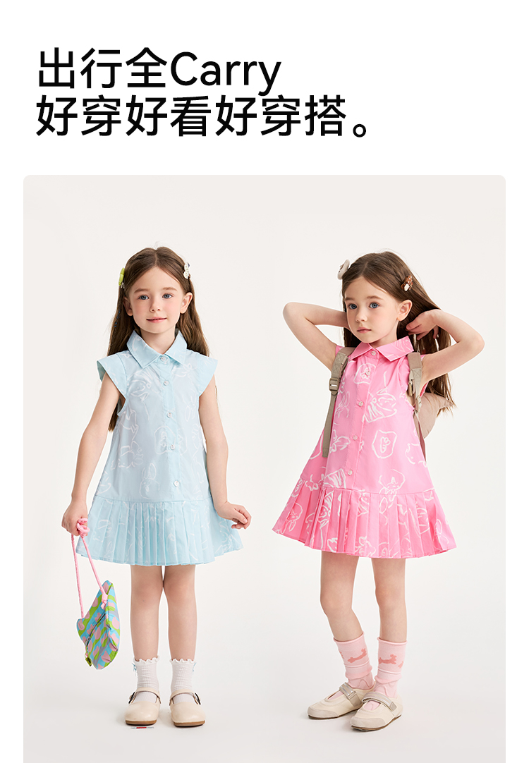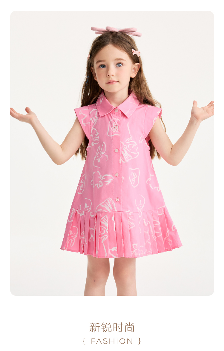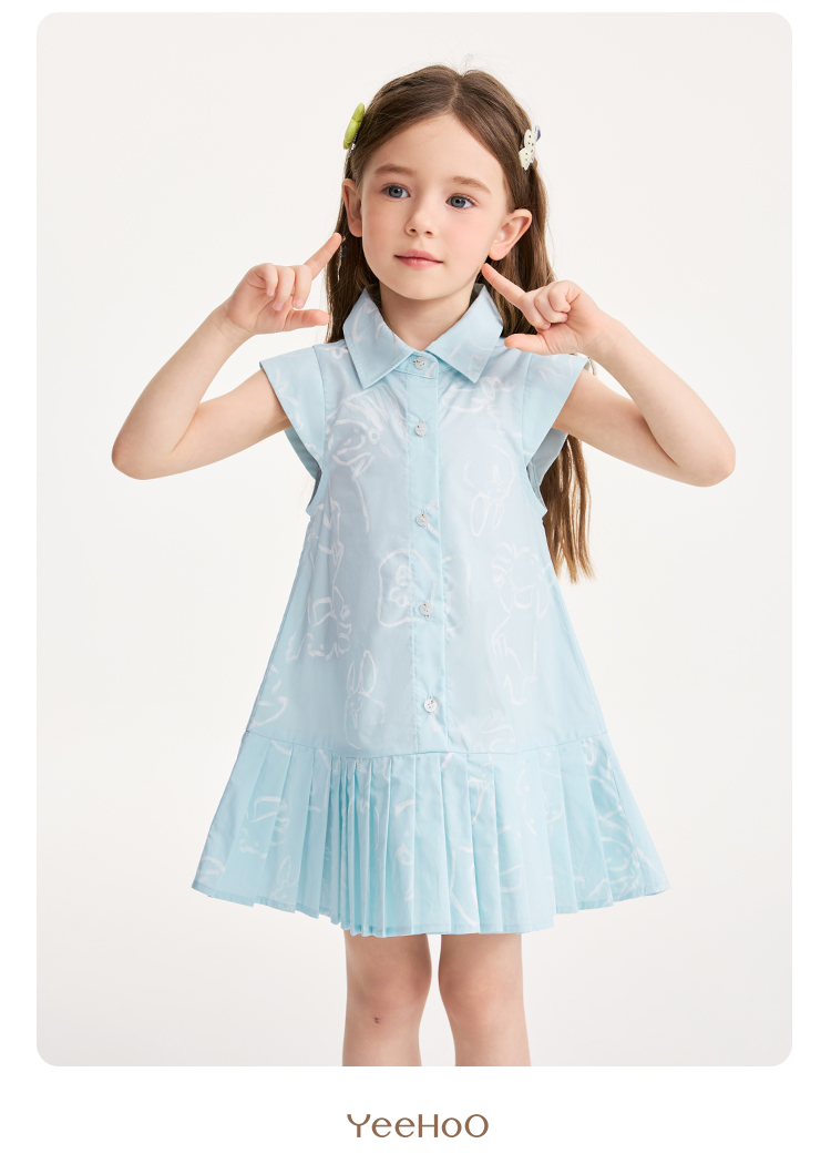 【英氏】【100%棉】【90-140】女童夏季卡通印花A字连衣裙