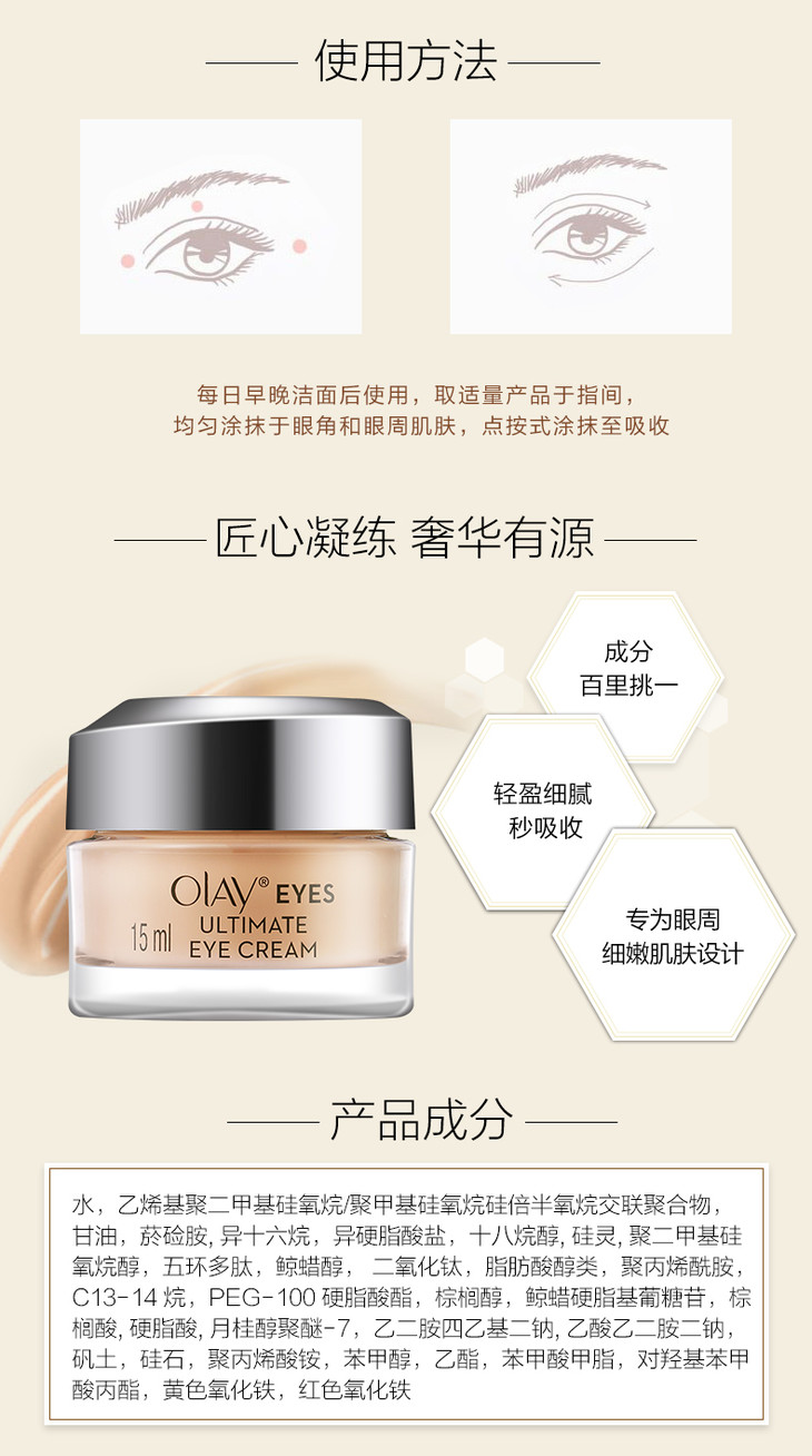 【新西兰直邮】美国玉兰油Olay ji致修护眼霜15ml 提拉紧致滋润