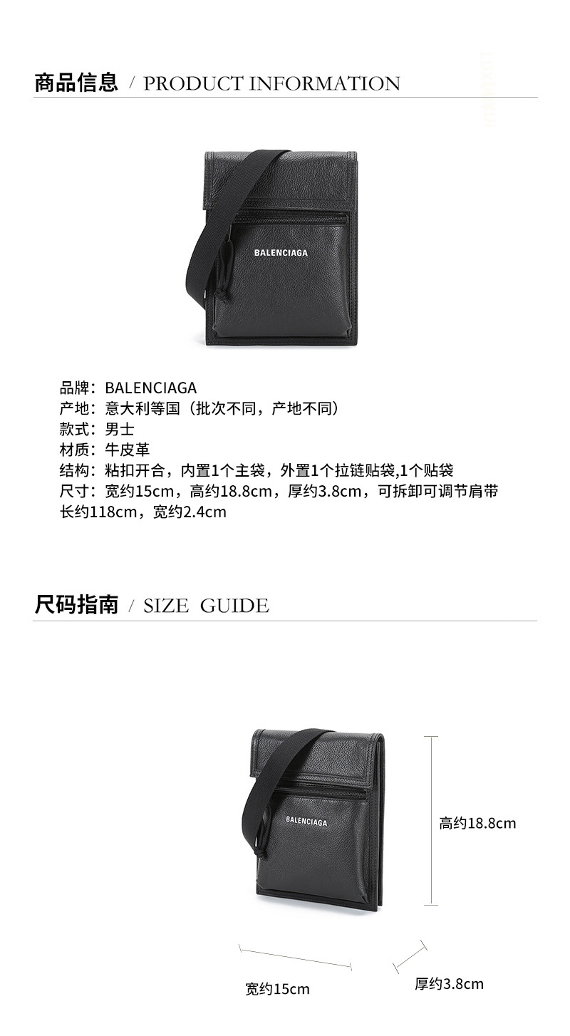 Balenciaga/巴黎世家 2021款 男士小号S码牛皮革单肩斜挎包手拿包 655982 13MNX