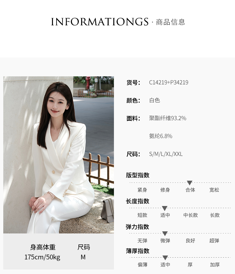 IWY/白色西装套装女新款休闲宽松西装外套医美上班正式场合工作服C14219+P34219
