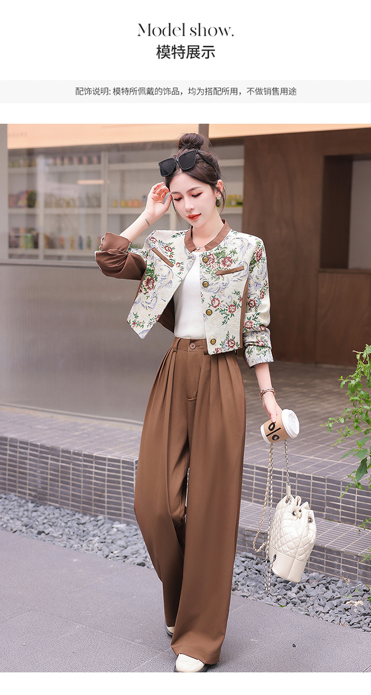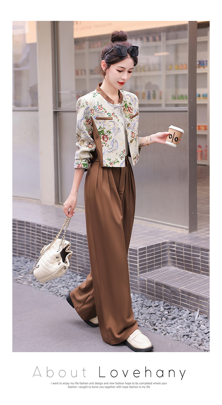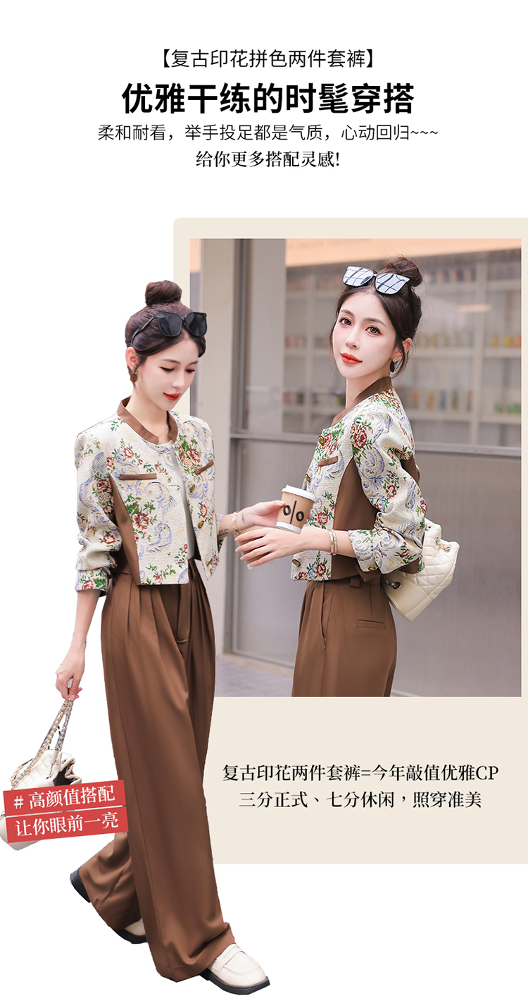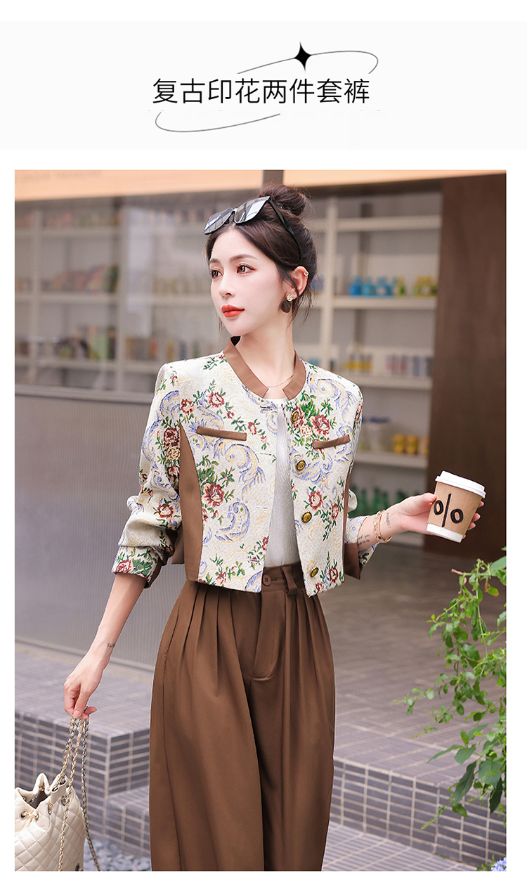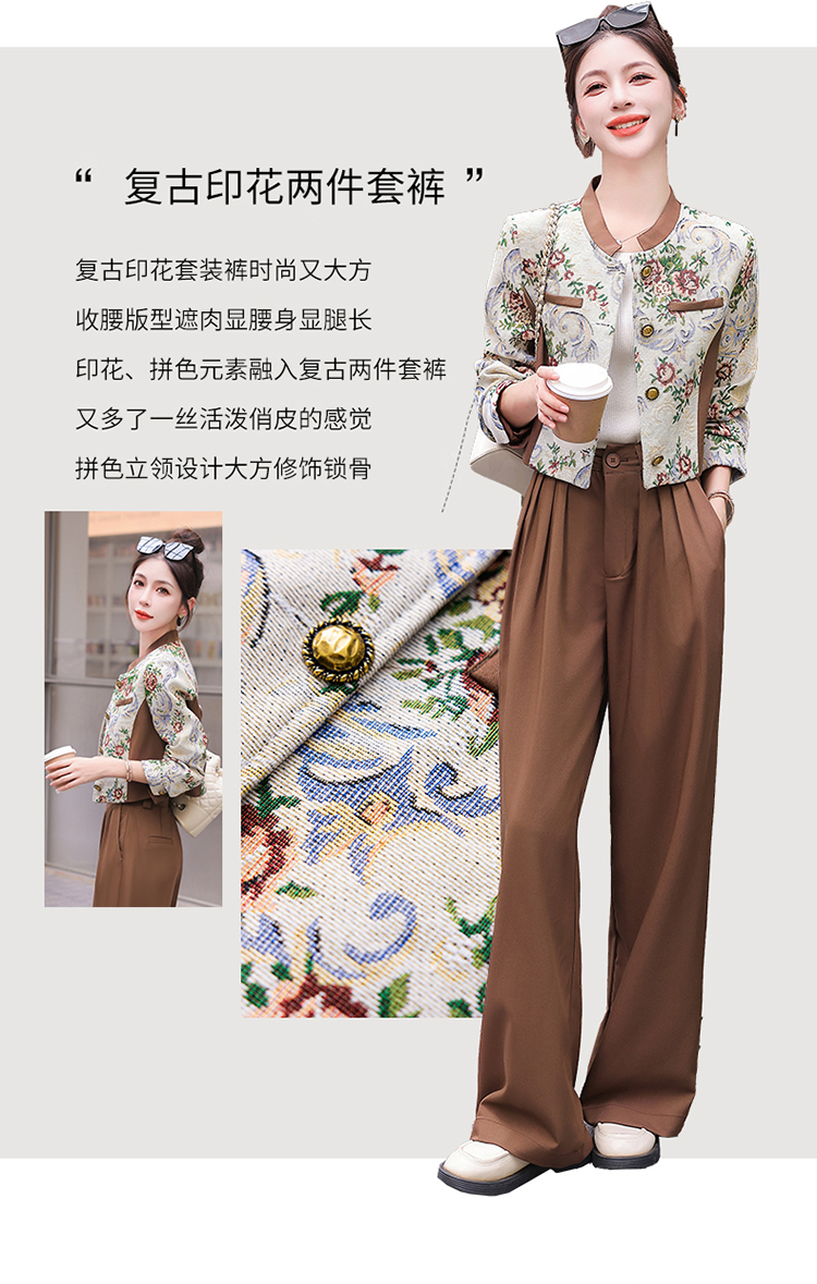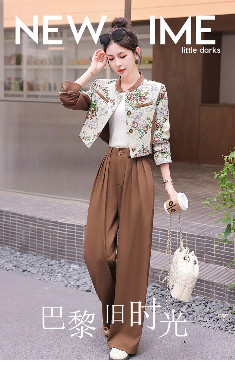 秋季新款,小香复古短外套+高腰垂感拖地裤两件套HR-YJLY8017