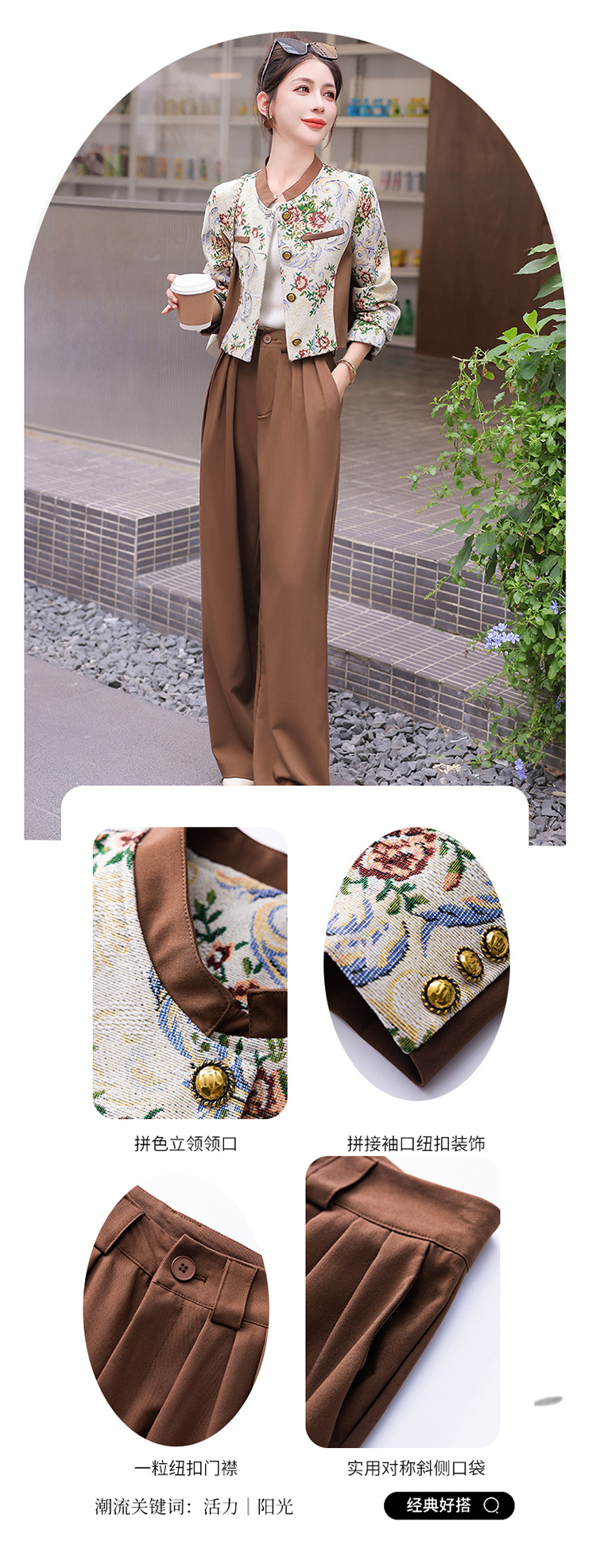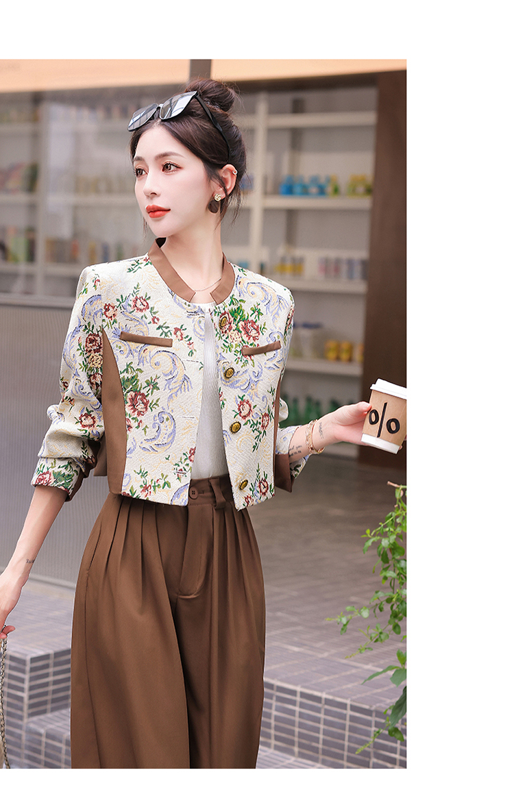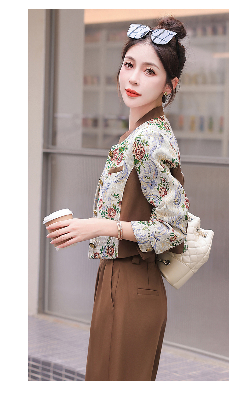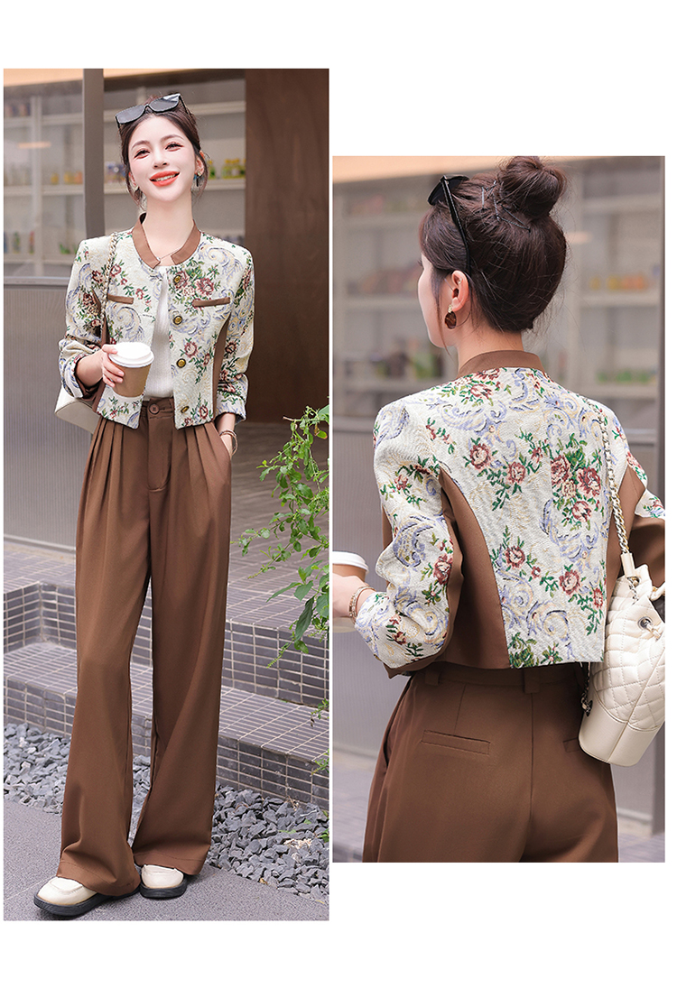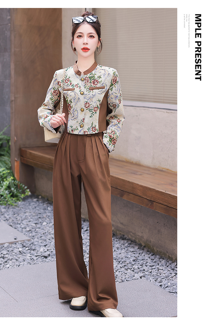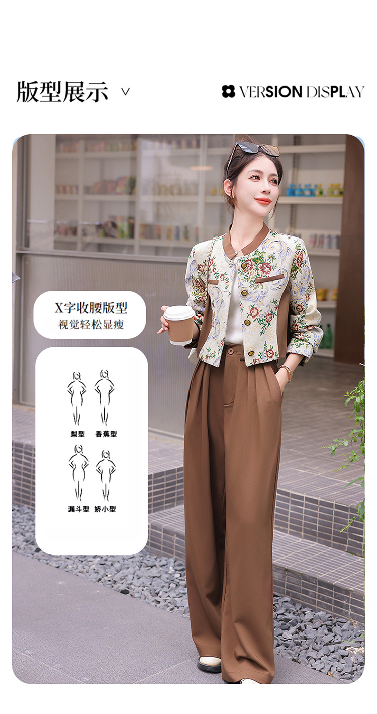秋季新款,小香复古短外套+高腰垂感拖地裤两件套HR-YJLY8017