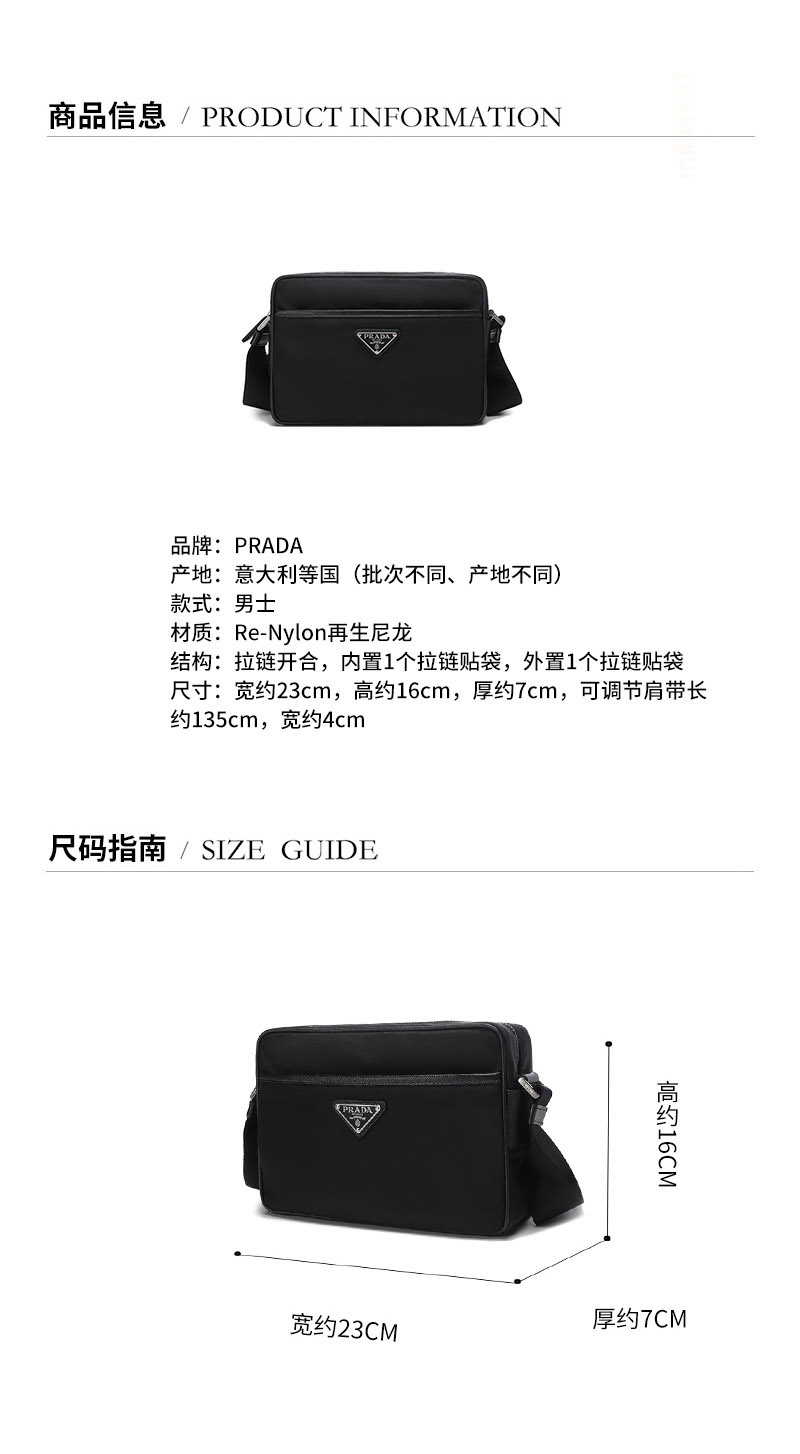 PRADA/普拉达【22春夏新款】 男士Re-Nylon再生尼龙单肩斜挎包 2VH048 2DMH