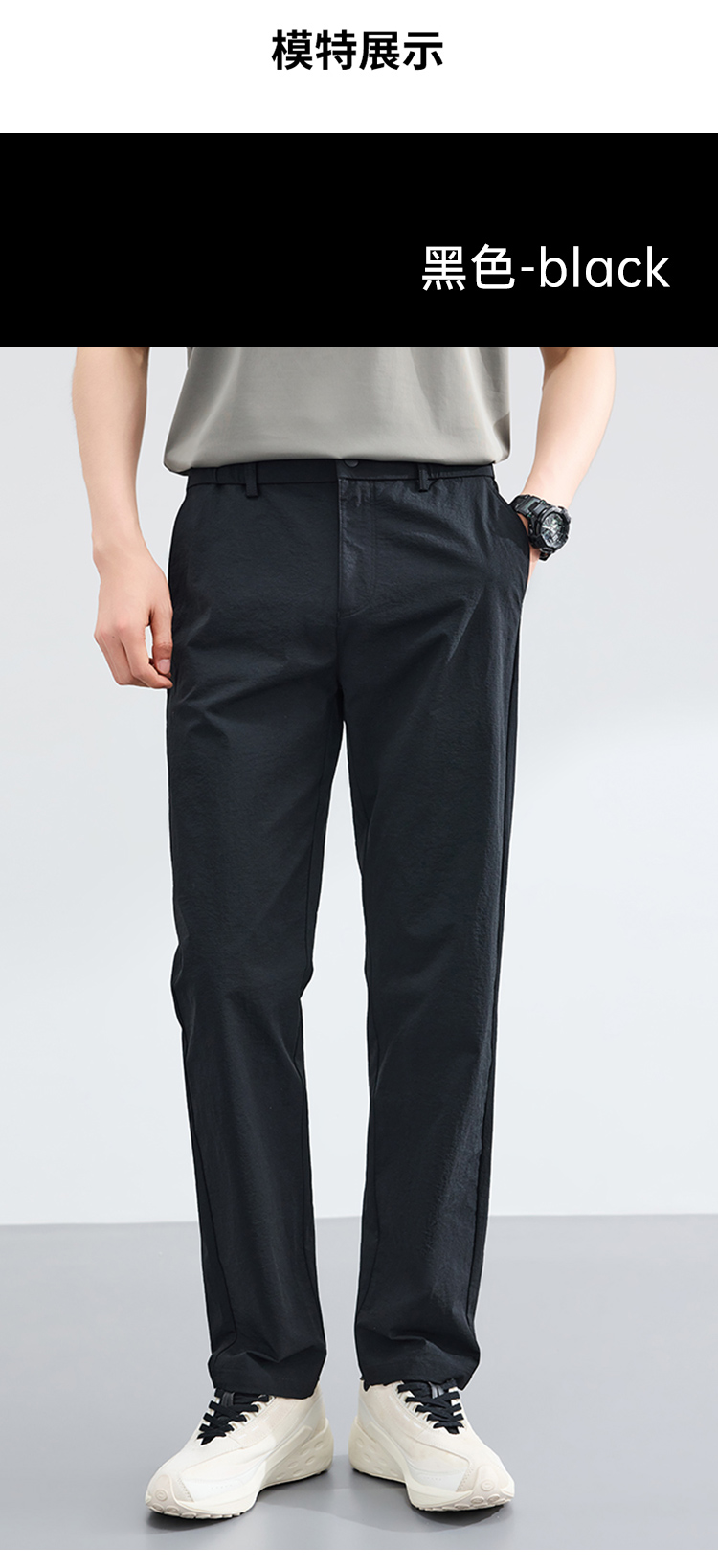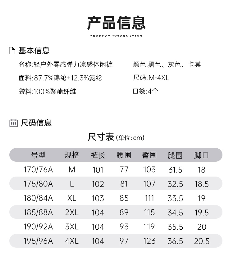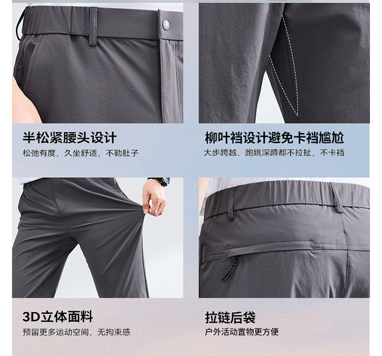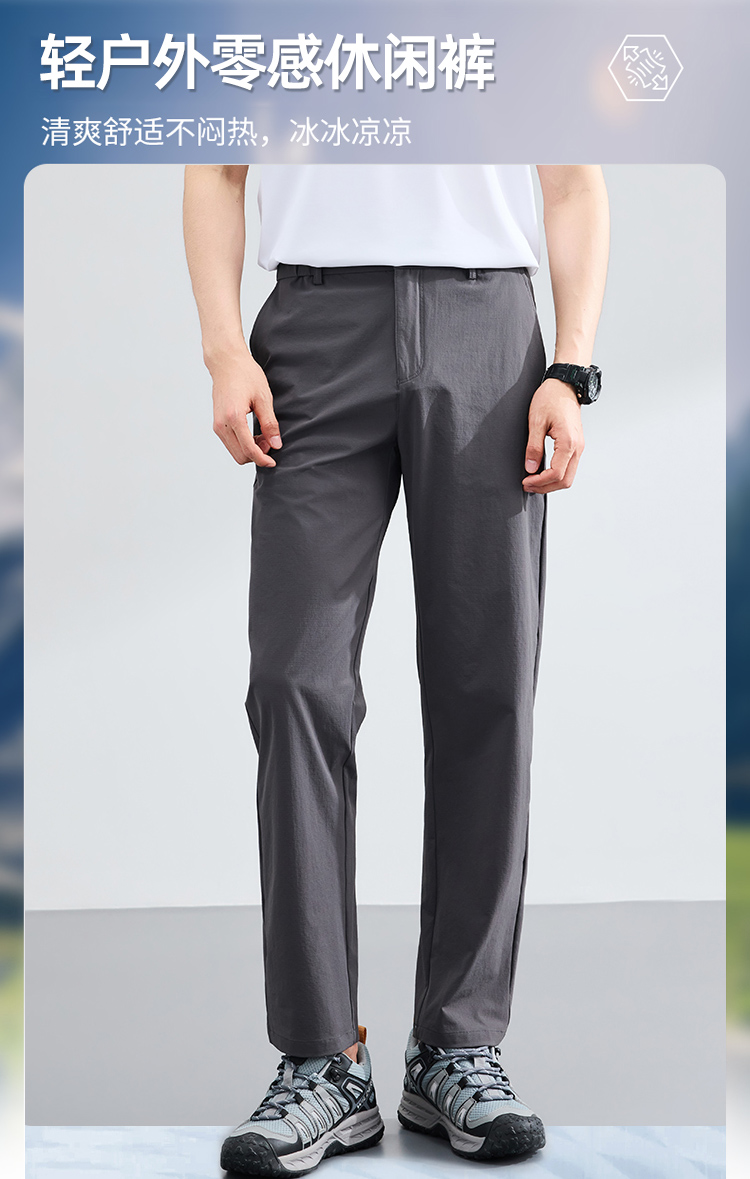 【轻户外零感弹力凉感休闲裤】运动休闲长裤子 半松紧腰商务直筒裤 KT606