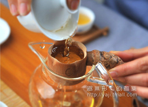 ![]() | 倒茶时,只需将茶漏置于茶海上,而不必担心茶漏倾倒,可以从容地表演茶道,而不至于手忙脚乱。 |