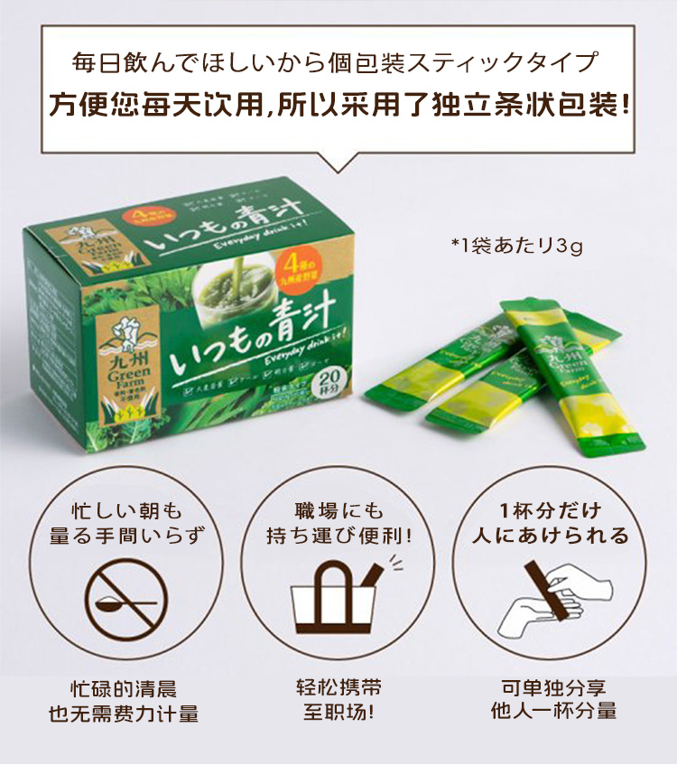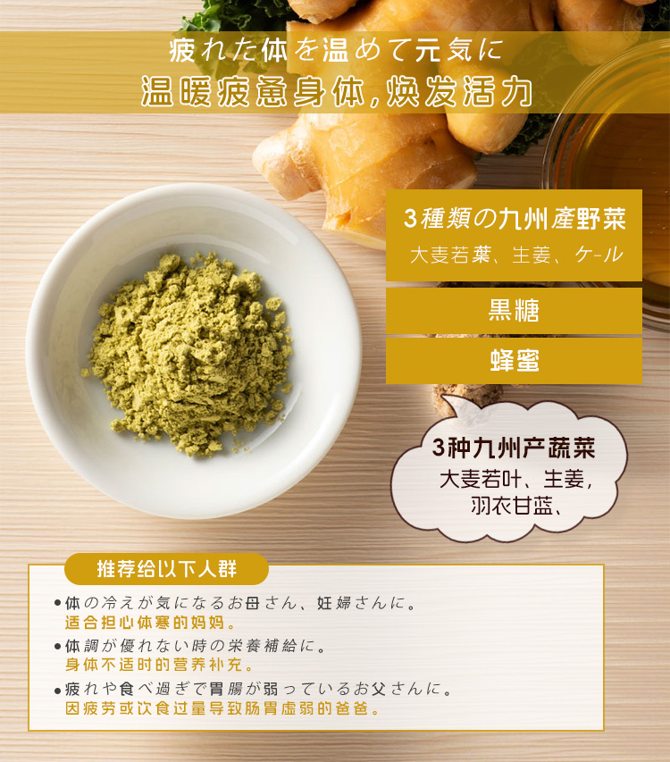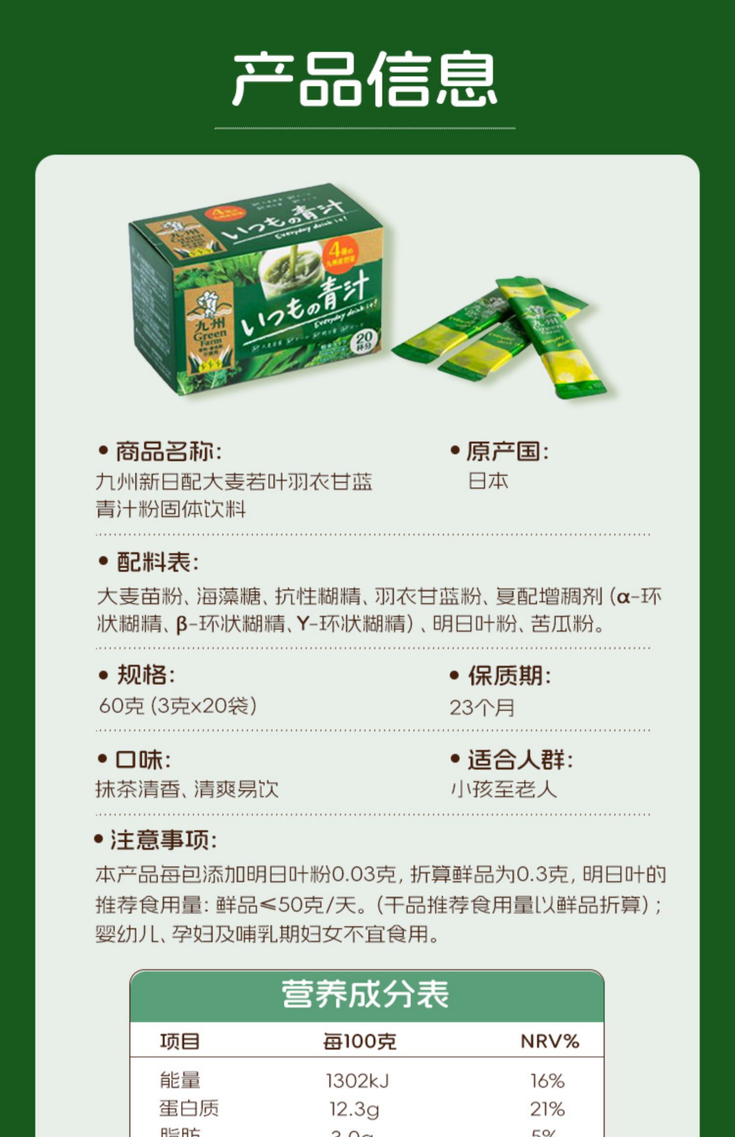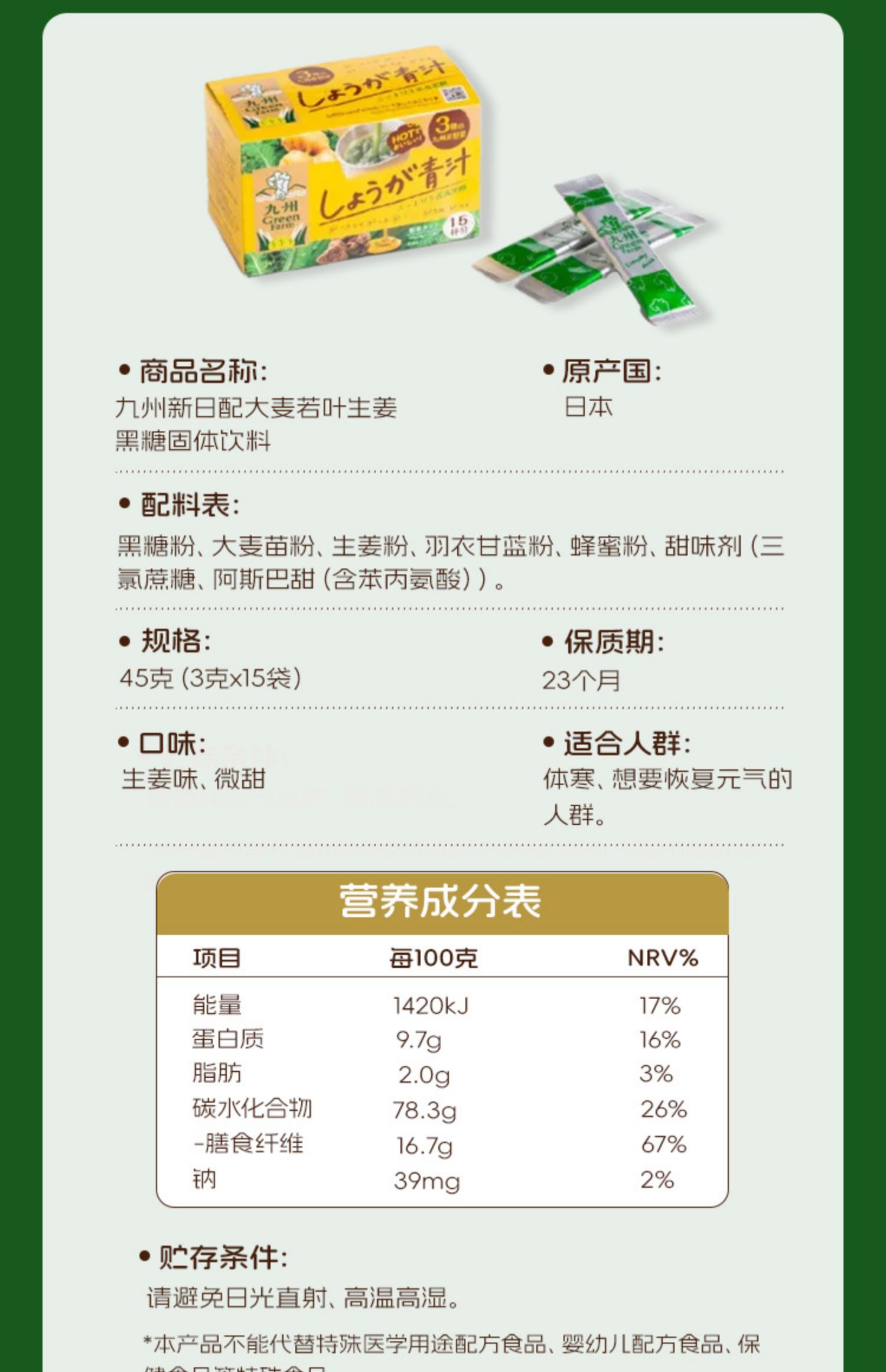 九州新日配大麦若叶生姜黑糖固体饮料45g/羽衣甘蓝青汁粉固体饮料60g 配料干净放心食用 025747/025746