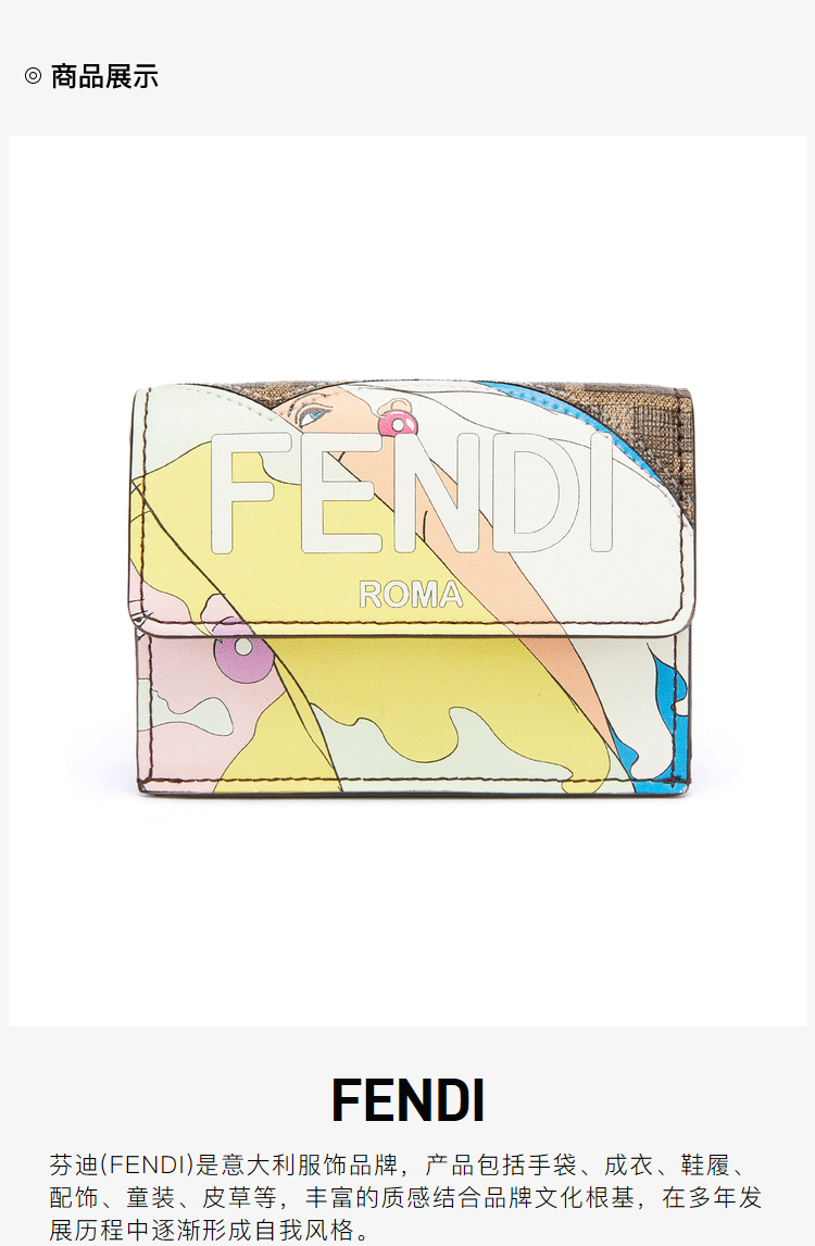 FENDI 芬迪 女士Micro Trifold系列棕色布料FF图案紧凑型三折皮夹 商品图0