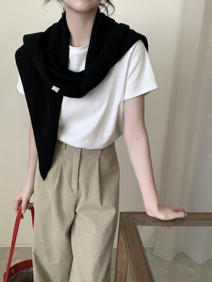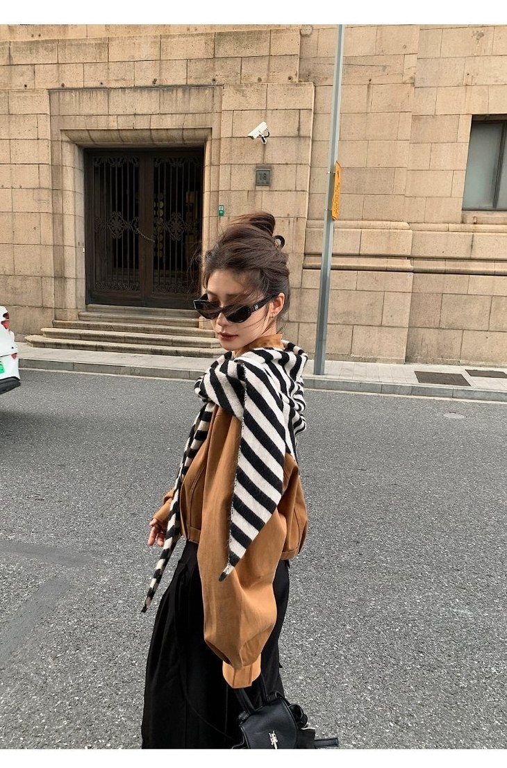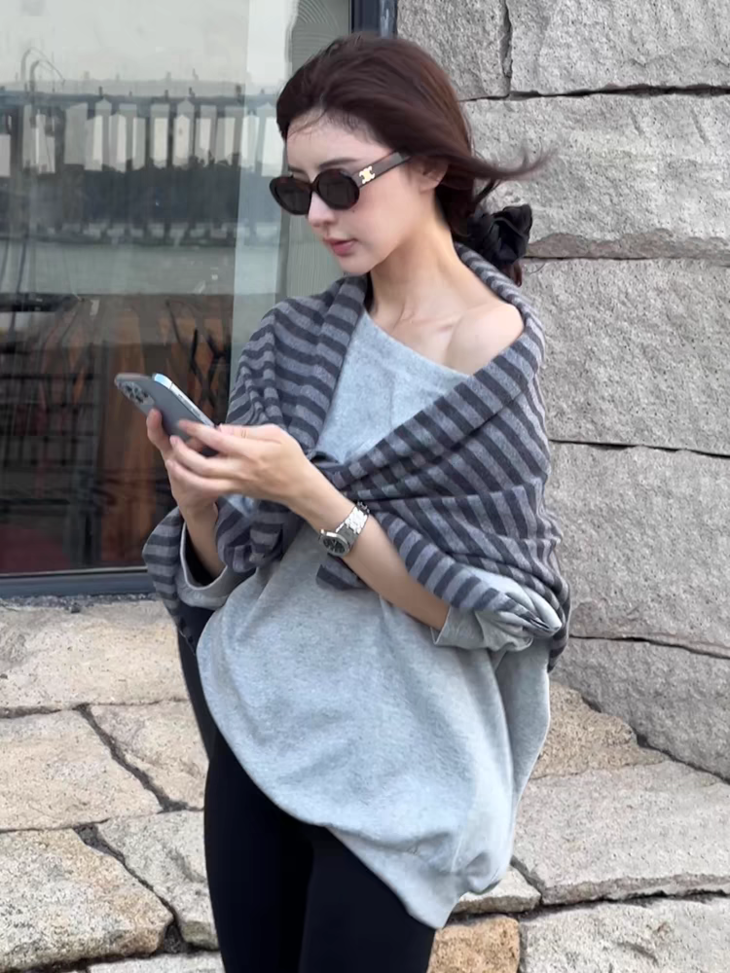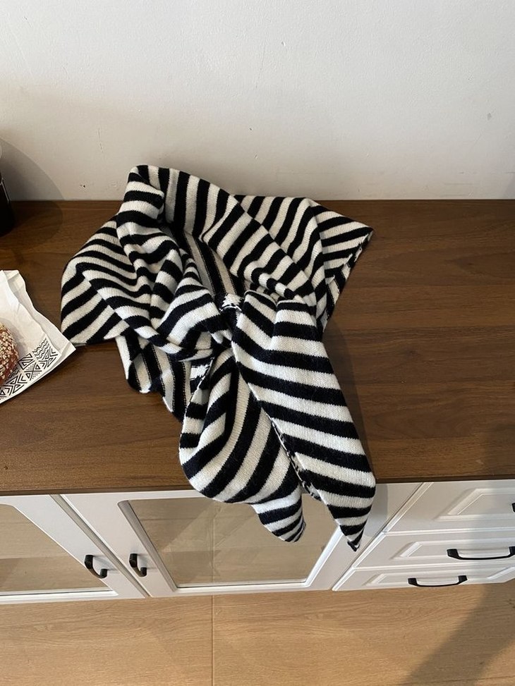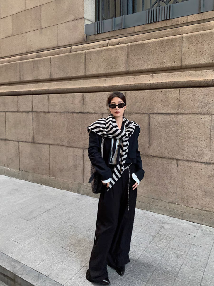 韩系复古风情.bai搭基础披肩 在微风轻拂的午后,或是温柔的黄昏时刻, 它不仅仅是一件配饰,更是您个性与品味的时尚宣言。 尤其经典黑白条纹设计,融合了复古与现代的美学理念, 简约而不失时尚感,轻松驾驭各种风格与场合。 无论是日常出行、约会聚会,还是办公休闲, 这款韩系复古风百搭基础披肩都是您不可多得的时尚单品。