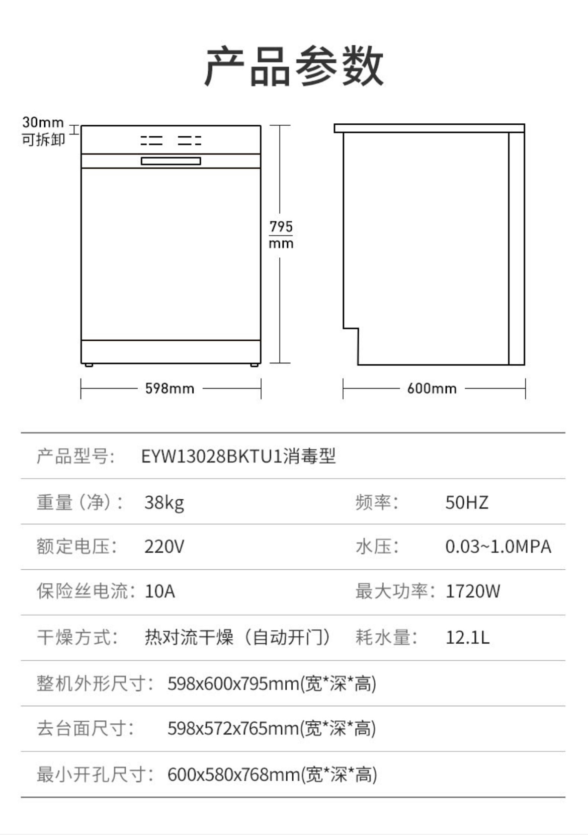 海尔(Haier)洗碗机 EYW13028BKTU1消毒型