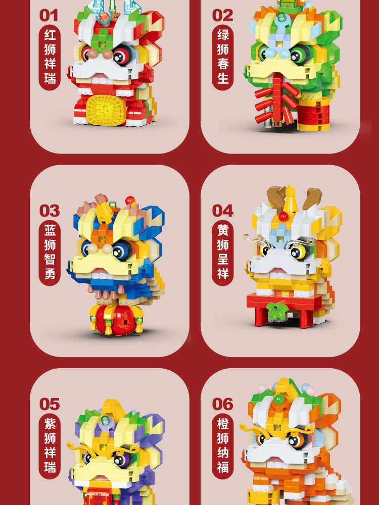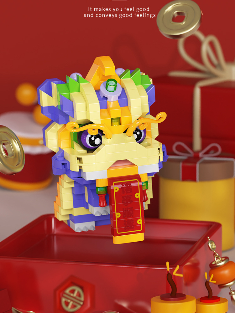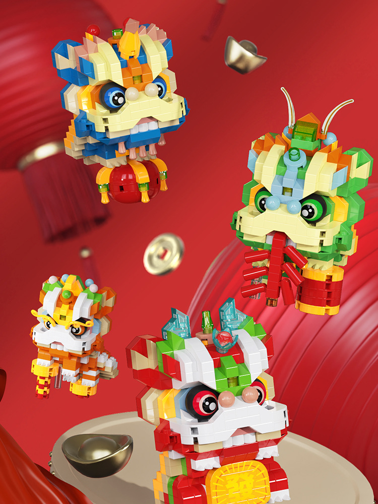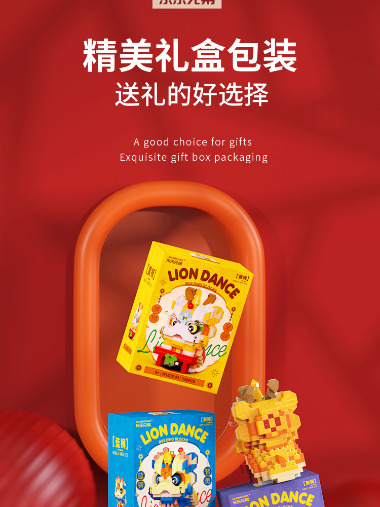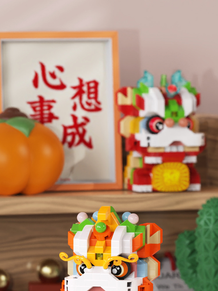【积木儿童益智力玩具】舞狮拼装兼容乐 高微颗粒玩具 男孩新年礼物