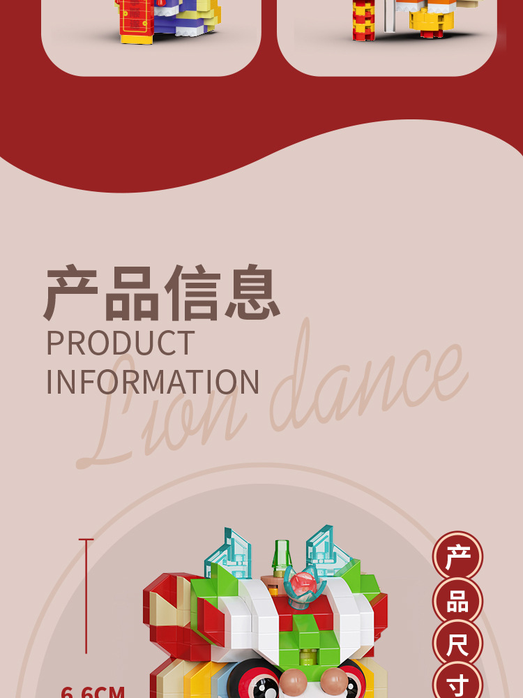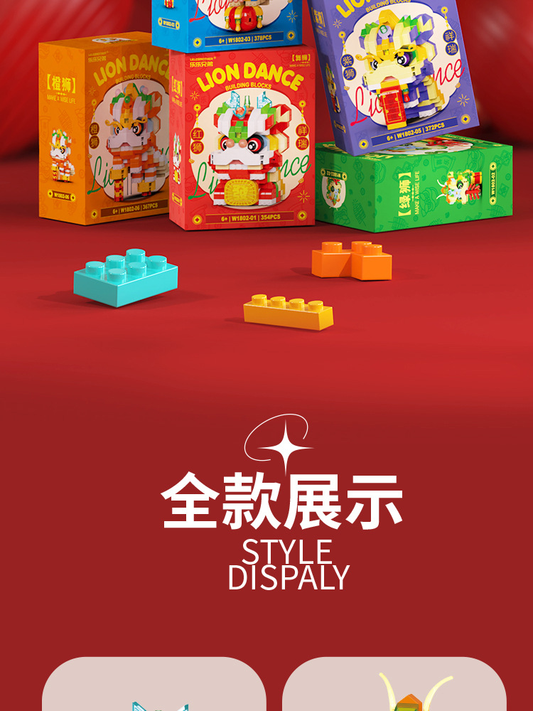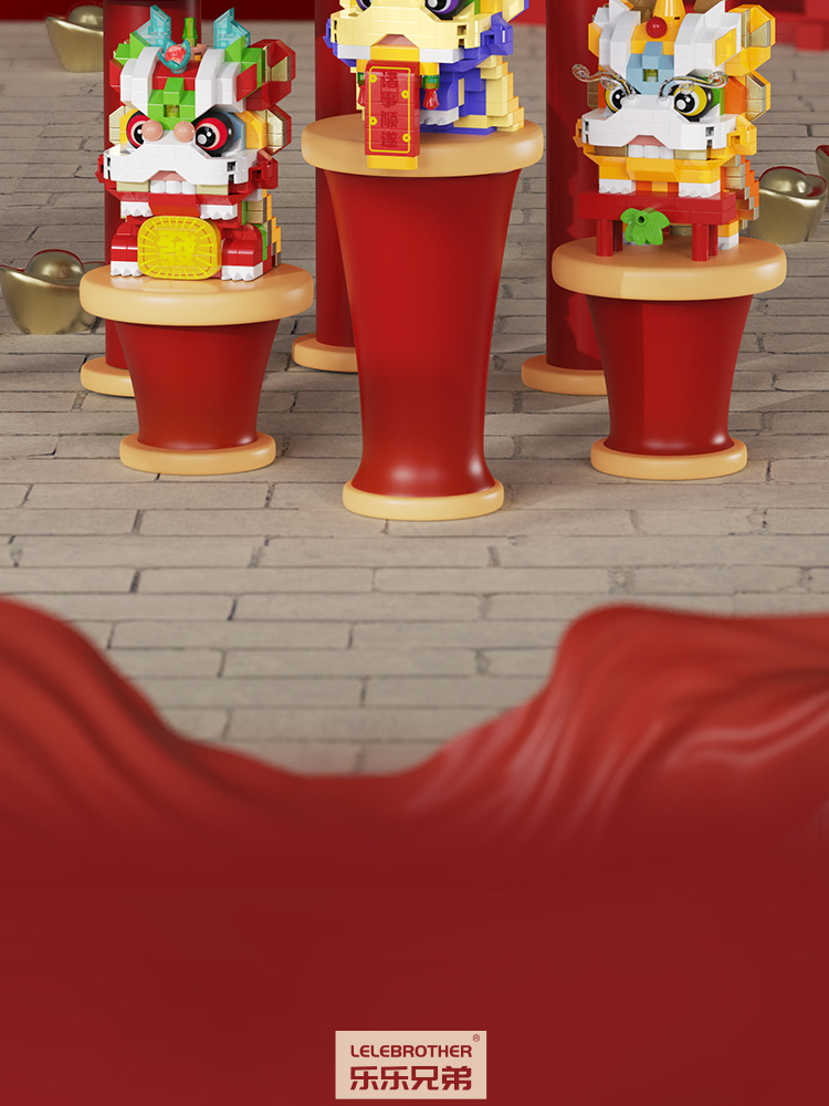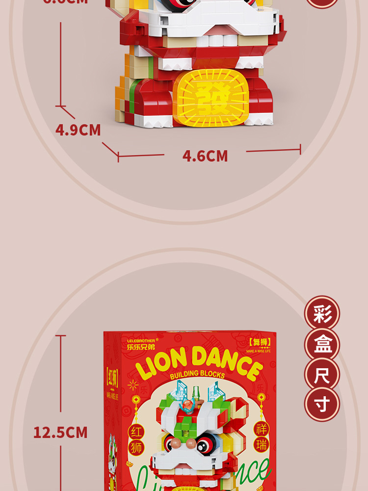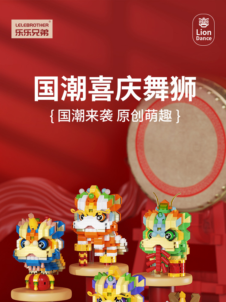 【积木儿童益智力玩具】舞狮拼装兼容乐 高微颗粒玩具 男孩新年礼物