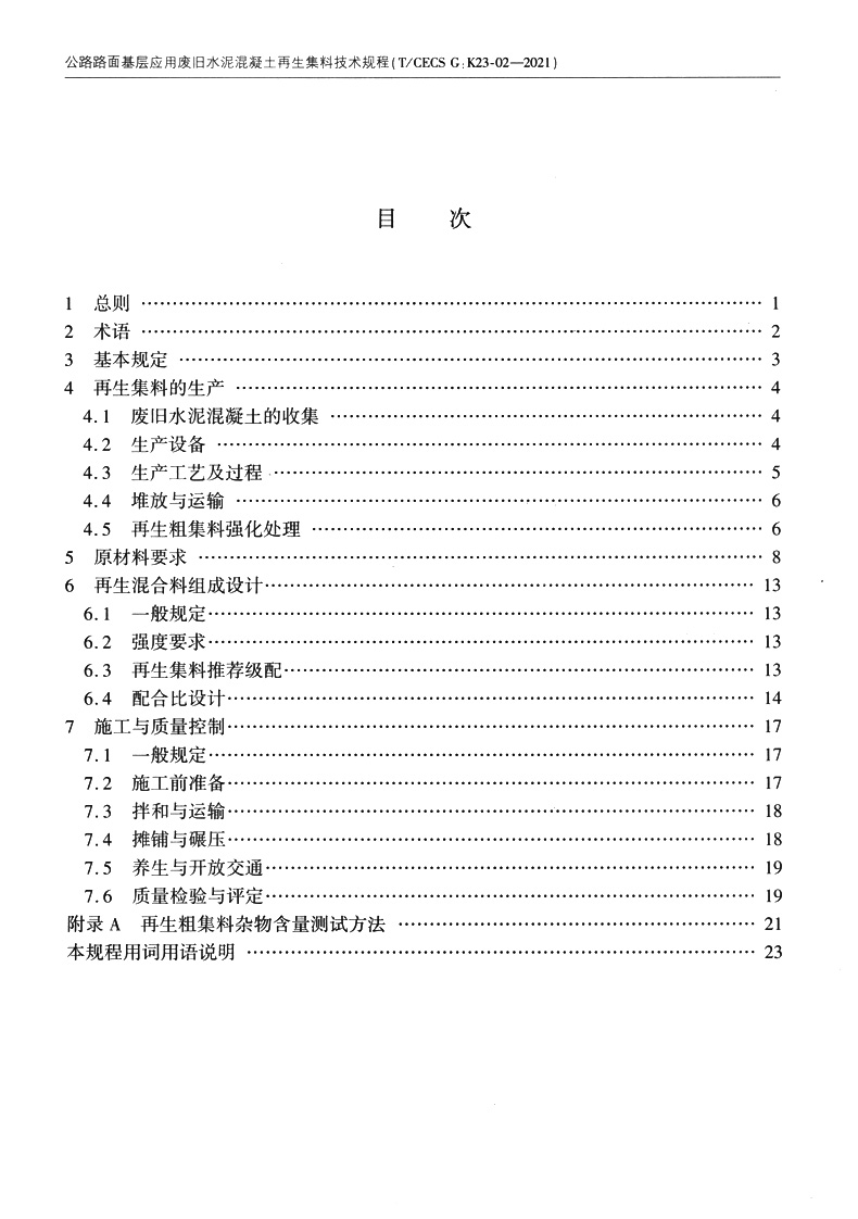 公路路面基层应用废旧水泥混凝土再生集料技术规程(T/CECS G:K23-02—2021)