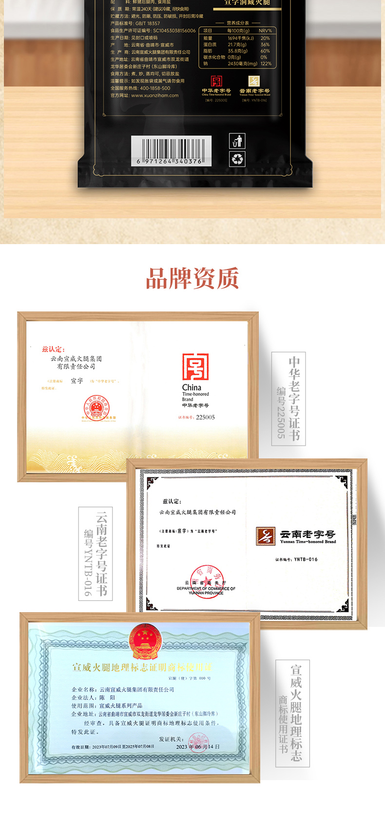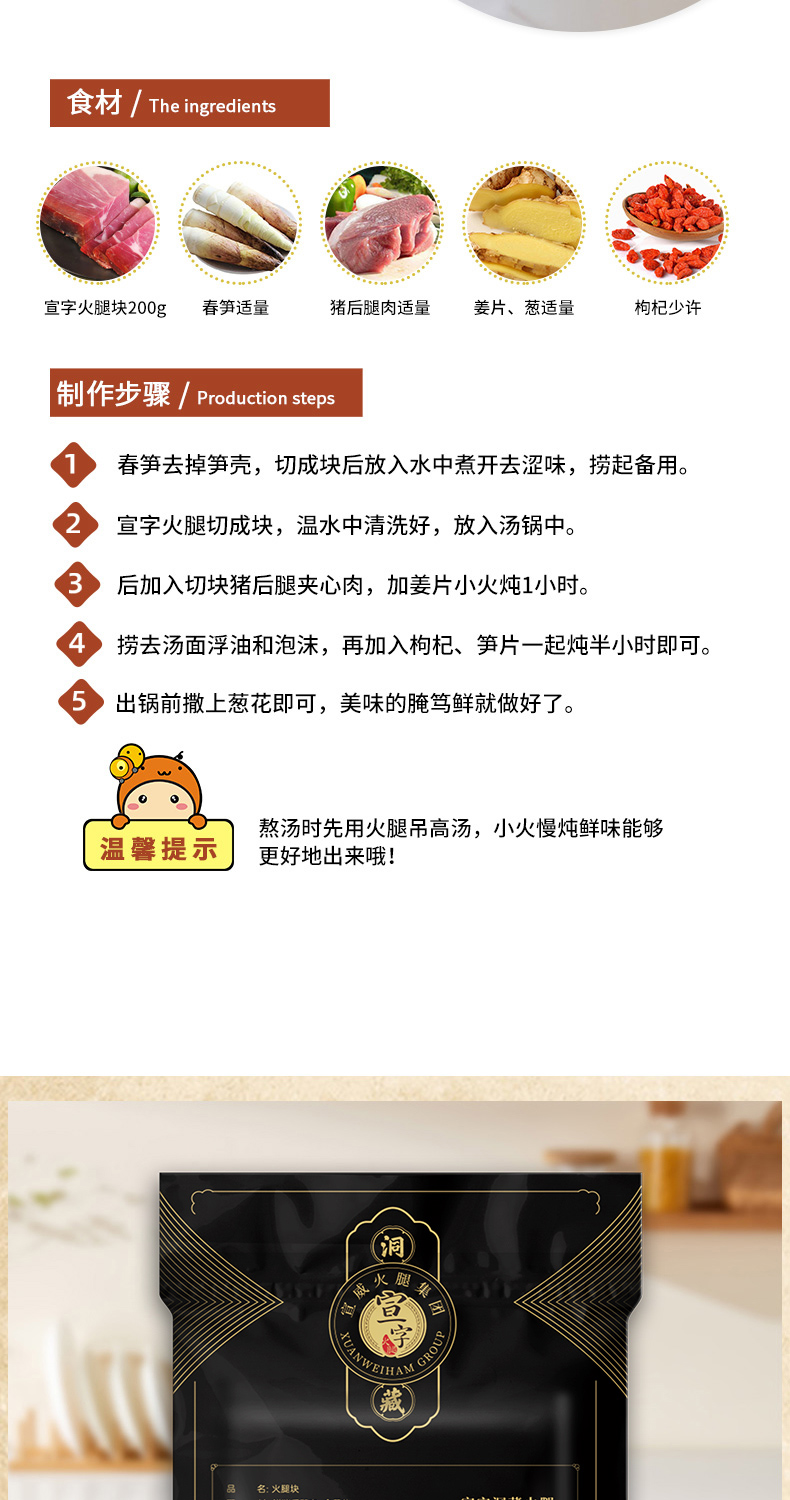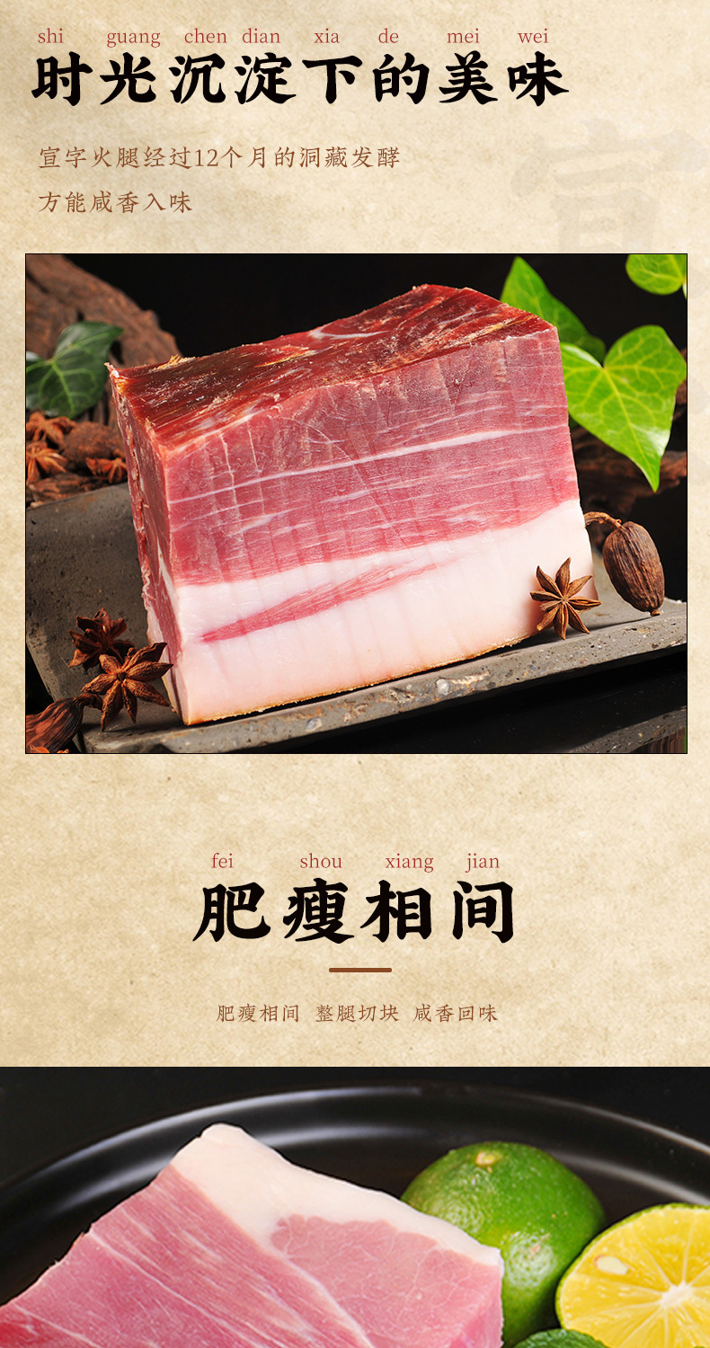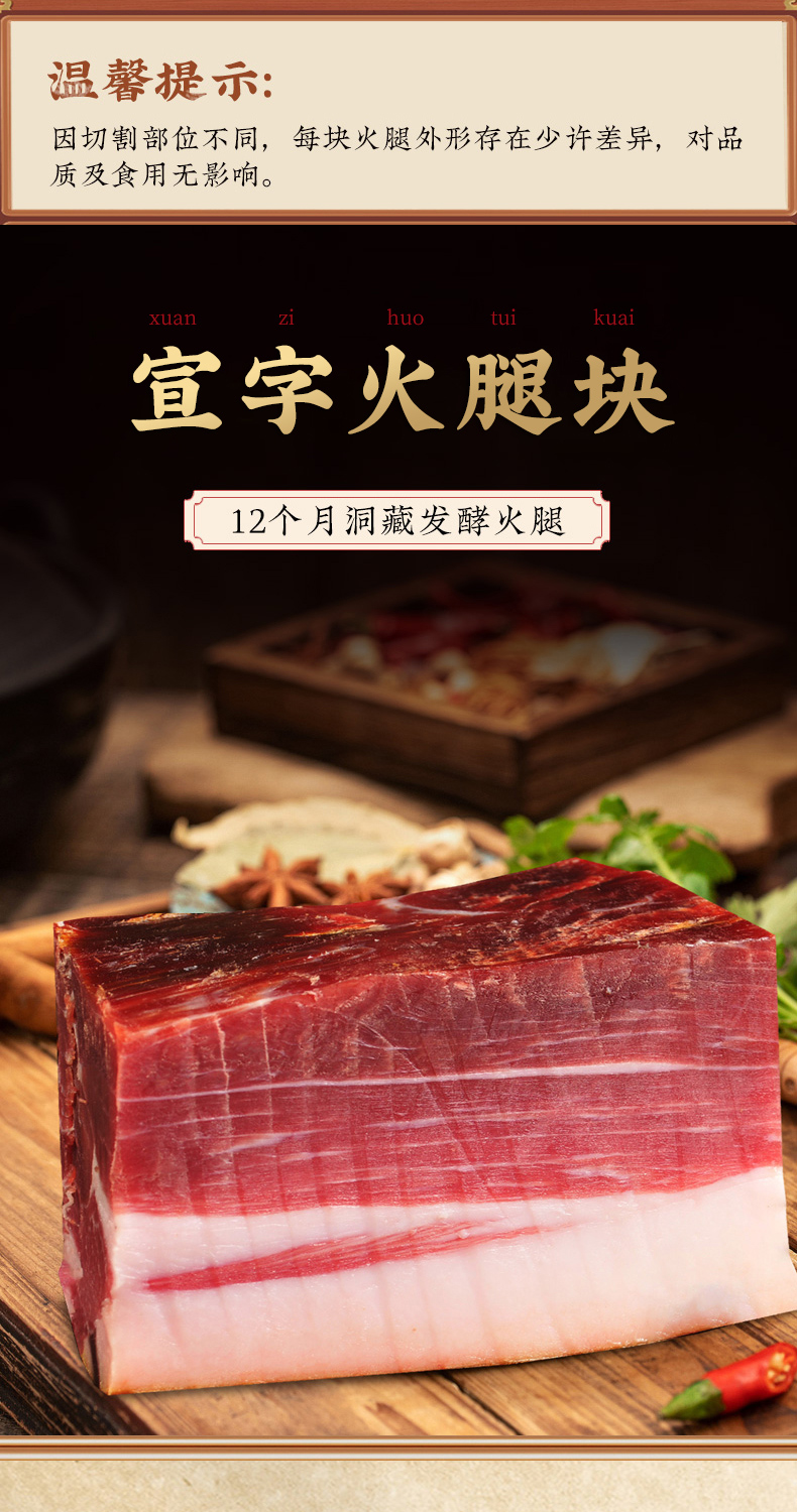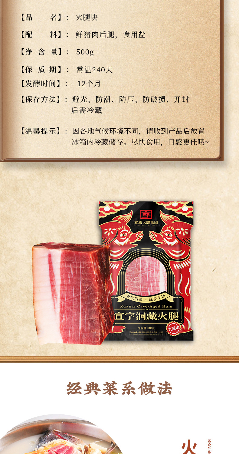 宣威火腿集团 宣字洞藏火腿肥瘦块500g 煲汤蒸煮火腿块正宗宣威火腿肉