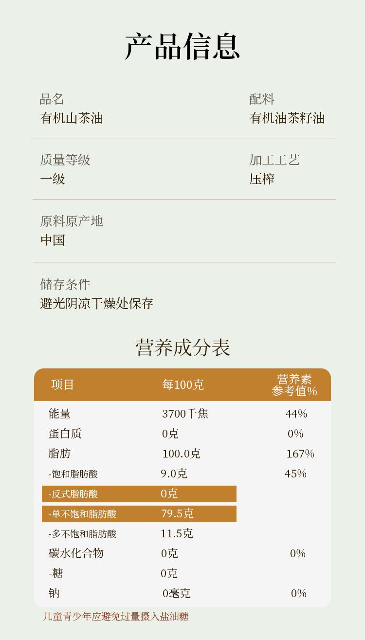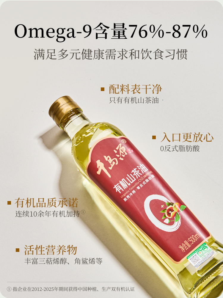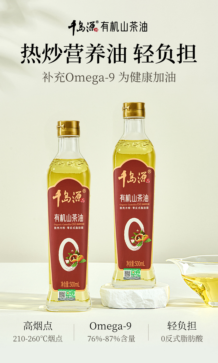 千岛源零反式脂肪酸有机山茶油500mL/2L