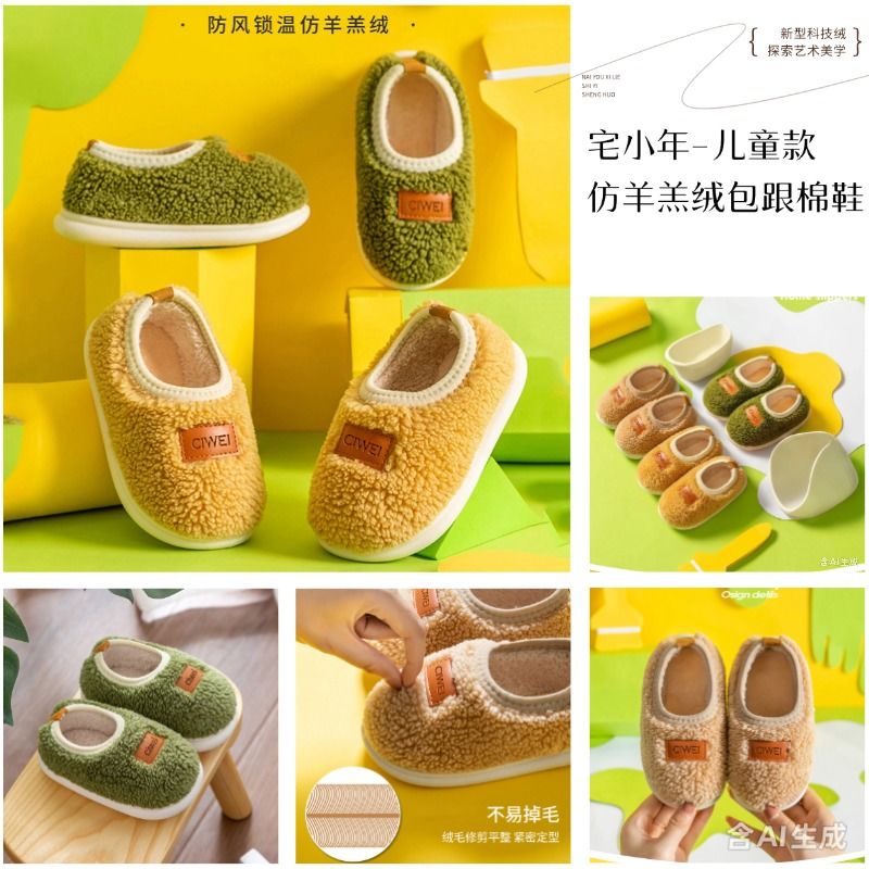 🔥宝宝冬日“暖脚神器”!宅小年儿童仿羊羔绒包跟加厚棉鞋,软fufu锁温~