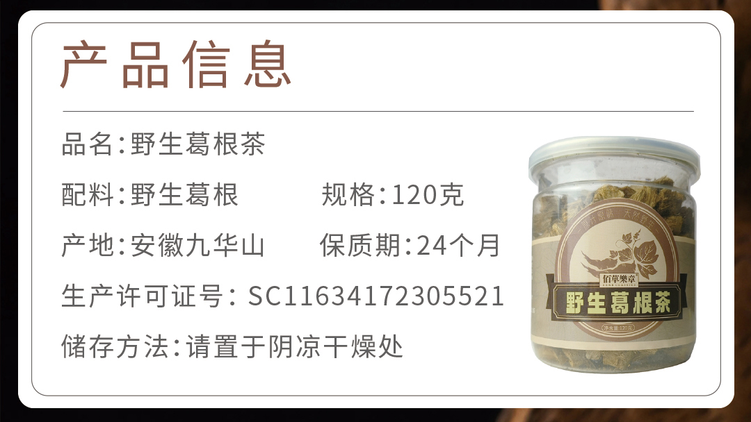 佰草乐章野生葛根茶汤中药材泡水葛根丁纯正无硫熏葛根片酒后养生茶120克
