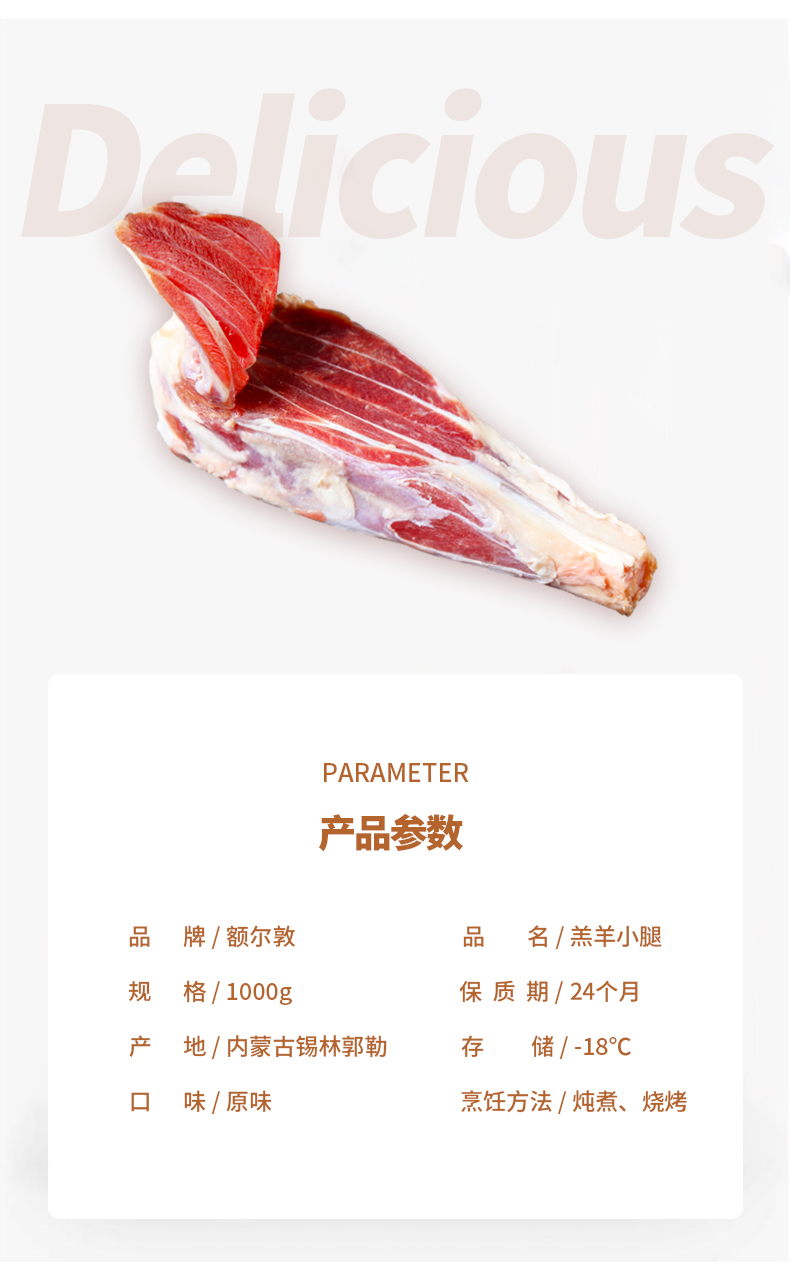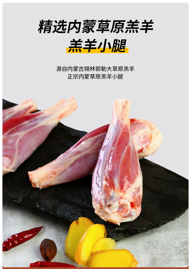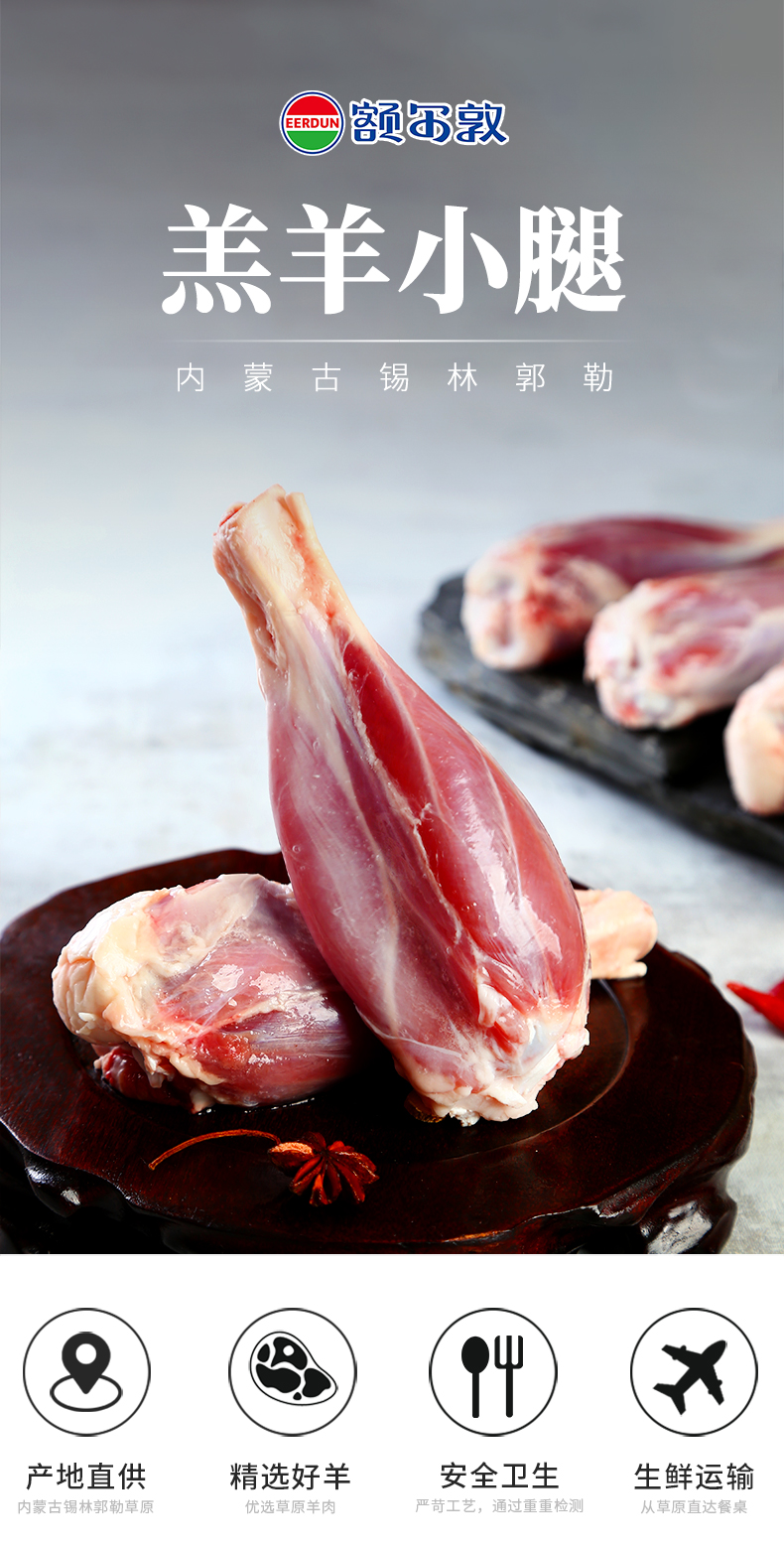 额尔敦 羔羊小腿1000g/袋 5-6根左右 国产生鲜羊肉 烧烤食材 内蒙古锡林郭勒盟羊腿