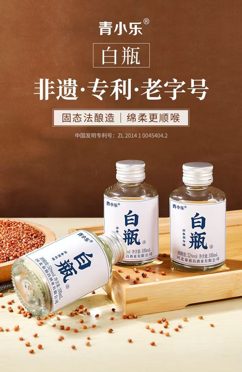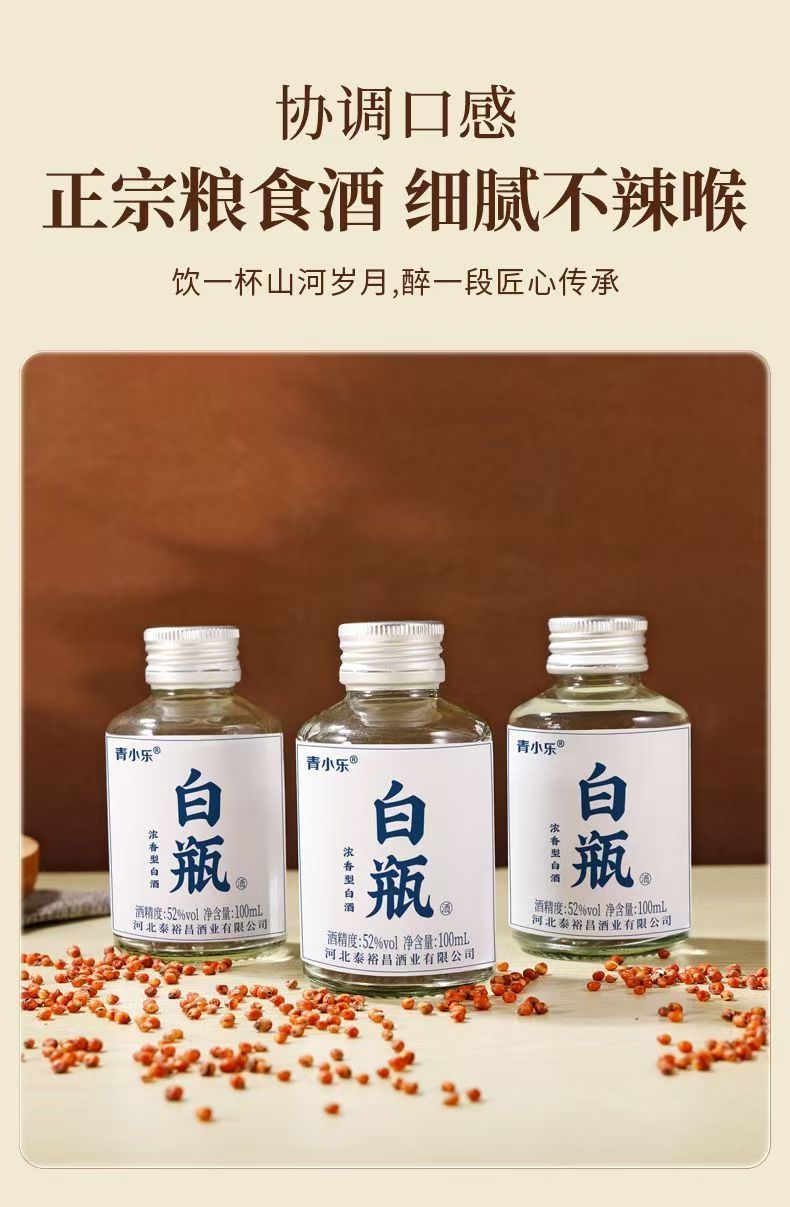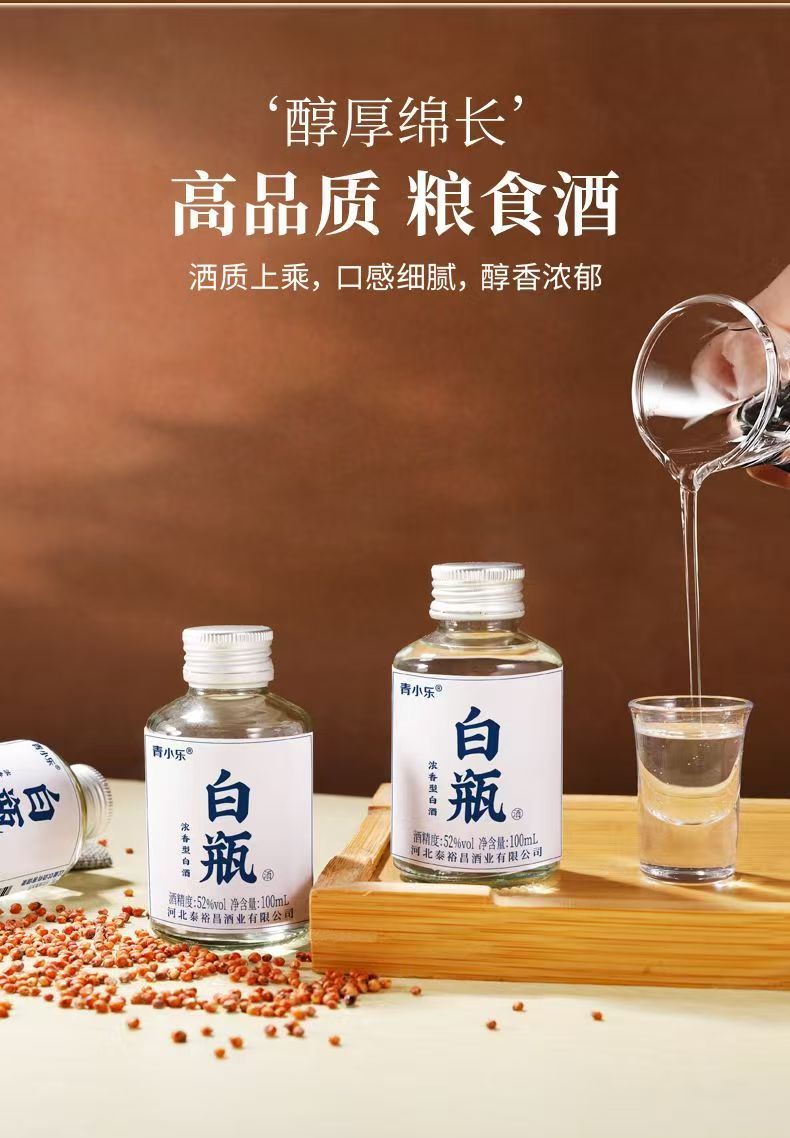 [小白瓶]52度3瓶小酒-青小乐白瓶五粮固态酿造粮食酒浓香型高度白酒