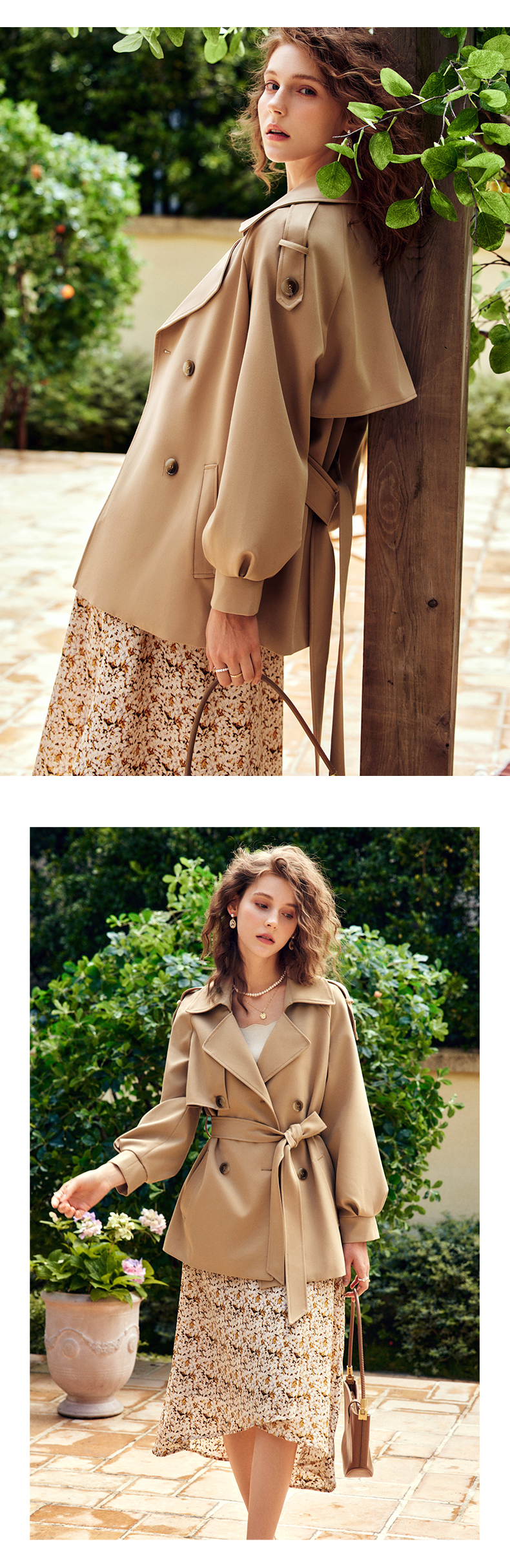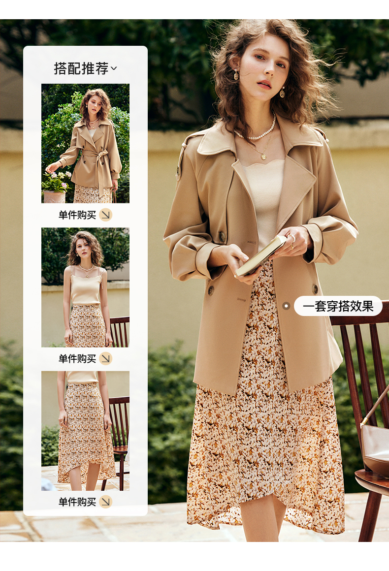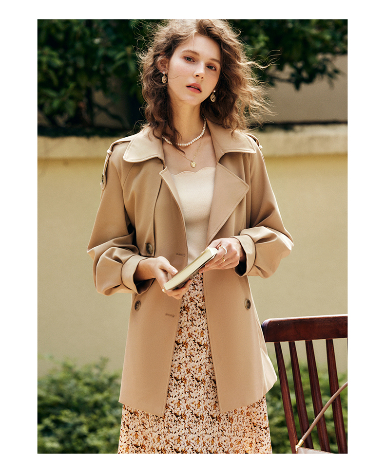 OLrain法式卡其色短款风衣外套女早秋2022新款气质小个子薄款大衣
