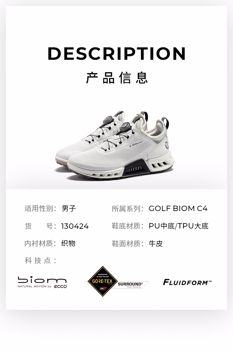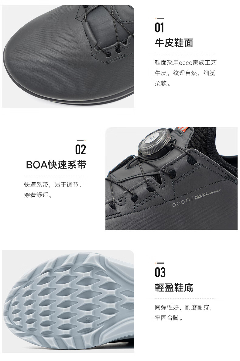 【高尔夫健步C4】ECCO爱步男子高尔夫球鞋130424透气排湿软弹