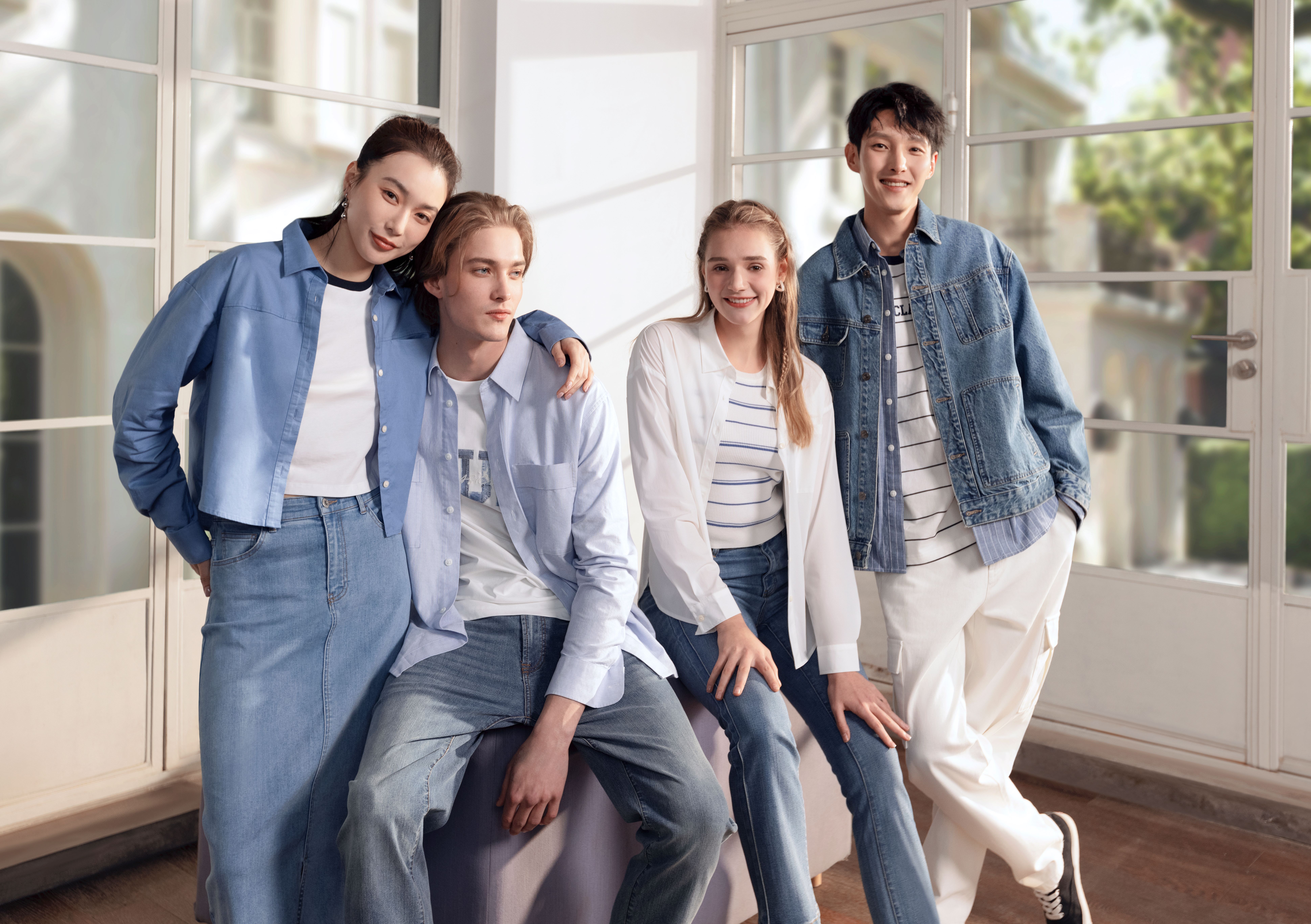 佐丹奴男装25年新款蔚蓝经典水洗工装多口袋翻领牛仔外套01075012