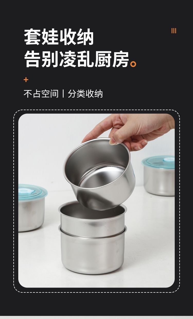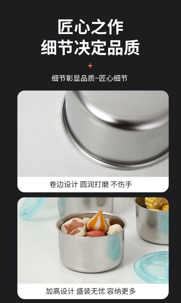 「拍1发4!19.9到手4个」304不锈钢密封盒 便携式保鲜盒 婴儿辅食盒 圆形水果居家日用保鲜密封盒冰箱收纳整理盒