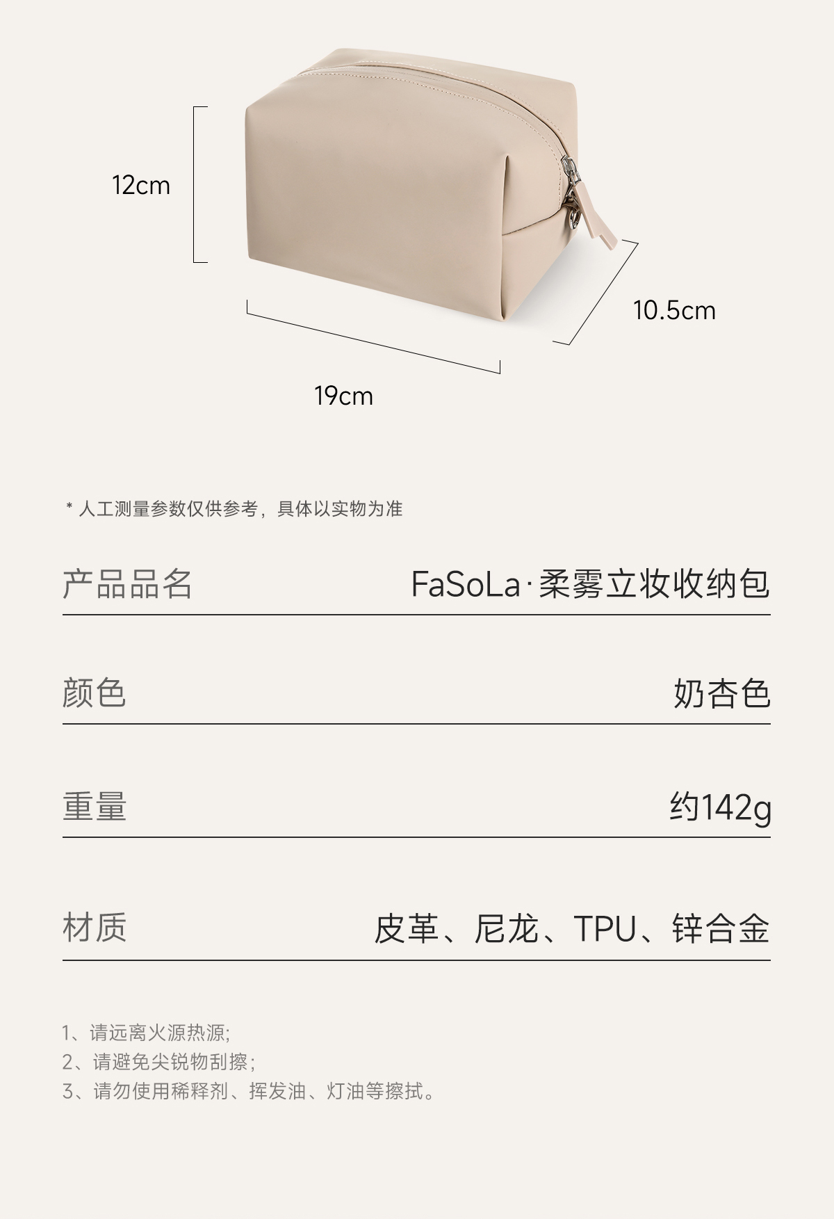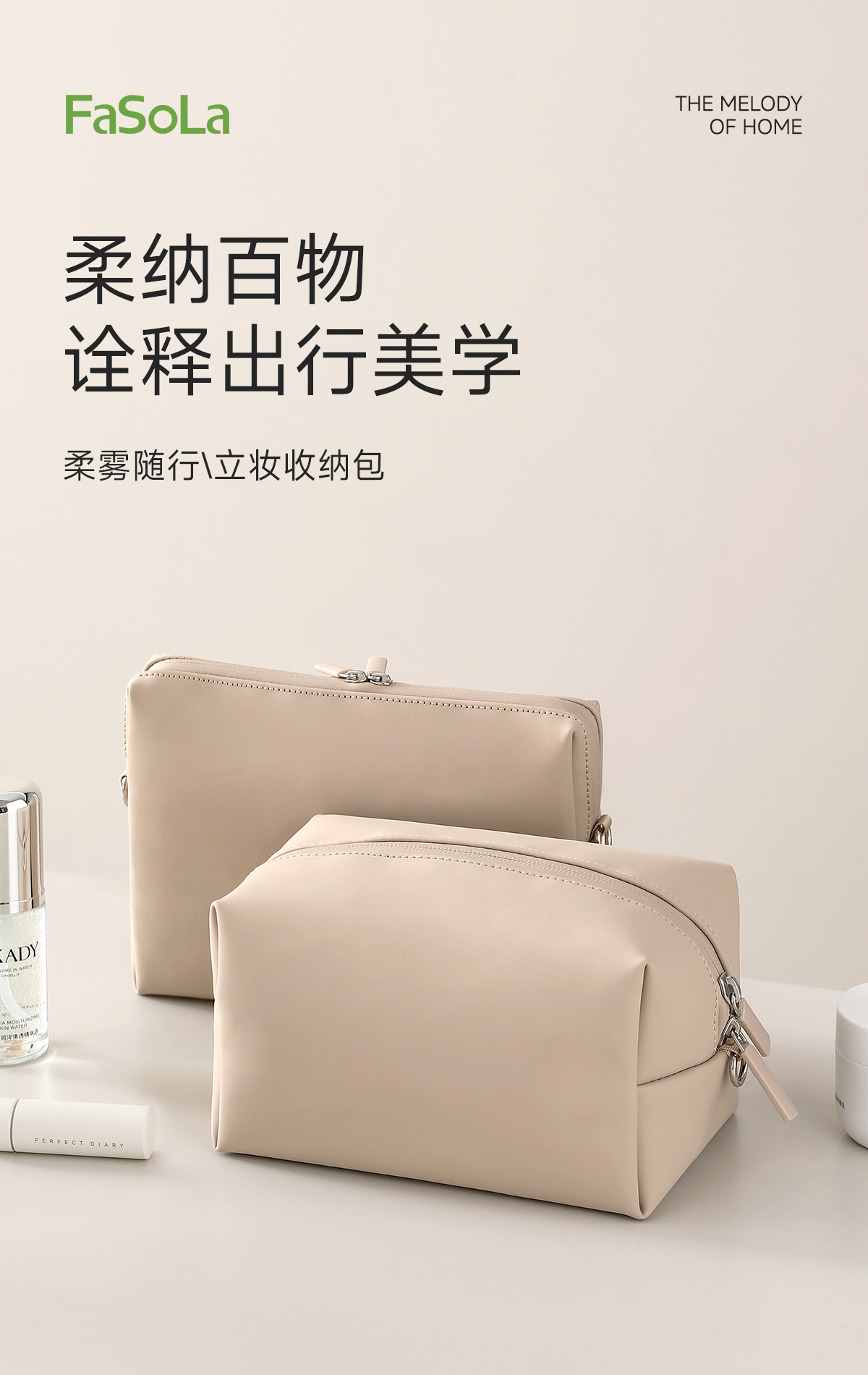 FaSoLa旅行便携立体女化妆护肤品洗漱袋防水柔雾立妆收纳包