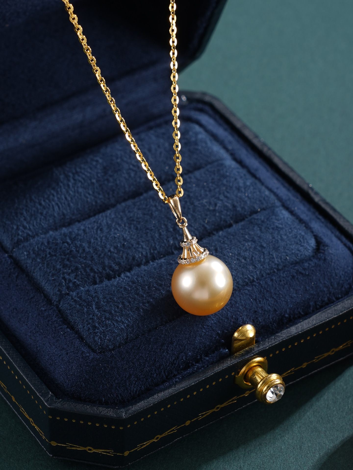 子佩集【暮光女神】G18K珍珠惜王妃吊坠【KP25105-1】10.9mm珠海水珠金色水滴镀金(不含链)2601