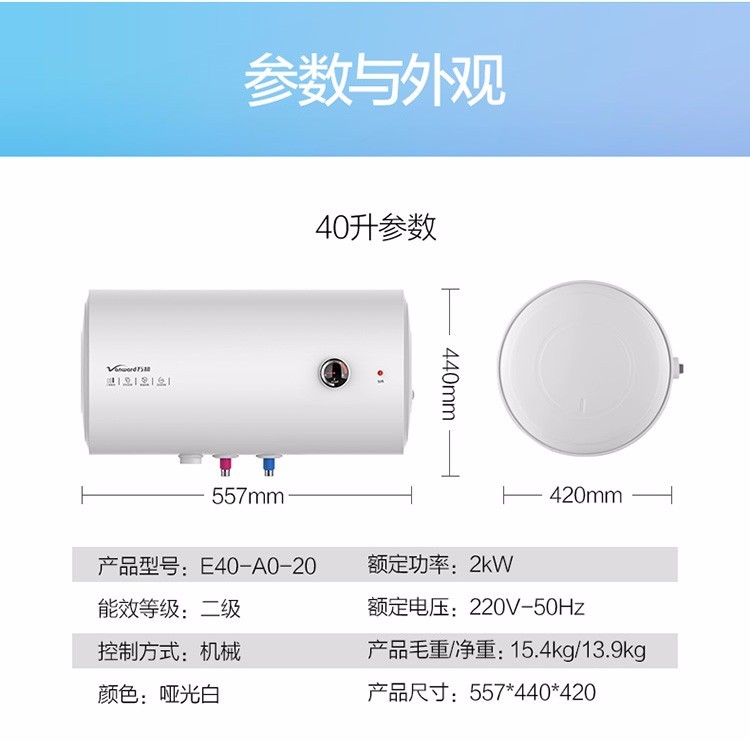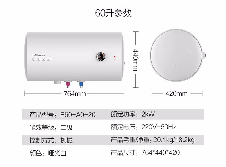 万和(Vanward)电热水器 A0系列 升级双盾防护节能 速热热水器 E60-A0-20(60升)