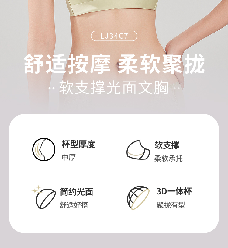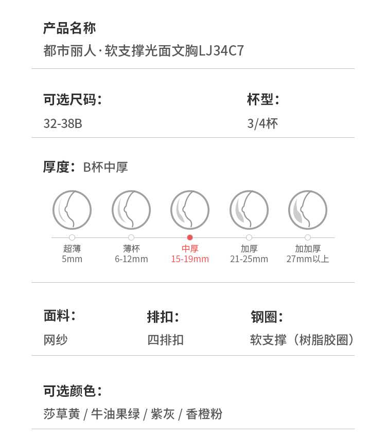 都市丽人舒软挺塑调整型内衣AB:中厚C:薄3/4杯蕾丝塑身文胸四排树脂胶圈LJ34A5