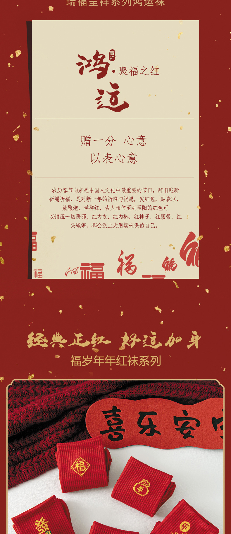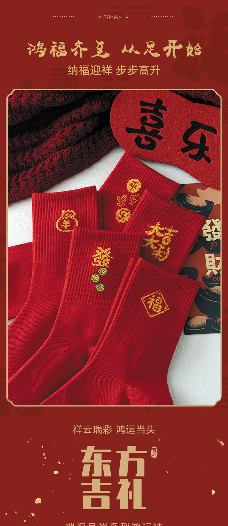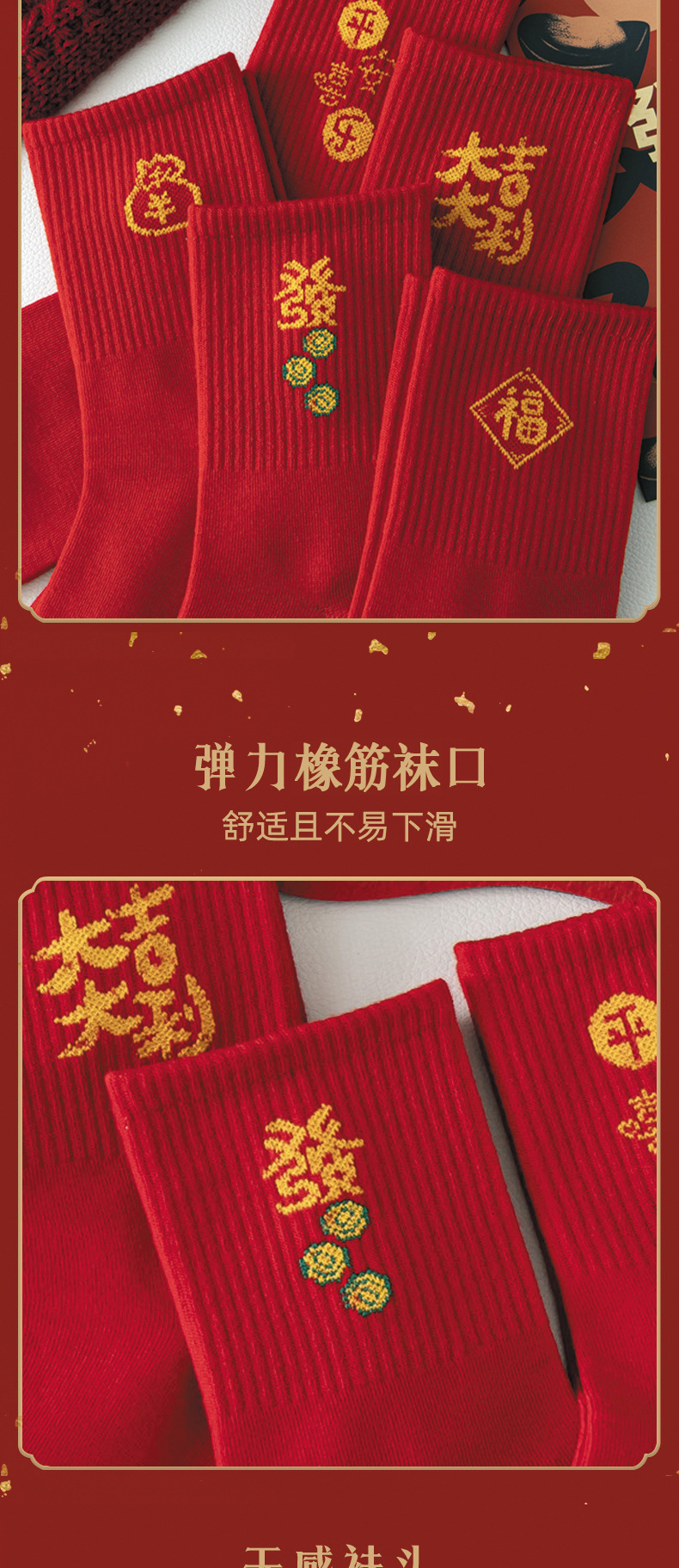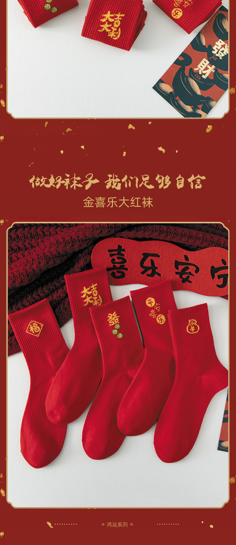 【5双走鸿运过年红袜子】本命年男女中长筒袜 新年大红色发财袜 红年袜