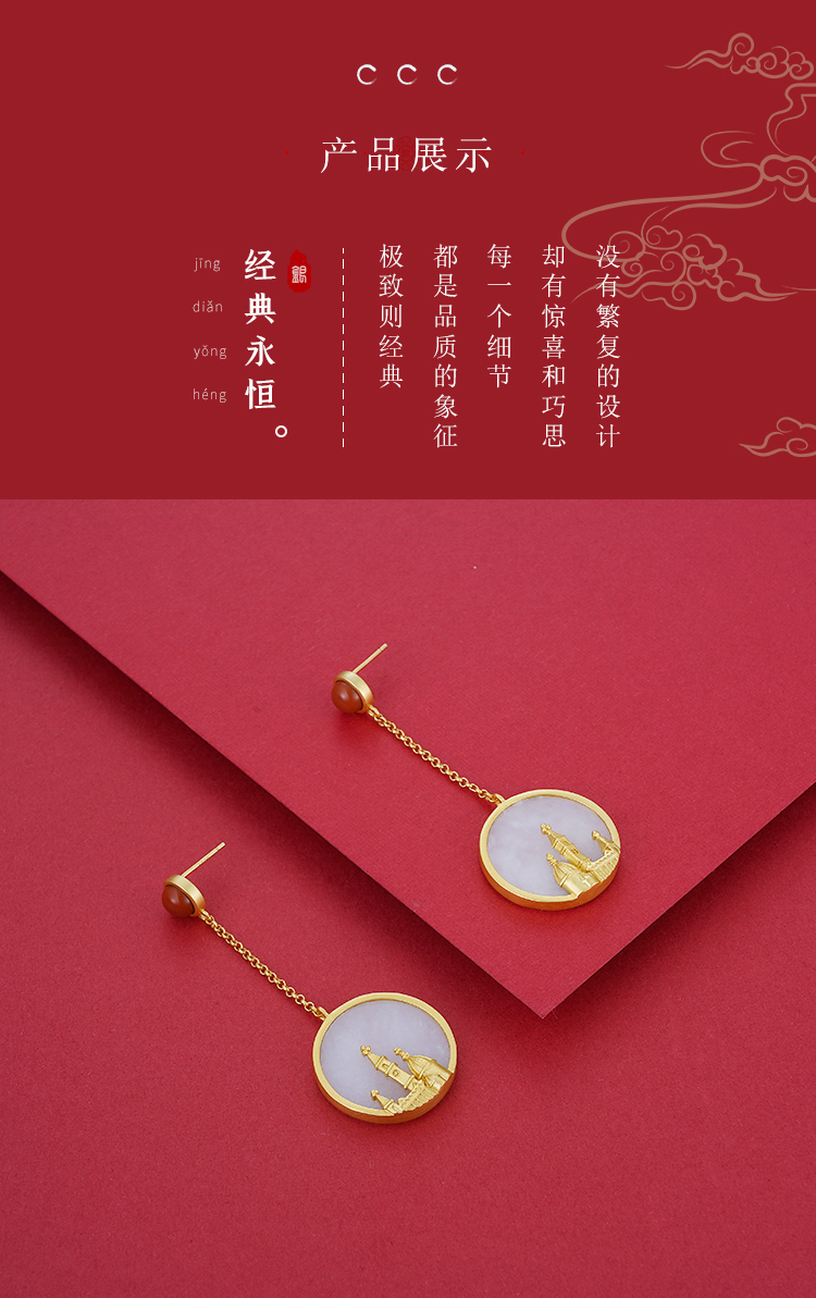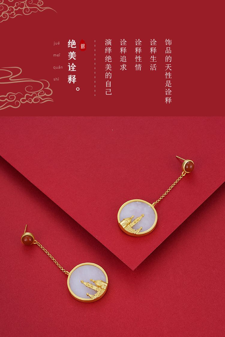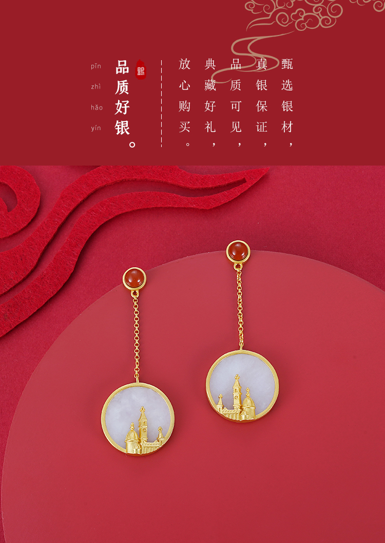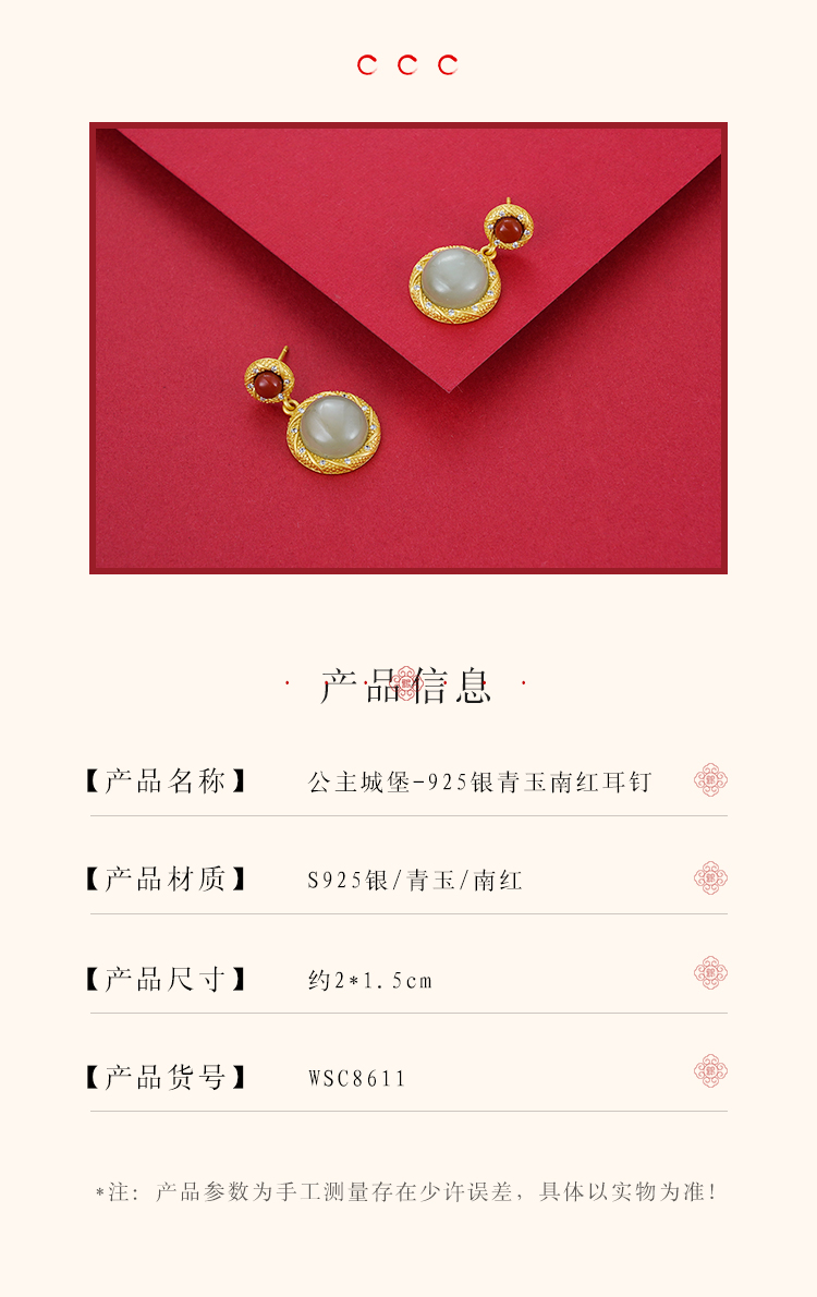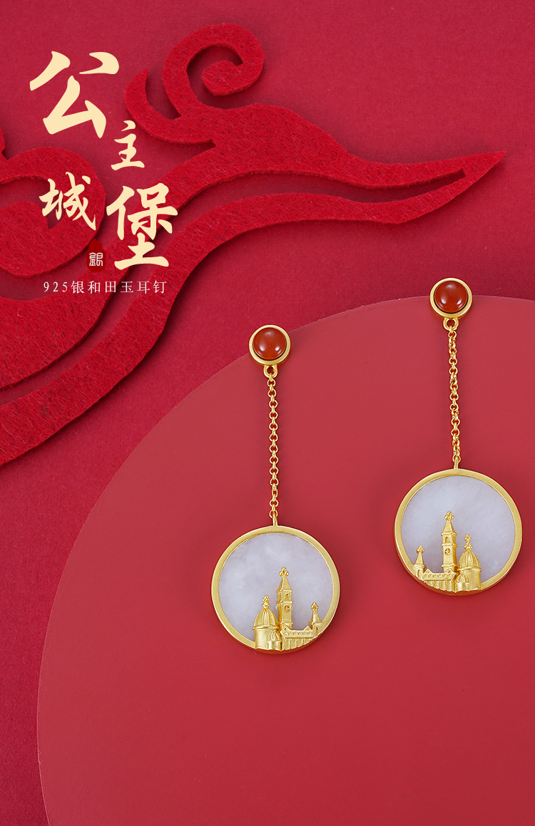 S925银和田玉南红耳钉【WSC8619】公主城堡2101
