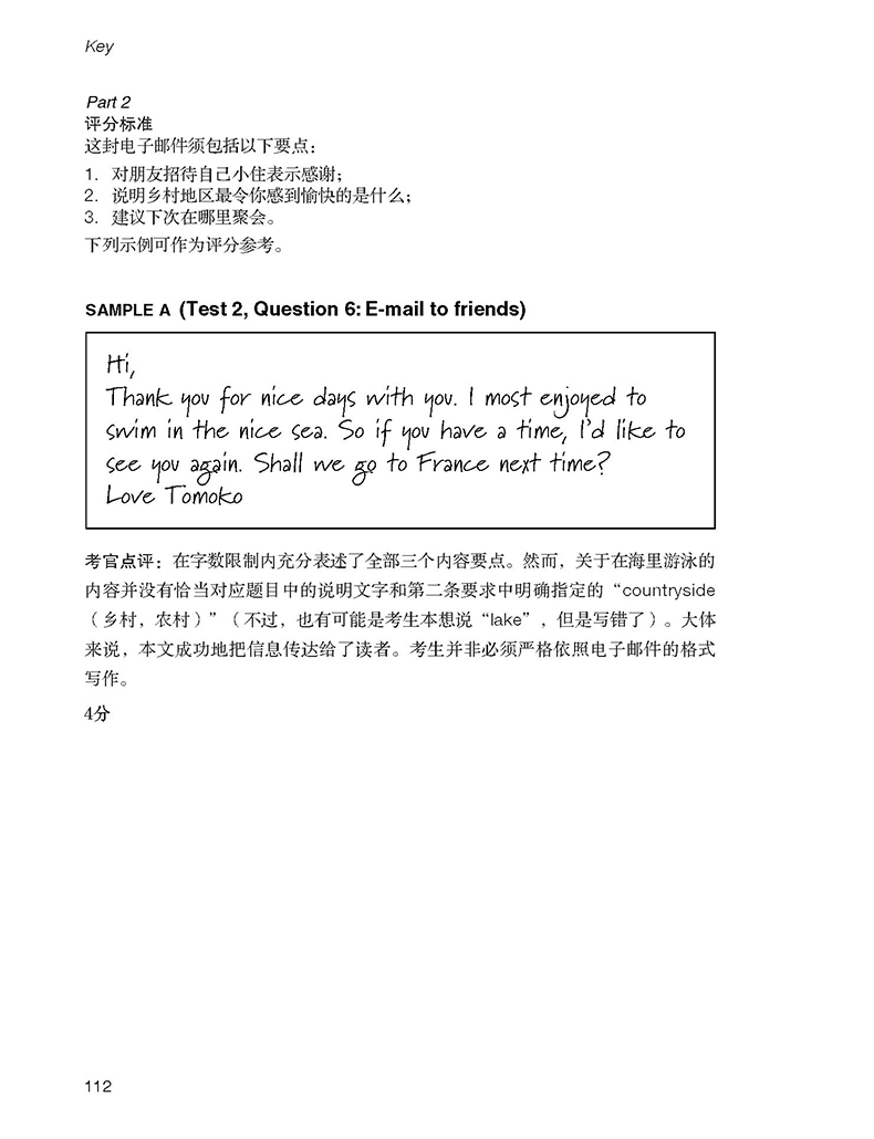 《剑桥通用五级考试PET官方真题2》是经英国剑桥大学英语考评部和英国剑桥大学出版社授权,由外语教学与研究出版社在中国境内独家出版的PET考试官方真题集。全书共收录了4套完整的官方真题,并提供了答题卡、口语考试图片材料和口语考试形式介绍。本书还附有参考答案,不同分数等级的作文案例和考官点评,以及听力录音文本。随书配有MP3音频,含听力部分的完整录音,读者可通过封面和封底注明的方式在线收听或下载使用。官方真题是考生必备的复习资料,内容准确,试题难度、话题、考查重点等与真实考试完全一致,能有效帮助考生熟悉考试,了解评分规则,提高得分能力。